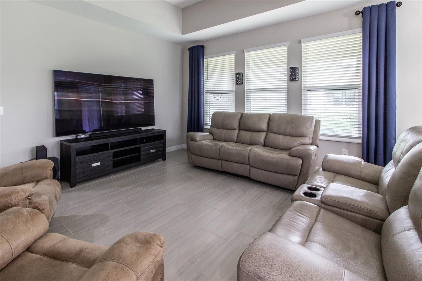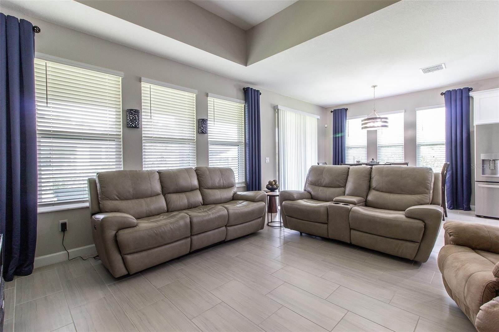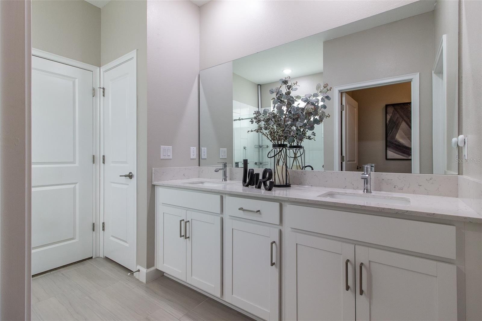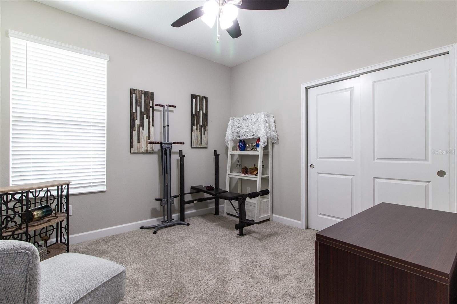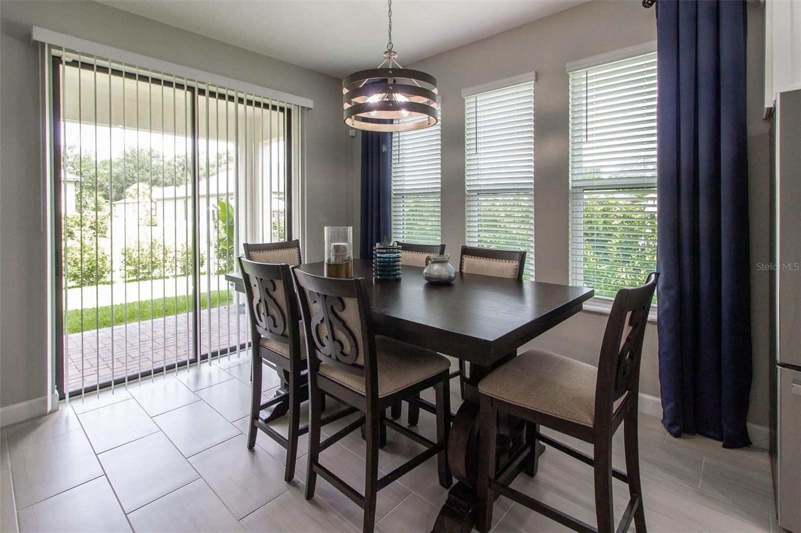 This 4-bedroom, 3-bath home offers a bright and open layout with tall ceilings and a wide foyer with light tile flooring. The private entry features a tall front door that opens to a well-designed floorplan. The living room is open and comfortable with a tray ceiling and upgraded ceiling fans. Outside, a covered paved patio looks out over a beautifully maintained yard with mature trees and landscaping. A fire pit creates a great space for relaxing or entertaining, and a Dyna-Glo stainless gas grill with side griddle and canopy is included. Two bedrooms share a full bath with a double-sink vanity and a separate room for the tub, shower, and toilet. The third bedroom has its own bathroom with a large walk-in shower featuring classic subway tile and a glass door. The primary suite easily fits a king-size bed and additional furniture, and includes a walk-in closet and a private bath with double sinks, a wide walk-in shower with a frosted window, and a private water closet. The kitchen is the centerpiece of the home, with quartz countertops, a large island that seats four, and GE appliances including a 5-burner gas range with stainless hood, wall oven, built-in microwave, and large refrigerator with ice and water dispensers. A deep farmers sink, beverage counter with wine cooler, and hexagon tile backsplash add style and function. The butler’s pantry offers generous cabinetry and counter space, and there’s an enclosed pantry for extra storage.