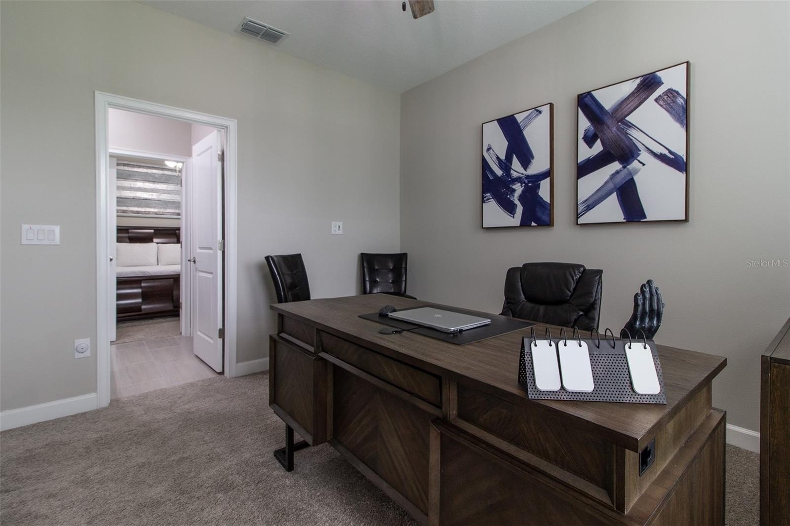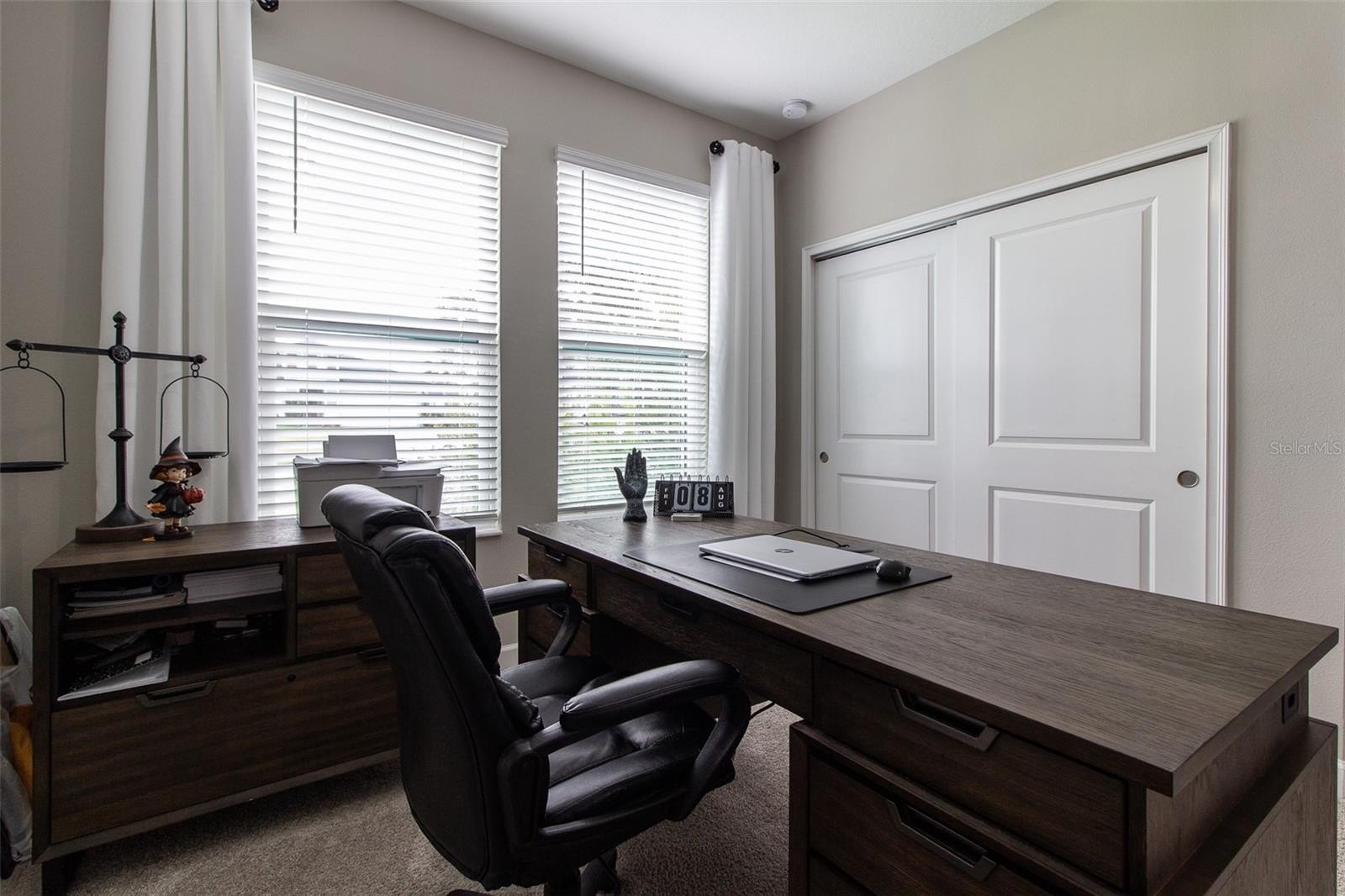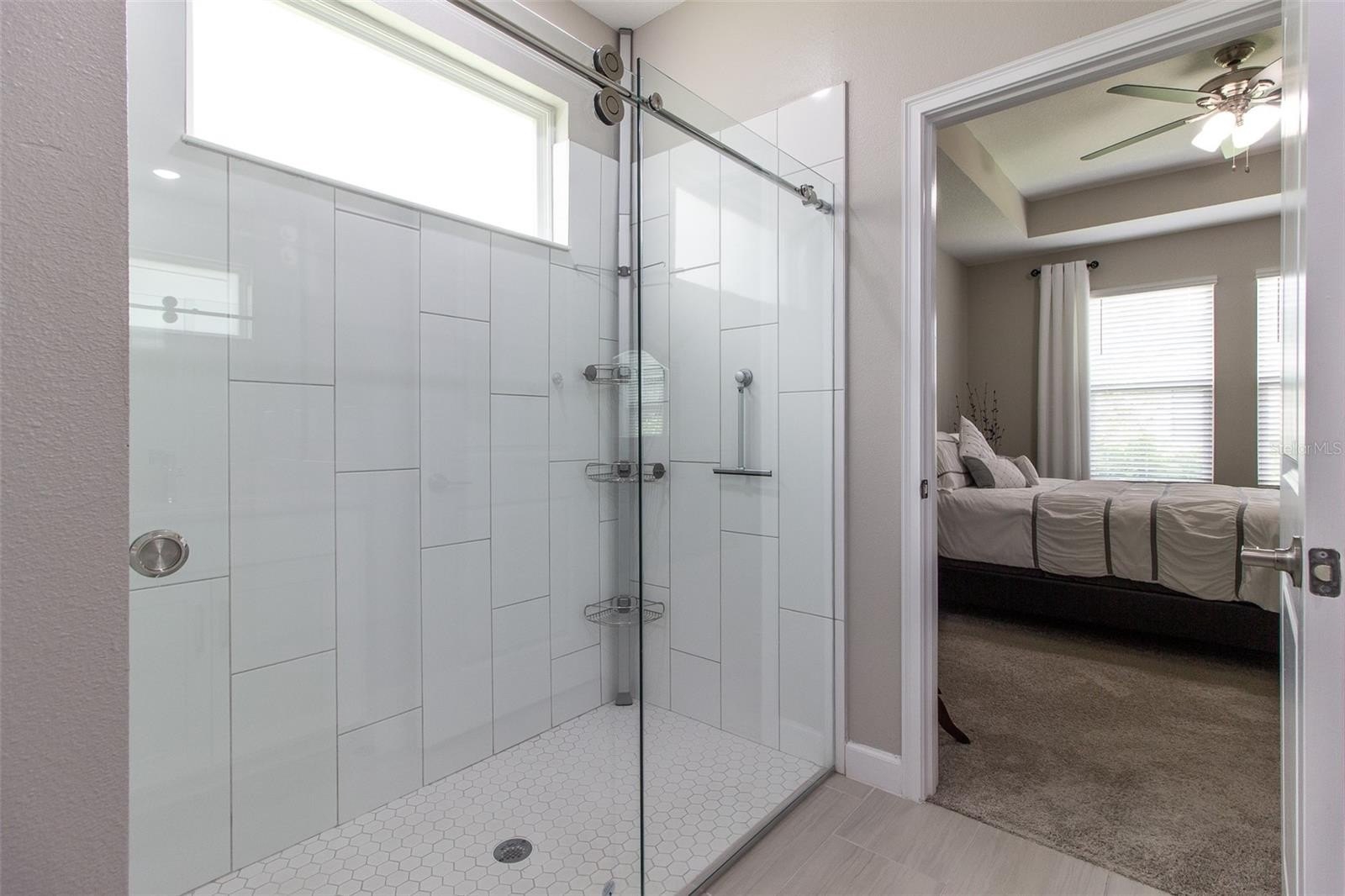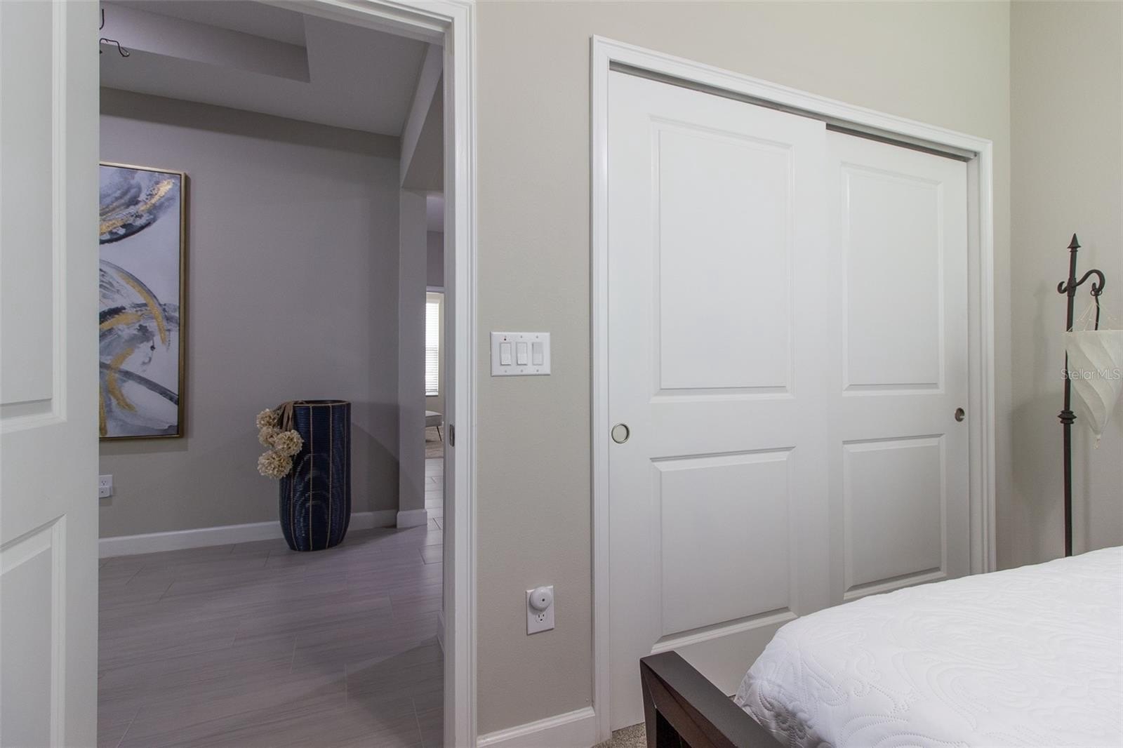 This 4-bedroom, 3-bath home offers a bright and open layout with tall ceilings and a wide foyer with light tile flooring. The private entry features a tall front door that opens to a well-designed floorplan. The living room is open and comfortable with a tray ceiling and upgraded ceiling fans. Outside, a covered paved patio looks out over a beautifully maintained yard with mature trees and landscaping. A fire pit creates a great space for relaxing or entertaining, and a Dyna-Glo stainless gas grill with side griddle and canopy is included. Two bedrooms share a full bath with a double-sink vanity and a separate room for the tub, shower, and toilet. The third bedroom has its own bathroom with a large walk-in shower featuring classic subway tile and a glass door. The primary suite easily fits a king-size bed and additional furniture, and includes a walk-in closet and a private bath with double sinks, a wide walk-in shower with a frosted window, and a private water closet. The kitchen is the centerpiece of the home, with quartz countertops, a large island that seats four, and GE appliances including a 5-burner gas range with stainless hood, wall oven, built-in microwave, and large refrigerator with ice and water dispensers. A deep farmers sink, beverage counter with wine cooler, and hexagon tile backsplash add style and function. The butler’s pantry offers generous cabinetry and counter space, and there’s an enclosed pantry for extra storage.