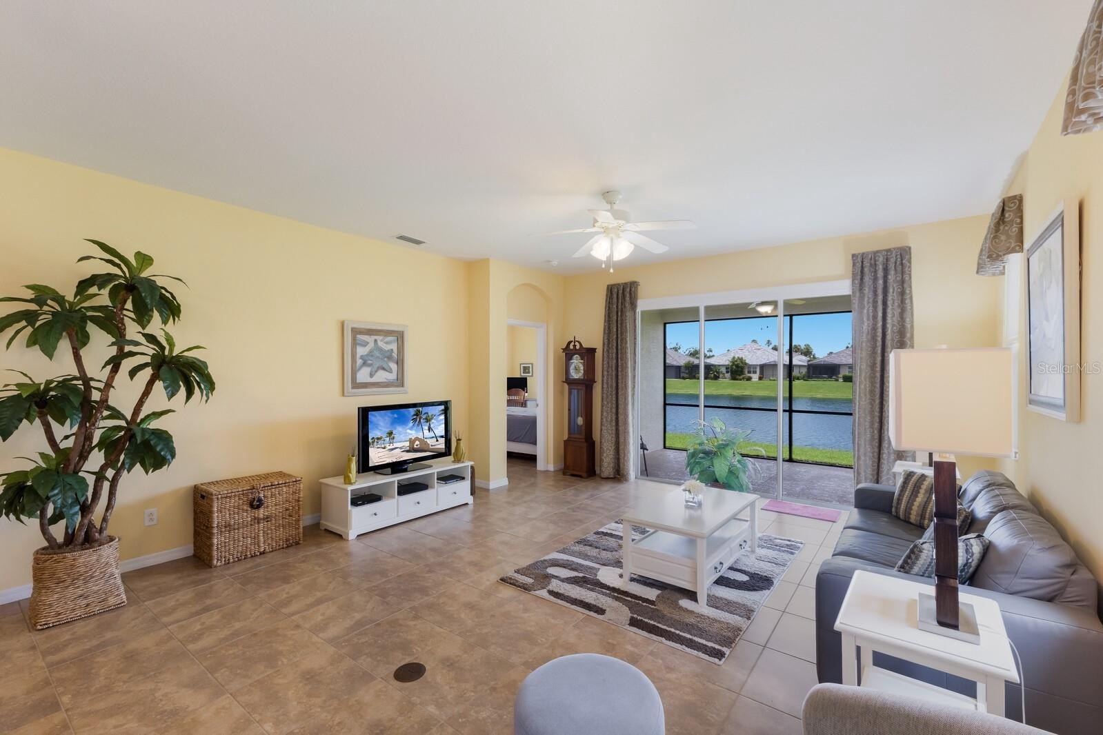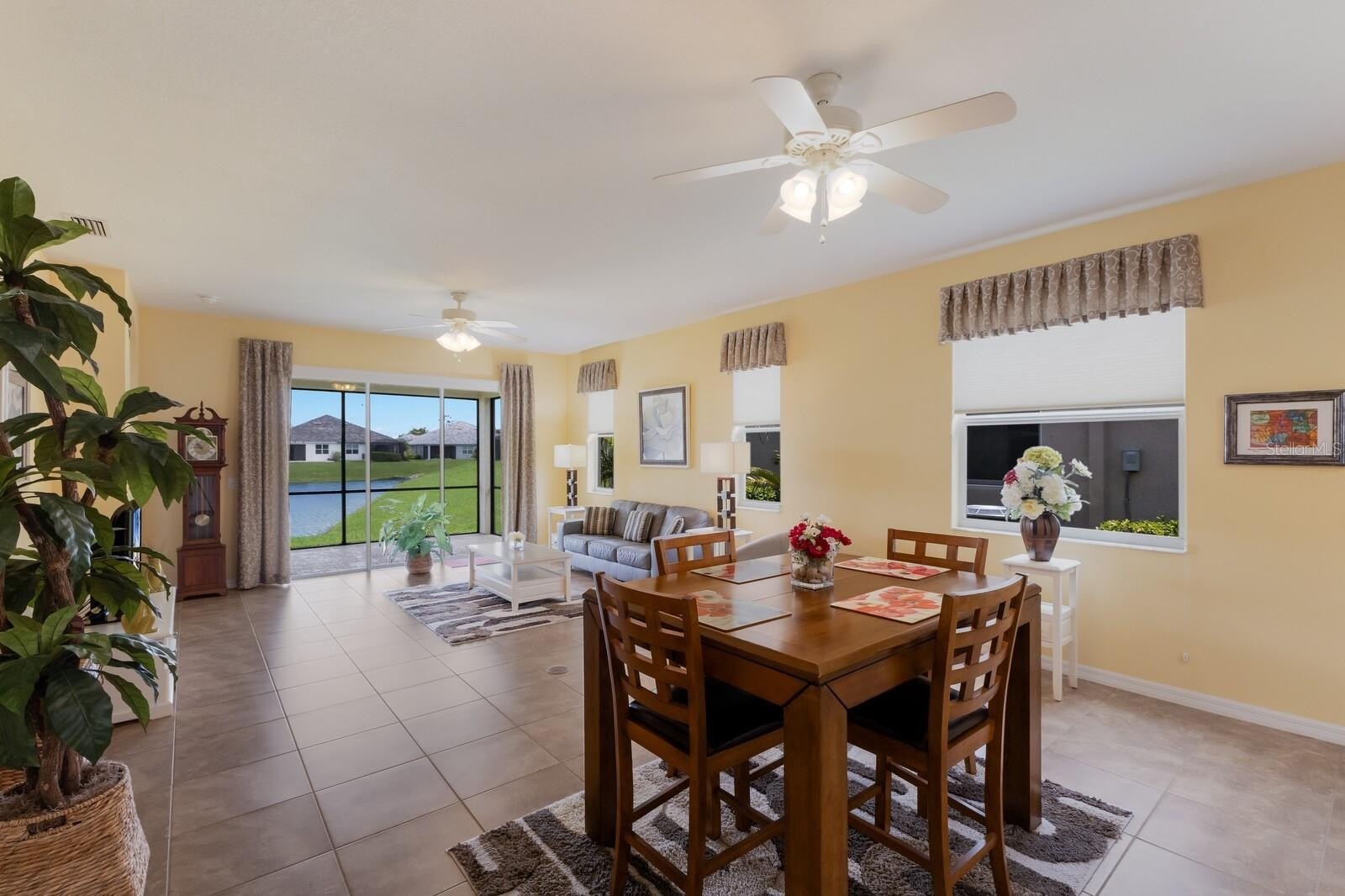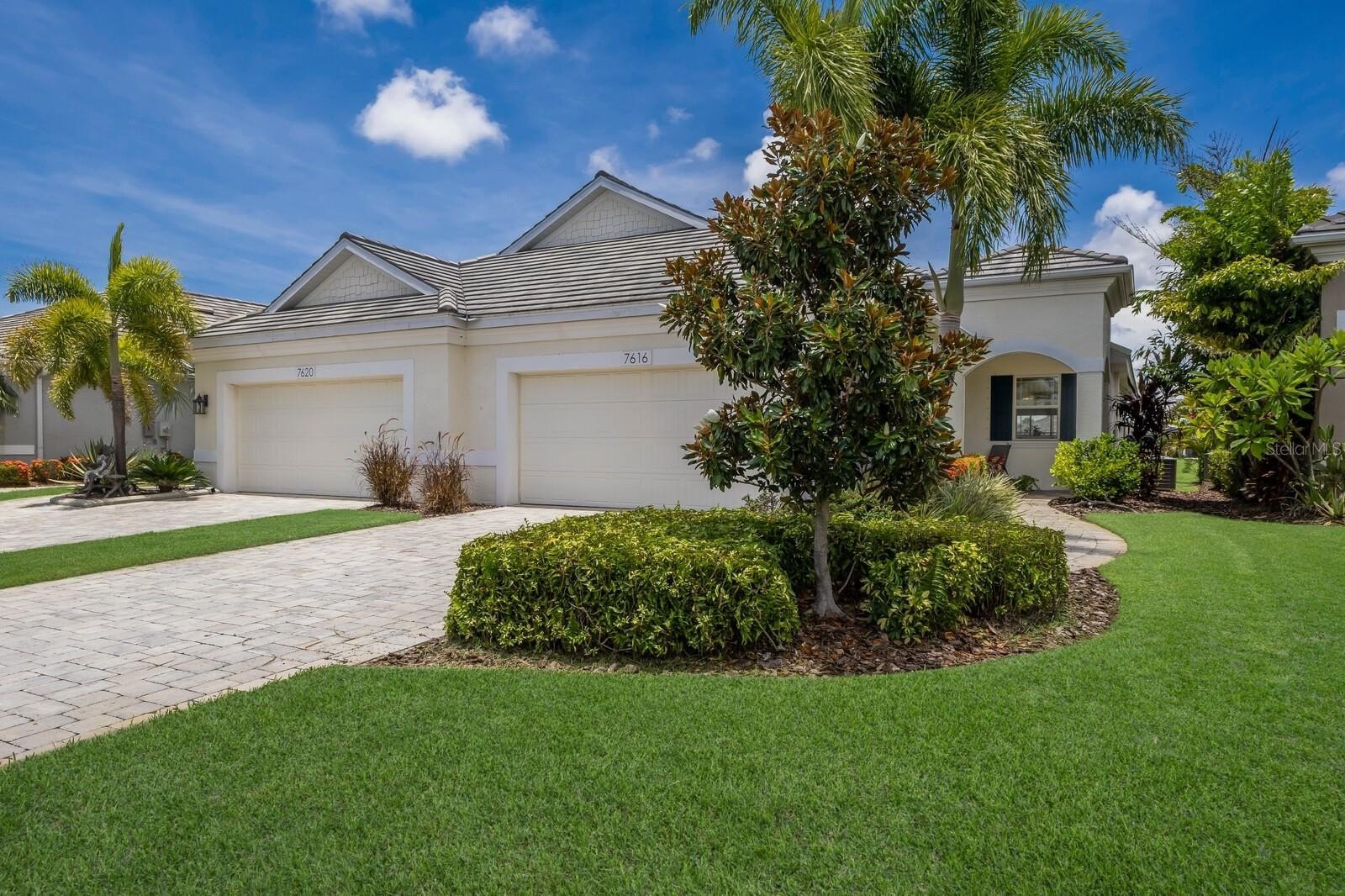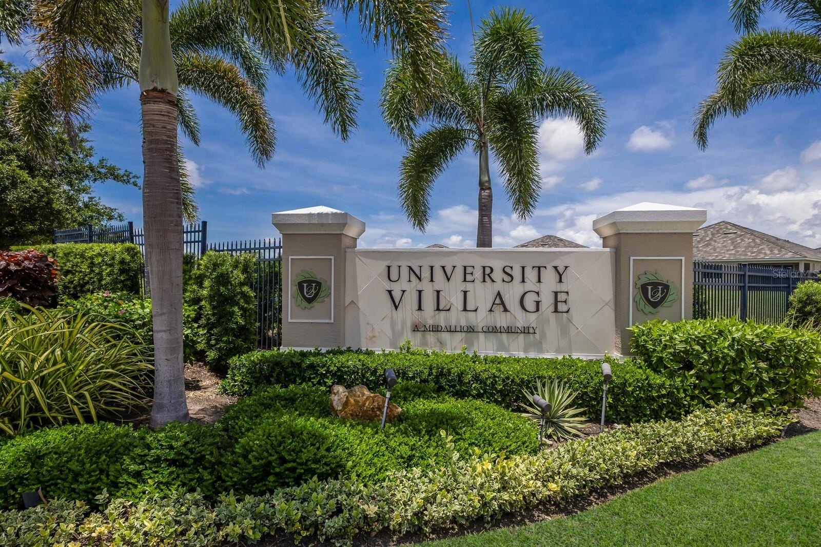 Welcome to University Village, a gated and maintenance-free community conveniently located near the top attractions in Sarasota and Bradenton. Don't miss the opportunity to own this immaculately maintained villa with a stunning lake view. This villa features an open floor plan that is perfect for entertaining guests. The kitchen is equipped with wooden cabinets, granite countertops, and a spacious island, making it ideal for food preparation and additional seating. The split-bedroom layout ensures privacy for everyone, while the owner's retreat includes a large picture window, two walk-in closets, and a private bathroom with dual vanities, a walk-in shower, and a water closet. Experience Florida's enchanting outdoor living in this villa! The welcoming covered entry provides extra seating or a haven for plant lovers. Step through the large sliding glass doors into the serene screened lanai, which offers a lovely lake view and ample space for a grill and comfortable loungers—perfect for relaxation or entertaining. Additional features of this home include hurricane shutters, a separate interior laundry room, a two-car garage, a paver driveway, a tile roof, and custom window treatments. The villa is ideally located within the community, just steps away from the community pool, spa, and dog park. University Village is only minutes from downtown, UTC Mall, the airport, I-75, beautiful beaches, parks, and world-class golf courses. This home is the perfect place to call your own!