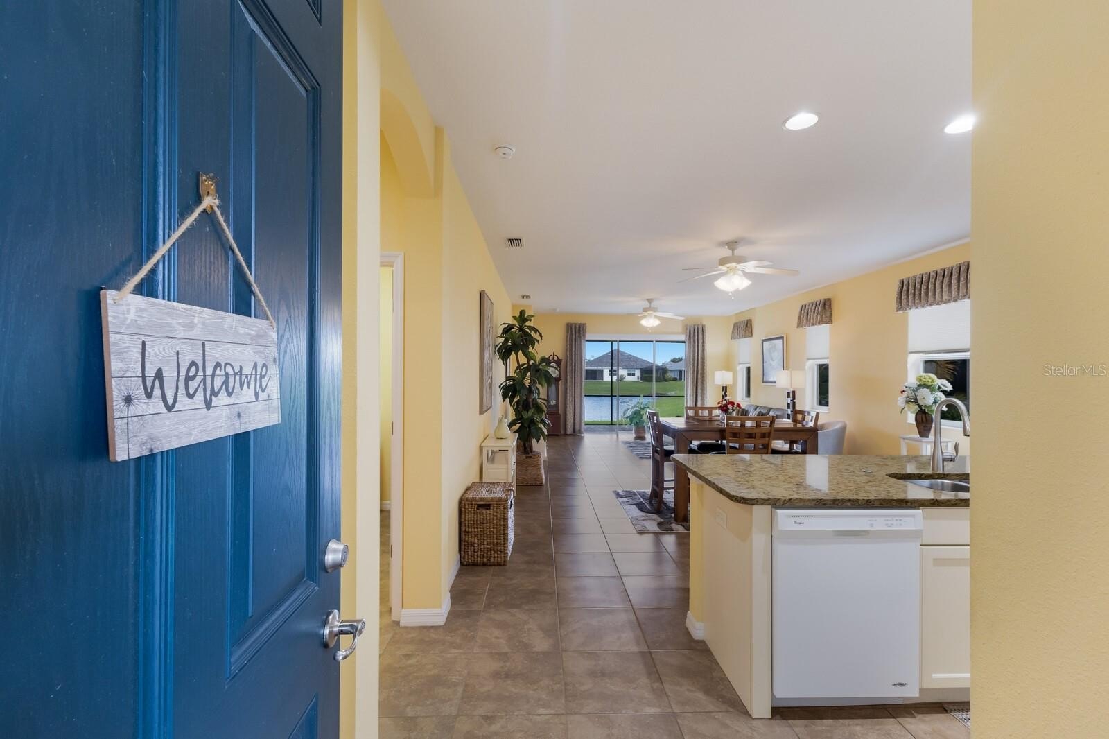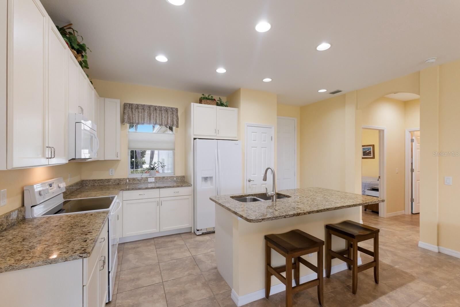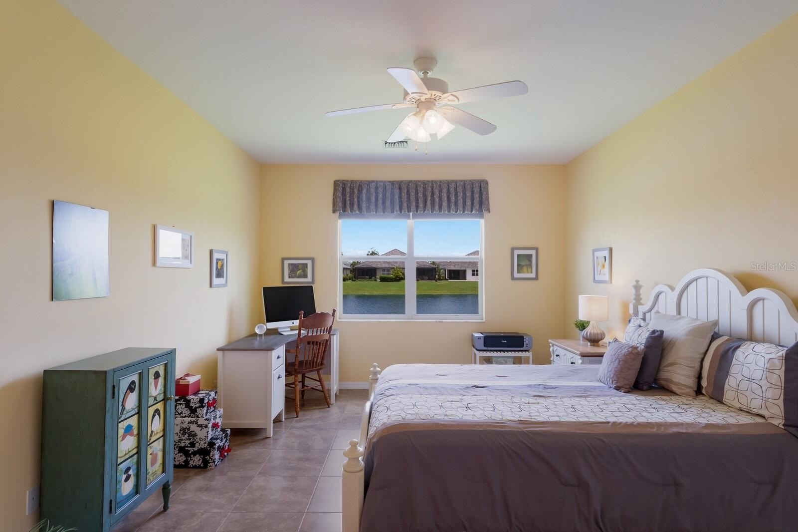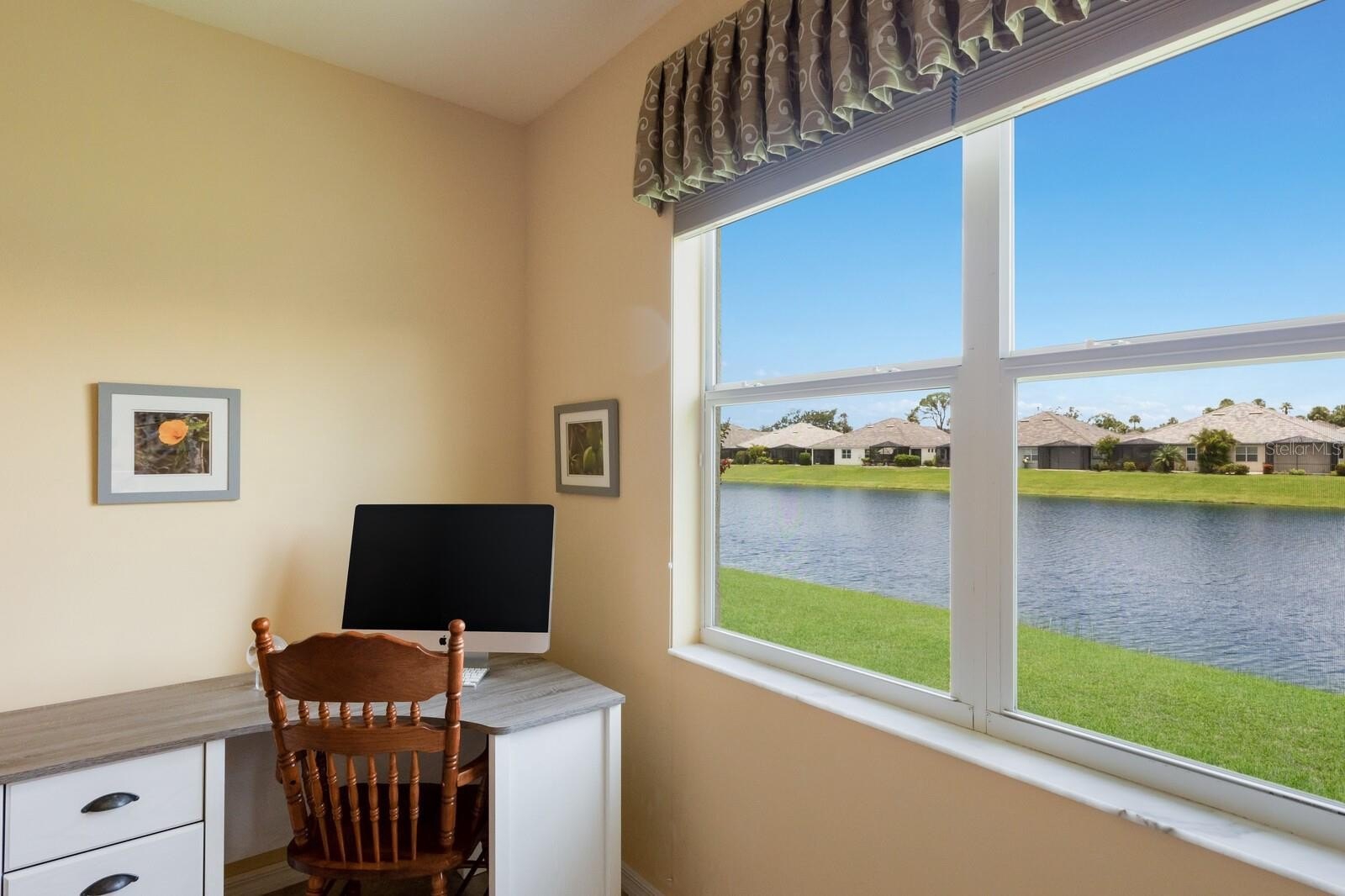 Welcome to University Village, a gated and maintenance-free community conveniently located near the top attractions in Sarasota and Bradenton. Don't miss the opportunity to own this immaculately maintained villa with a stunning lake view. This villa features an open floor plan that is perfect for entertaining guests. The kitchen is equipped with wooden cabinets, granite countertops, and a spacious island, making it ideal for food preparation and additional seating. The split-bedroom layout ensures privacy for everyone, while the owner's retreat includes a large picture window, two walk-in closets, and a private bathroom with dual vanities, a walk-in shower, and a water closet. Experience Florida's enchanting outdoor living in this villa! The welcoming covered entry provides extra seating or a haven for plant lovers. Step through the large sliding glass doors into the serene screened lanai, which offers a lovely lake view and ample space for a grill and comfortable loungers—perfect for relaxation or entertaining. Additional features of this home include hurricane shutters, a separate interior laundry room, a two-car garage, a paver driveway, a tile roof, and custom window treatments. The villa is ideally located within the community, just steps away from the community pool, spa, and dog park. University Village is only minutes from downtown, UTC Mall, the airport, I-75, beautiful beaches, parks, and world-class golf courses. This home is the perfect place to call your own!