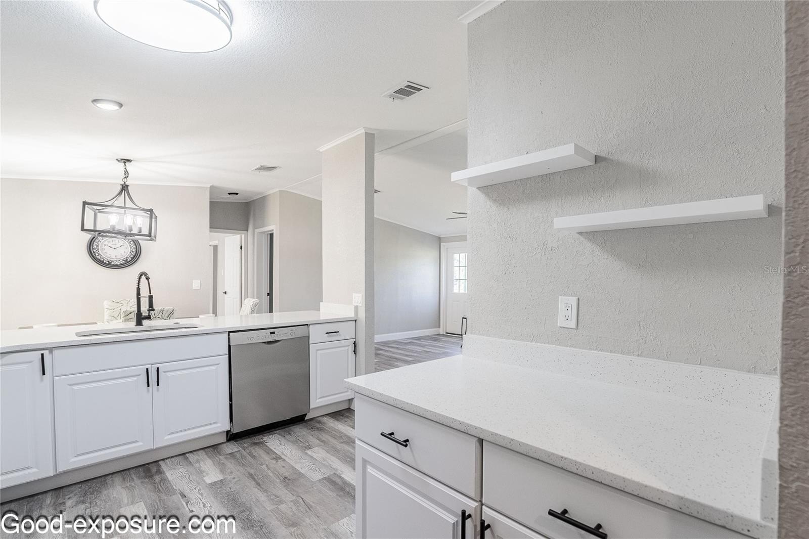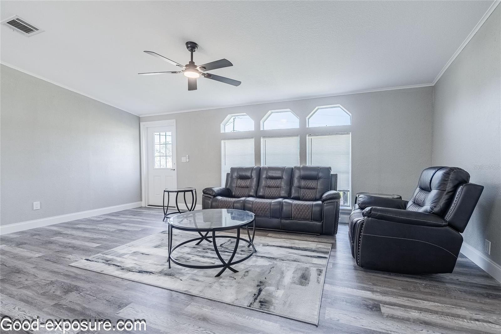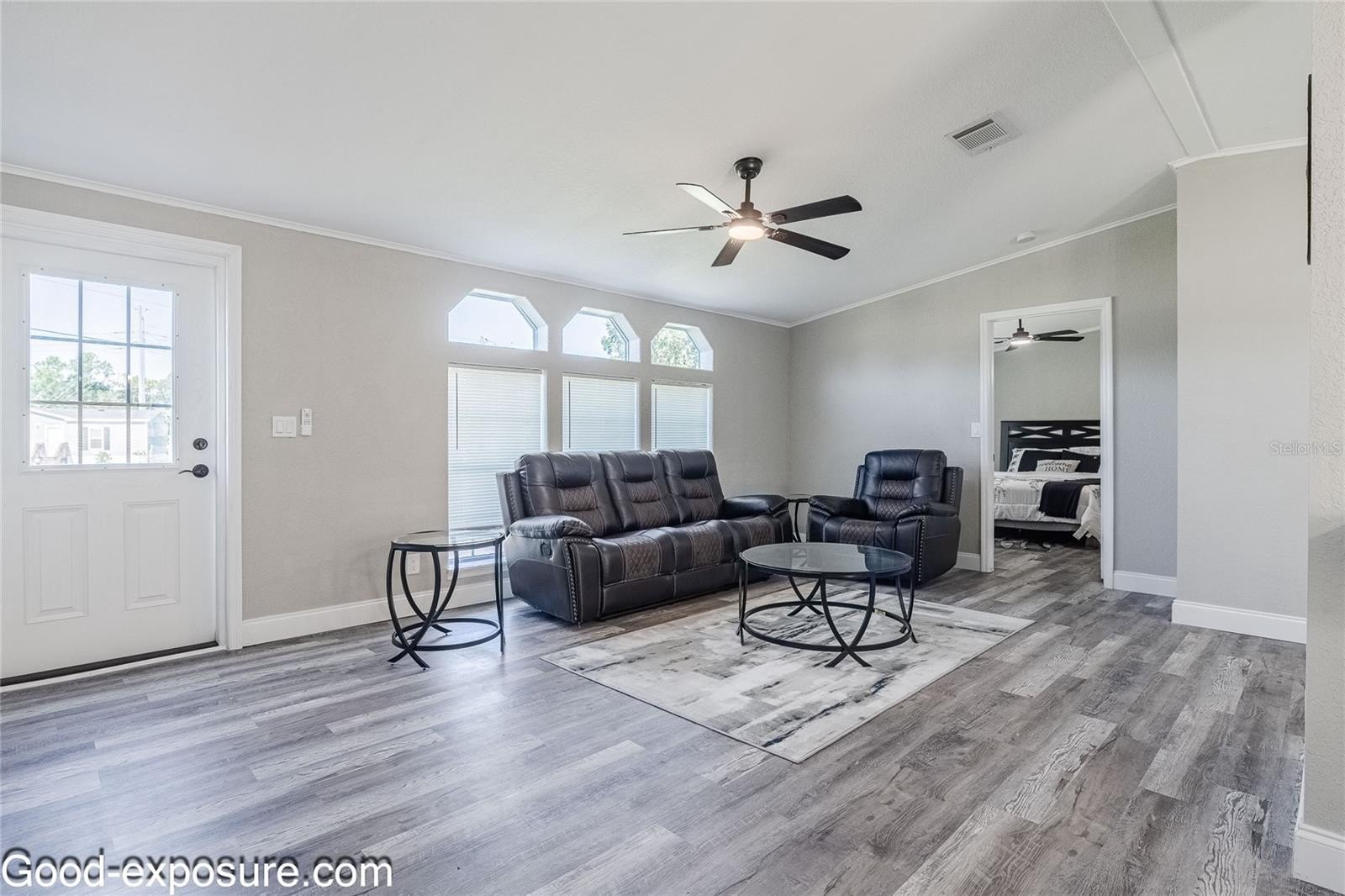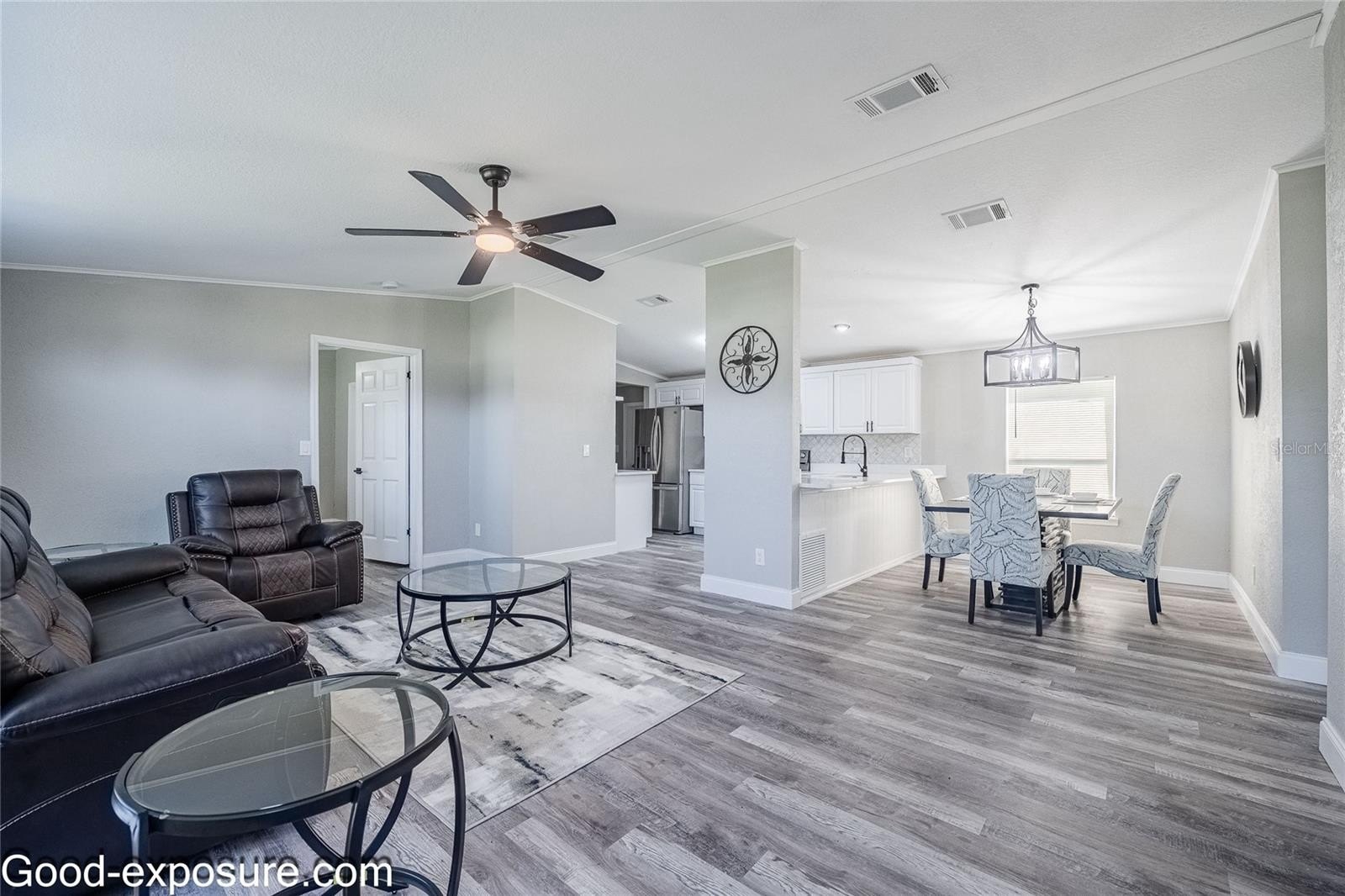 **ALERT**PRICE IMPROVEMENT**This new listing offers USDA, FHA, VA, Conventional, and Cash! Welcome to 7259 Dove Meadow Trail – A Fully Renovated Retreat on a Spacious, Private Lot! Nestled on a large lot in popular North Lakeland. This beautifully updated home offers the perfect blend of modern style, serene outdoor space, and everyday comfort. Interior Highlights: Step into an open-concept layout with new luxury vinyl plank flooring throughout. The designer kitchen is a chef’s dream – featuring new white cabinets, sleek black hardware, pot filler, quartz countertops, a nice modern backsplash, and new stainless steel appliances, including, range, dishwasher, a built-in microwave and large fridge. Entertain with ease from the eat-in dining area and bar-style countertop overlooking the kitchen/dining room. Relax in a cozy yet sophisticated living room, complete with a stylish ceiling fan and large windows letting in natural light. The primary suite offers peaceful privacy with a spacious walk-in closet and a spa-like bathroom featuring a walk-in tiled shower, double vanity, matte black fixtures, and updated lighting. Exterior & Land is situated on a private, almost 1 acre lot, surrounded by beautiful mature trees, open grassy areas, and partial wooded views — ideal for nature lovers, gardening, or adding future amenities. Enjoy morning coffee or evening sunsets on the charming front porch deck with bold black railings, giving this home modern curb appeal. Ample space for expansion, RV/boat parking, or even a workshop. Located in North Lakeland, this property offers easy commutes via nearbyI-4 to both Tampa and Orlando. Shopping & Groceries Walmart, Publix, Winn-Dixie, and Lakeland Square Mall (approx. 10-15 min drive). Dining Access to restaurants ranging from local diners to national chains along US-98. Schools Zoned for well-rated Polk County public schools; nearby private school options as well. The home has several recreation options such as Lake Gibson, parks, walking trails, and golf courses (e.g. Sandpiper Golf & Country Club). Quiet Community Low traffic area, ideal for peaceful living while still close to town. No HOA, giving you more freedom and flexibility. This move-in-ready home offers the best of both worlds – a peaceful, oversized lot with all the modern upgrades inside. Whether you’re a first-time buyer, downsizing, or looking for land with flexibility, 7259 Dove Meadow Trail is a must-see gem! Schedule your private showing today – this rare find won’t last long!