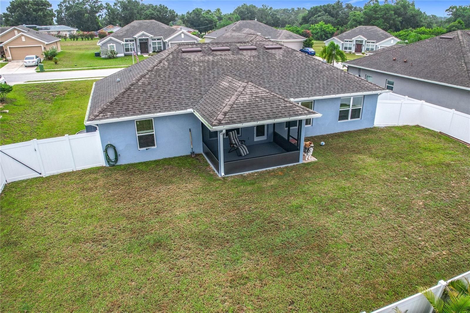 The kitchen is a standout with its white cabinetry, handmade extra shelving, all the appliances, tile backsplash, and plenty of counter space for cooking and gathering. Eagle crest is also a natural gas community, enjoying non stop hot water with a tank less water heater. Additional thoughtful upgrades include ceiling fans in every room, custom made wood door casings and trim, washer and dryer included, and a screened lanai — the perfect spot to unwind and enjoy the outdoors. The fully fenced backyard provides privacy, security, and space for pets or family fun.