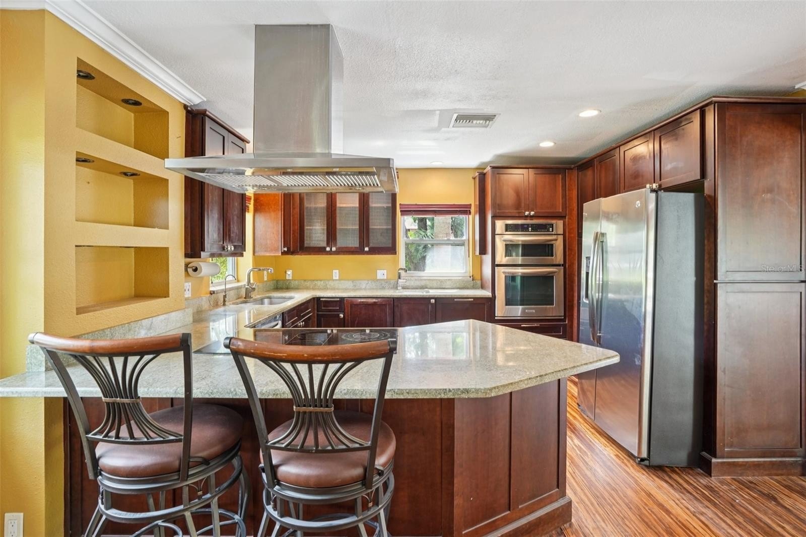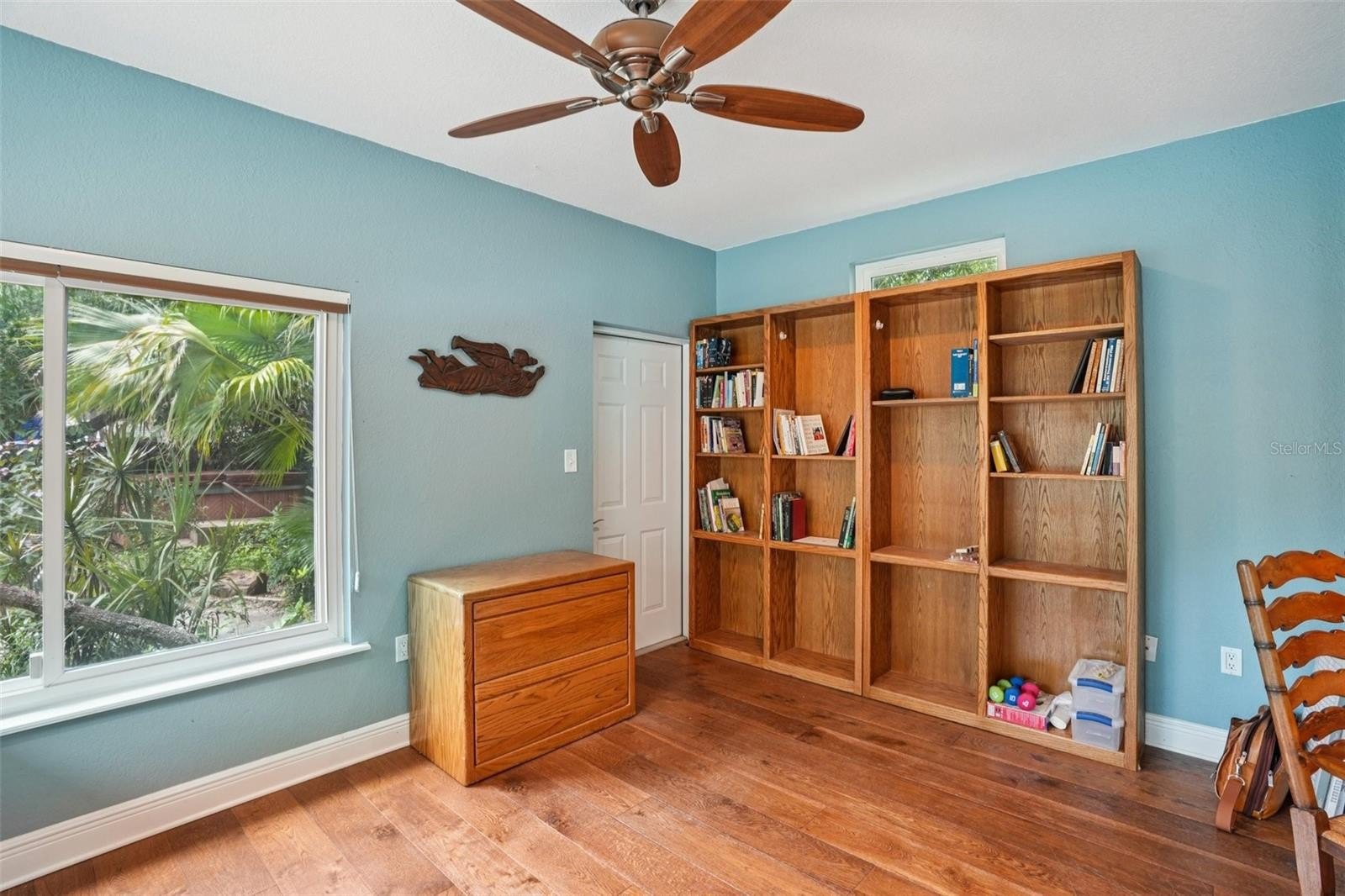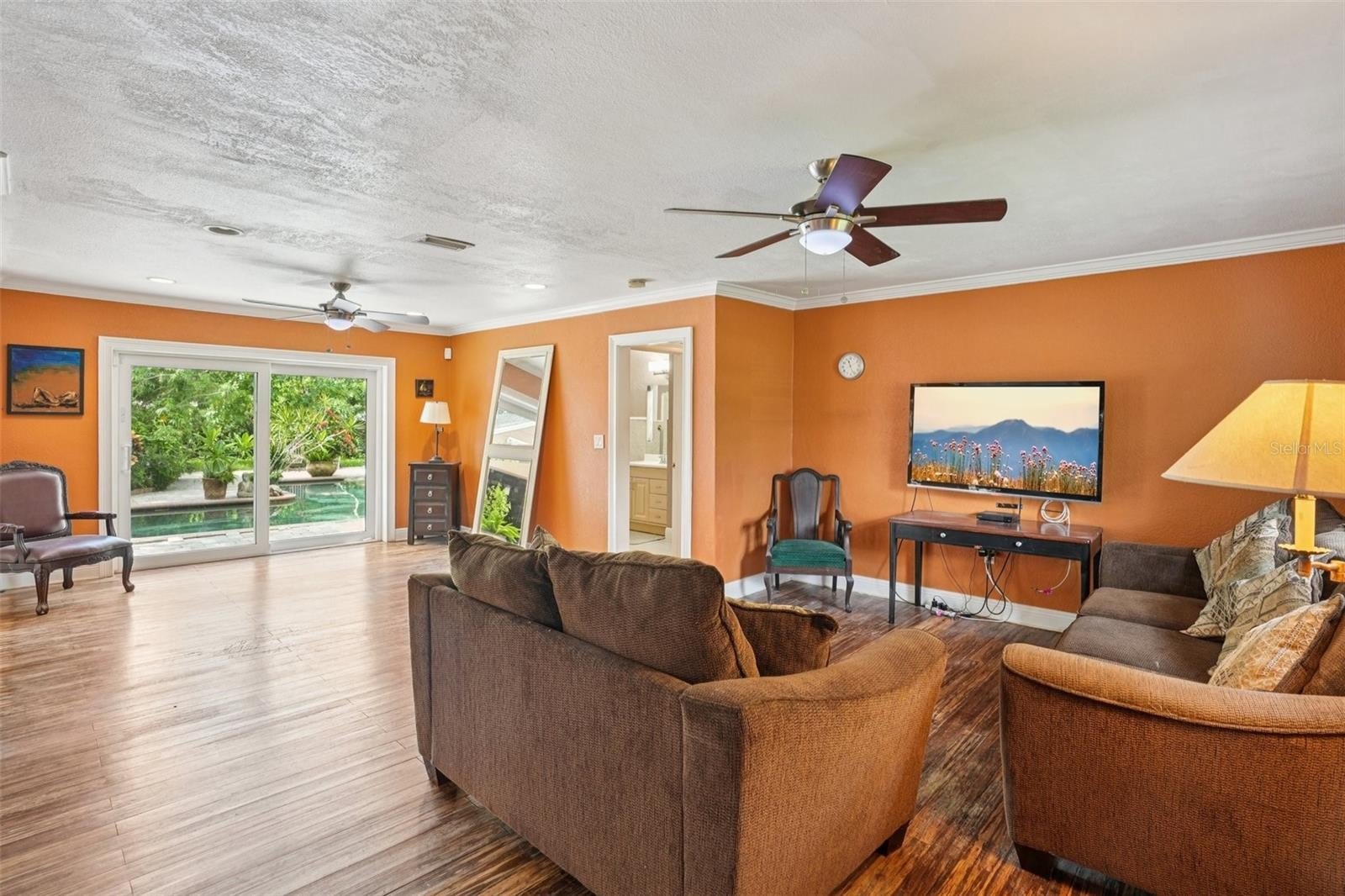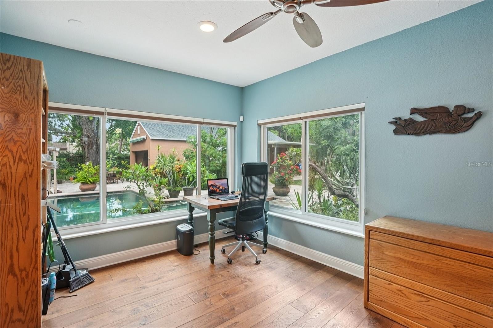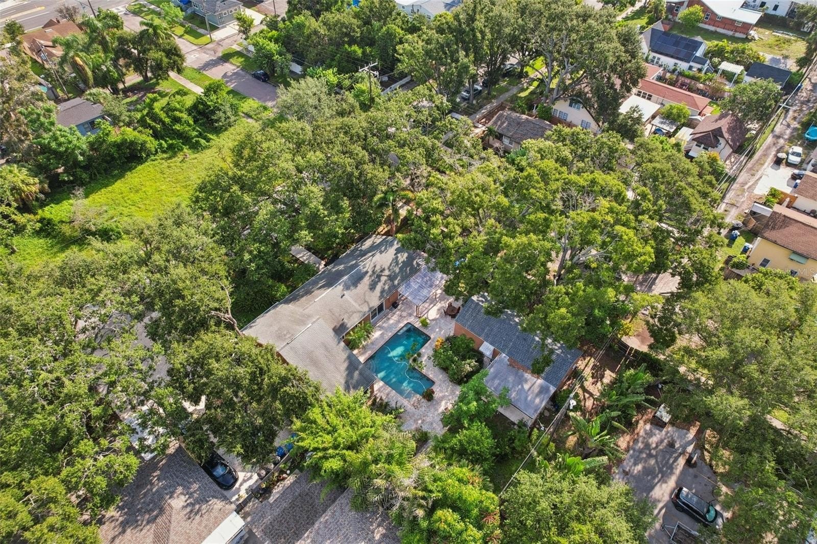 Step through the front door into an interior that feels warm and inviting. The layout flows easily from room to room, creating a space ideal for both everyday living and entertaining. At the heart of the home is the gourmet kitchen, featuring granite countertops, a sleek cooktop, convection microwave, dual sinks, and abundant cabinetry. Its generous prep space and open connection to the living areas make it perfect for casual meals or dinner parties. Adjacent to the kitchen, the spacious grand room offers bamboo hardwood floors, abundant natural light, and views of the lush landscaping and pool. This is the ideal setting for relaxing evenings or lively gatherings. The large primary bedroom is a true retreat, filled with natural light from multiple windows and offering plenty of room for a king-sized bed, sitting area, and more. A generous walk-in closet adds style and function, keeping everything organized and accessible. Additional bedrooms provide comfortable accommodations for guests or flexible space for an office, gym, or hobbies. Outside, the expansive backyard is a private oasis. A custom saltwater pool with a gentle ramp entrance invites you to cool off or simply float in the sun, surrounded by tropical gardens, mature trees, and a greenhouse for year-round gardening. The double lot offers rare extra space for outdoor living—whether sunbathing, dining under the shade, or hosting a barbecue. For hobbyists, the detached garage doubles as a workshop with ample space for tools, projects, and recreational gear. The thoughtful property design allows for generous parking without sacrificing green space. All of this is just minutes from downtown St. Petersburg’s dining, shopping, galleries, waterfront parks, and entertainment. Sports fans will appreciate the proximity to Tropicana Field, and beach lovers can reach the Gulf in no time. Located in FEMA’s non-flood Zone X, this home combines style, practicality, and a prime location into one outstanding offering.