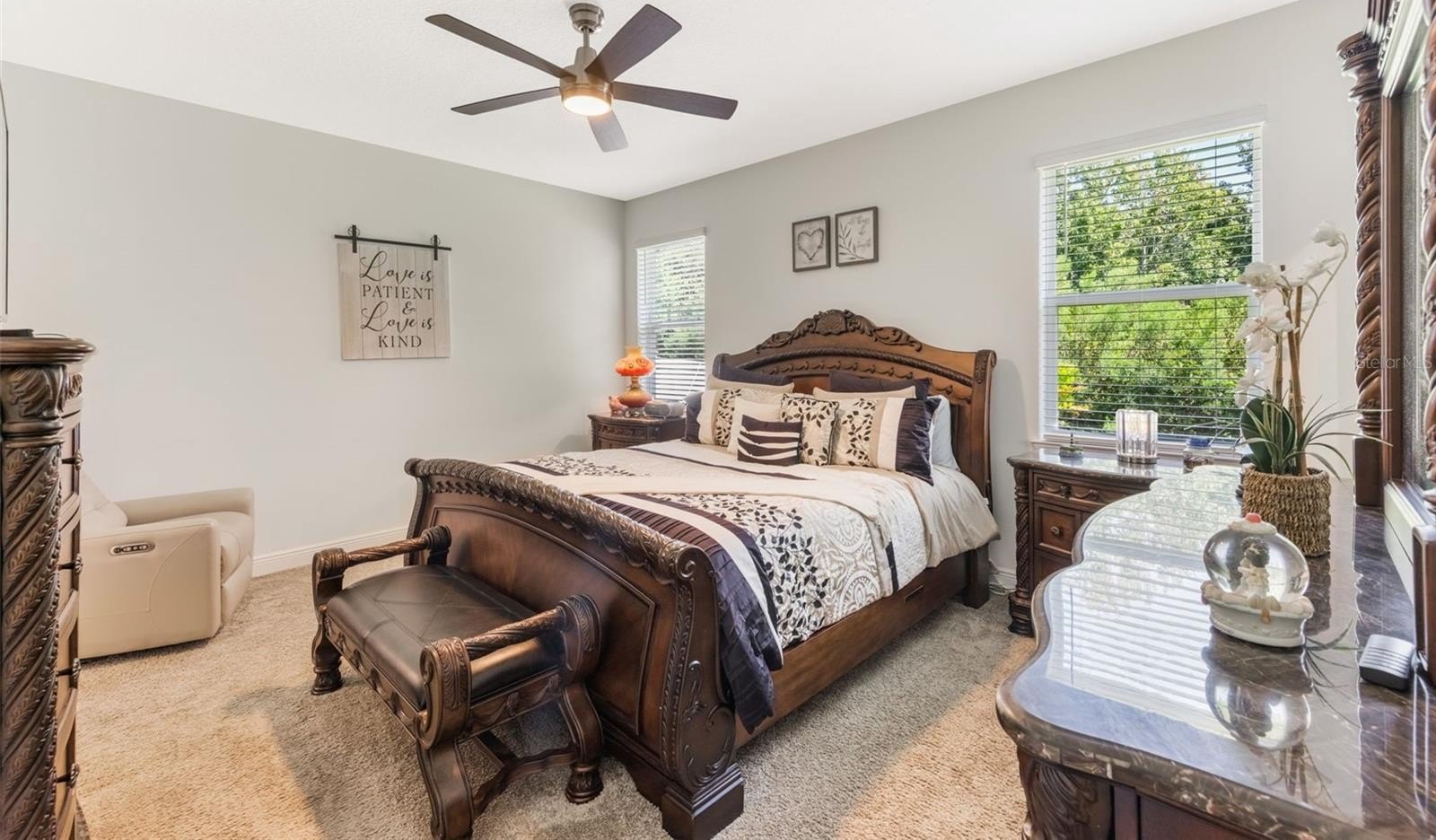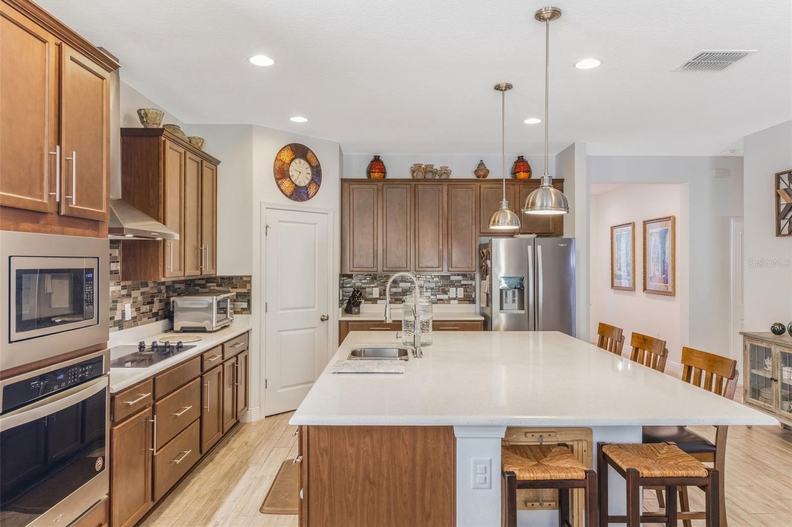 One or more photo(s) has been virtually staged. This stunning residence offers a perfect blend of comfort, style, and functionality. As you step inside, you’ll be greeted by an open, airy floor plan filled with natural light, high ceilings, and elegant finishes throughout. The spacious kitchen features modern cabinetry, sleek countertops, and stainless steel appliances—ideal for both everyday living and entertaining guests. The owner has thoughtfully extended the back patio, creating an inviting outdoor retreat that’s perfect for relaxing, hosting gatherings, or enjoying serene Florida evenings. The backyard offers ample space for gardening, play, or simply unwinding in a private setting. Located in a welcoming and well-kept neighborhood, this home is surrounded by lush landscaping, peaceful streets, and easy access to parks, shopping, dining, and top-rated schools. Whether you’re looking for a tranquil escape or a vibrant community lifestyle, this property offers the best of both worlds.