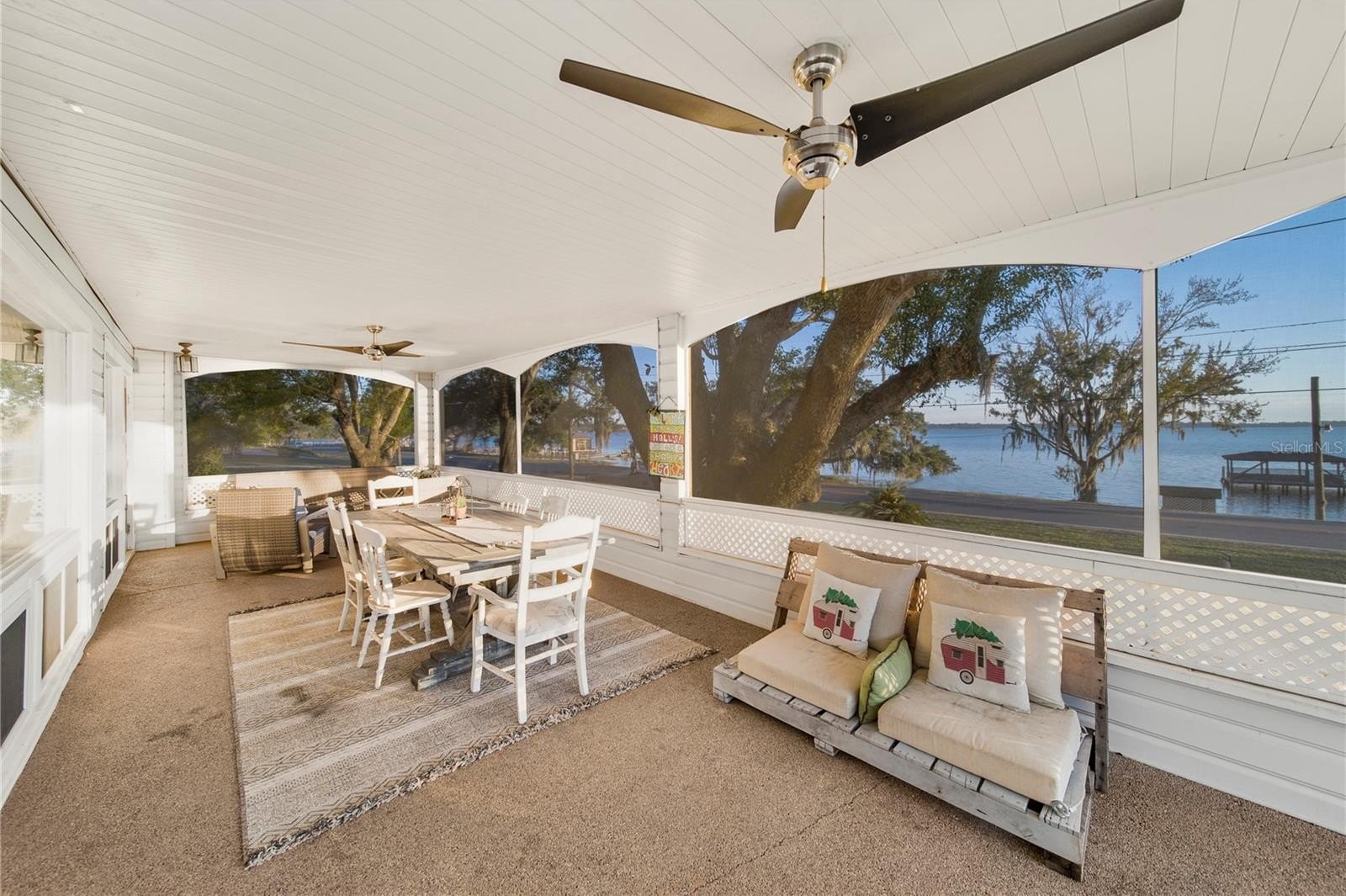 Welcome to this exceptional lakefront property on the picturesque shores of Lake Minneola. Originally built in 1924 and thoughtfully renovated throughout, this home combines timeless charm with modern elegance. With breathtaking water views and direct lake access, this is the ultimate retreat for those who love boating, jet skiing, or simply enjoying the beauty of lakeside living. The main house features 4 spacious bedrooms, beautifully updated bathrooms, and a gorgeous chef's kitchen with custom cabinetry, high-end appliances, and sleek finishes. The light-filled interior boasts large windows that frame the sparkling lake and an open layout