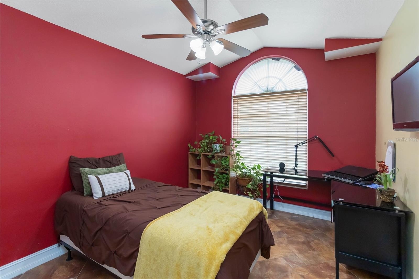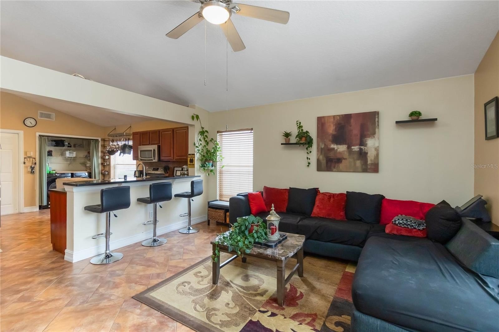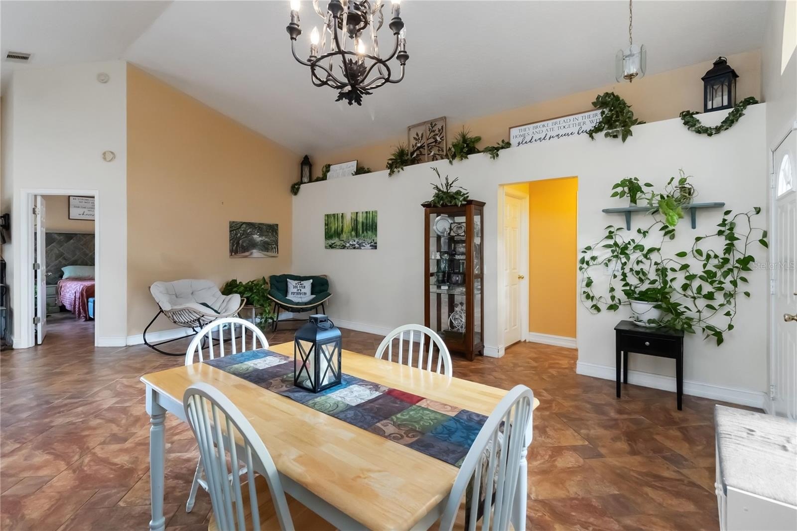 Step inside to find a bright, open layout with vaulted ceilings and abundant natural light. The formal living and dining rooms welcome you at the entry, while just to the right, two secondary bedrooms share a full bath and linen closet.