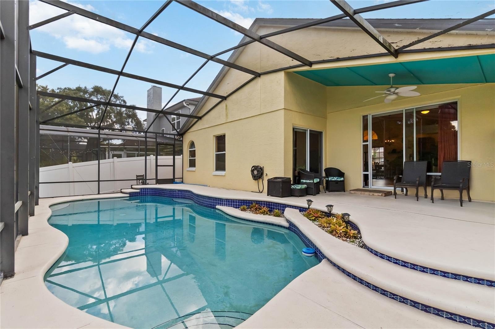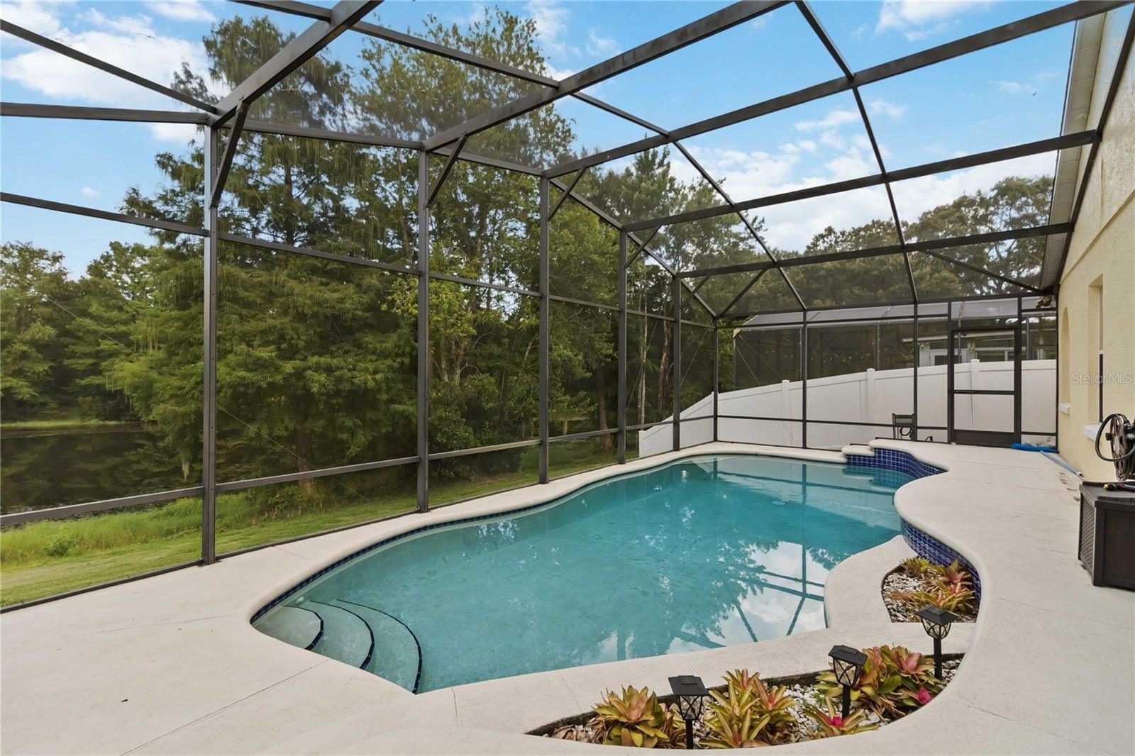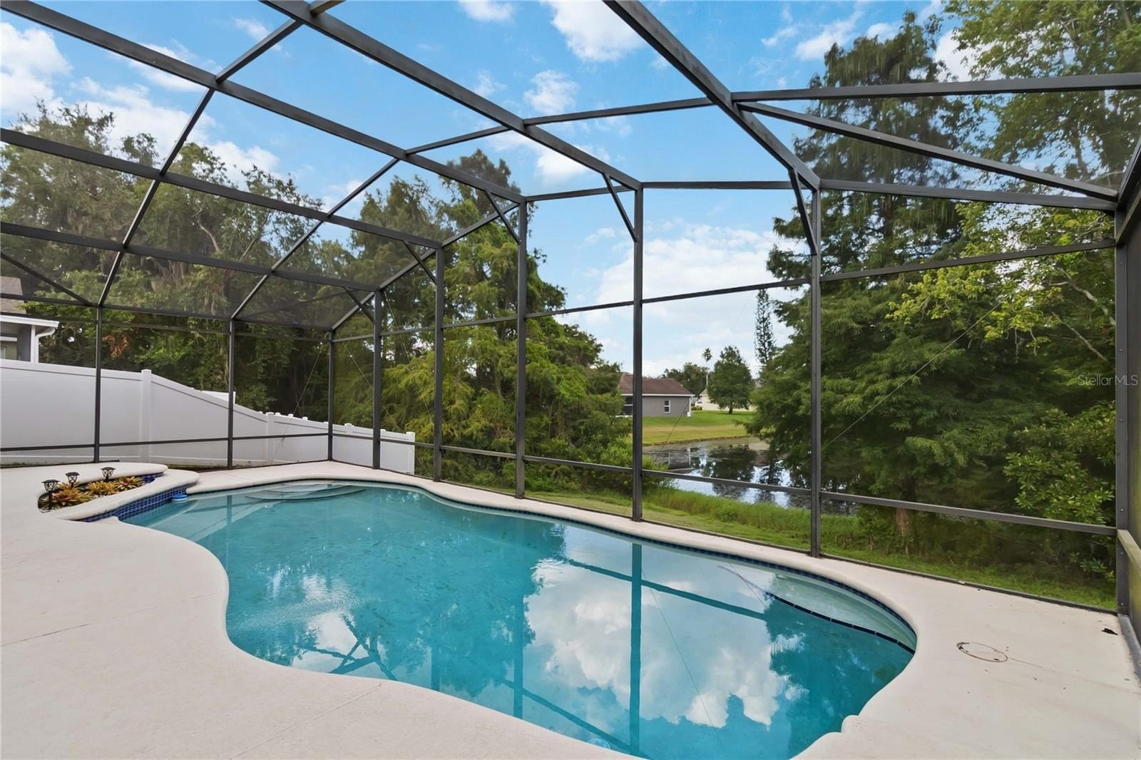 At the heart of the home, the kitchen opens seamlessly to the family room, all overlooking the screened lanai, pool, and tranquil water views. Toward the back, the spacious primary suite features a walk-in closet, en suite bath, and peaceful views of the water.