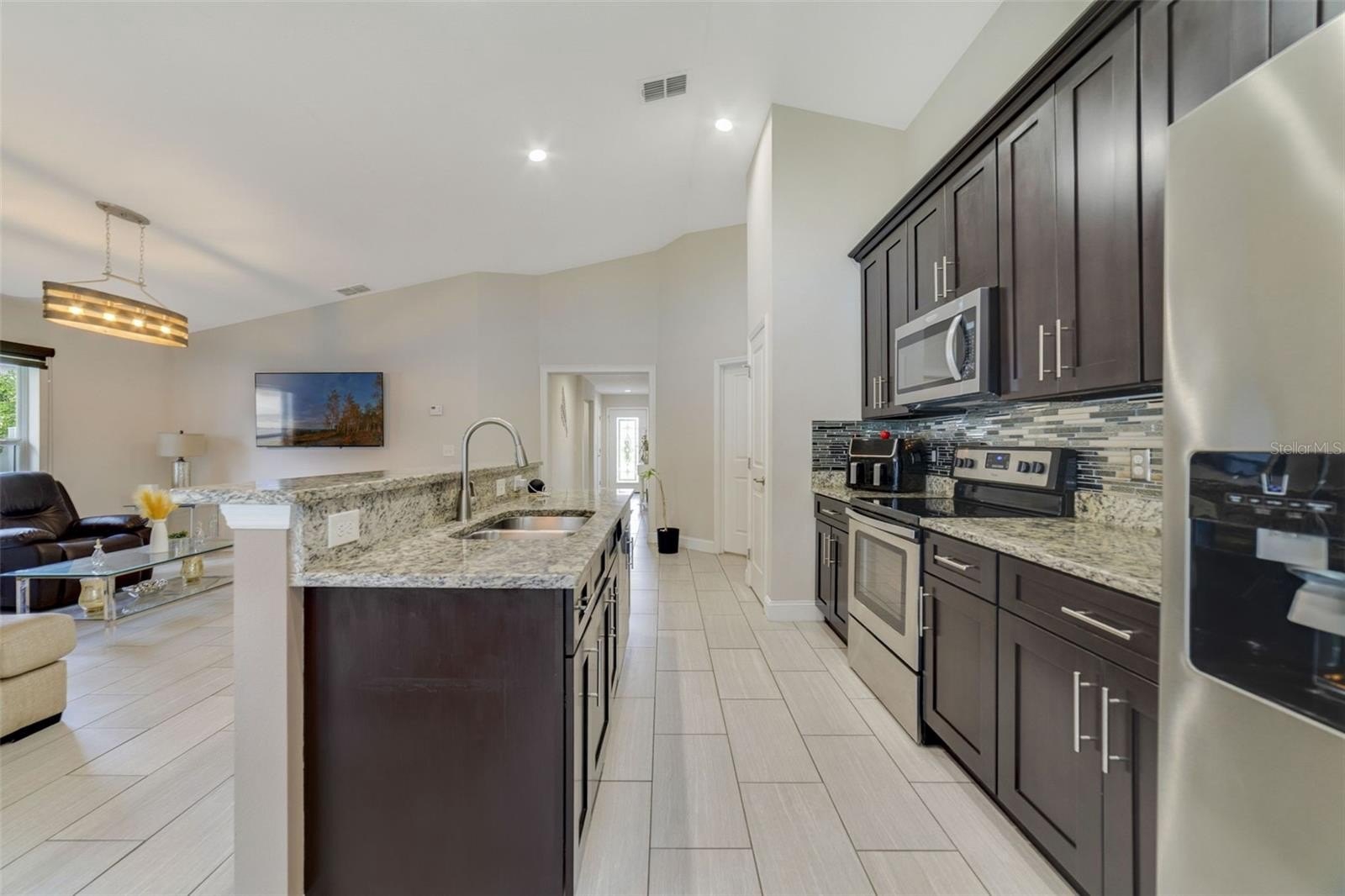 **Seller may consider buyer concessions if made in an offer**Welcome to this BEAUTIFULLY MAINTAINED 3-bedroom, 2-bath single-story home in Deltona Lakes, built in 2018 and showing LIKE NEW. Set on nearly ¼ ACRE, the home has been thoughtfully updated with NEW STUCCO and EXTERIOR PAINT (2025), added gutters, and a FULLY VINYL-FENCED backyard with two gated entries for privacy and convenience. Step inside to an inviting OPEN FLOOR PLAN, enhanced by ceramic tile flooring throughout, giving the home a fresh and modern feel. The Kitchen features GRANITE COUNTERTOPS, modern appliances, and ample cabinetry, opening seamlessly to the Dining and Living spaces, perfect for gatherings. Sliding glass doors in the Dining area lead to a covered patio overlooking the SPACIOUS backyard, complete with TWO SHEDS for extra storage. The primary suite is a PRIVATE RETREAT with an en suite bath featuring dual sinks, a step-in shower, a private water closet, and a generous walk-in closet. Two additional bedrooms and a full bath provide flexibility for family, guests, or a home office. Everyday tasks are a breeze with the convenience of an INDOOR LAUNDRY ROOM, complete with washer and dryer. Best of all, this home comes with NO HOA, giving you the freedom to truly make it your own. Tucked into the heart of DELTONA LAKES, this home places everyday conveniences like shopping, dining, and schools right at your fingertips, while NEARBY TREASURES such as Dupont Lakes Park, Lake Monroe, and Green Springs Park invite you to spend your weekends outdoors. And when adventure calls, EASY ACCESS to I-4, SR 415, and the SunRail station means you can be soaking up the sun in DAYTONA or NEW SMYRNA BEACH, or enjoying the vibrant dining and entertainment of Downtown Orlando in no time at all. With its like-new condition, modern finishes, and SPACIOUS LOT, this Deltona Lakes home is MOVE-IN READY and waiting for you. Schedule your private tour TODAY!
