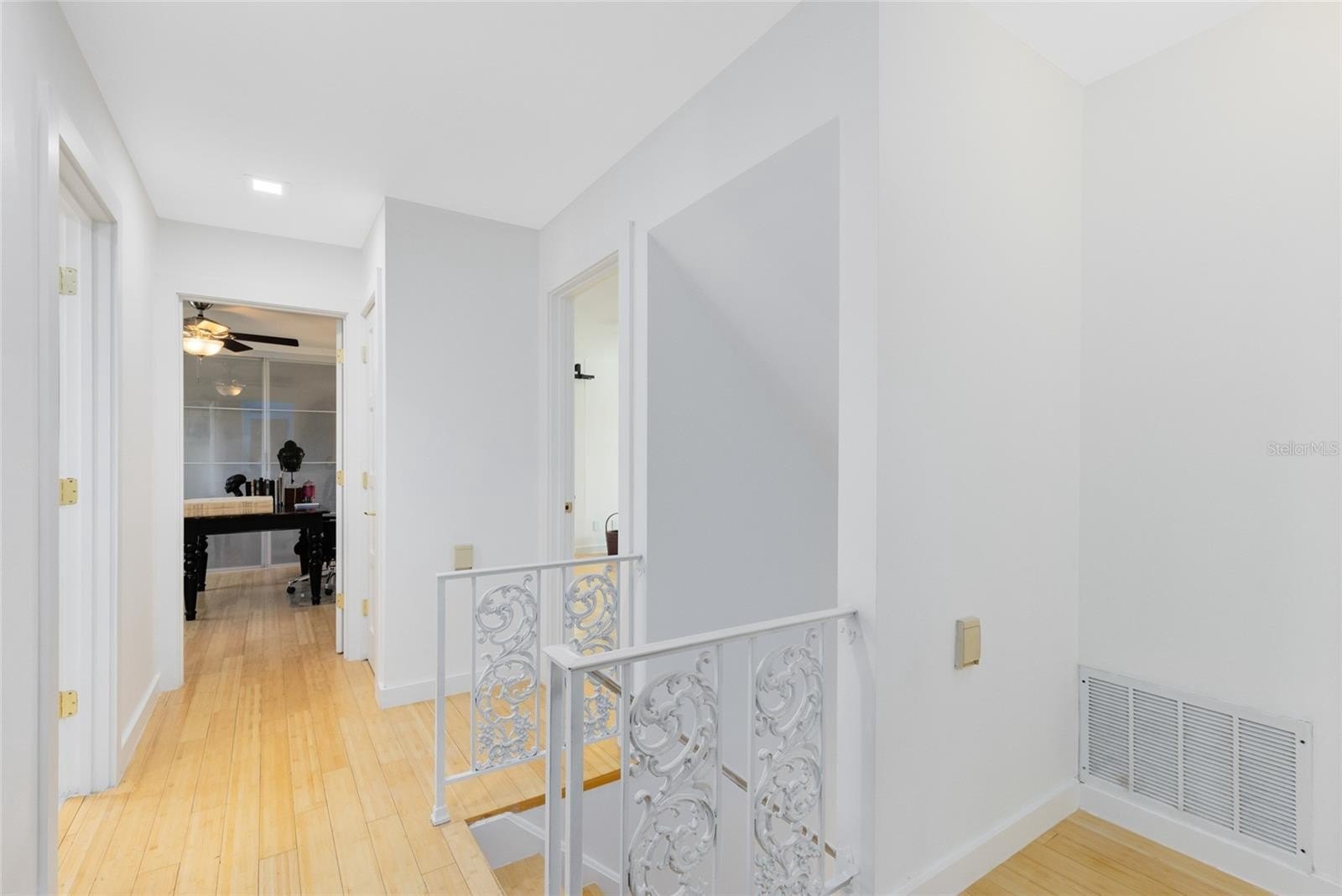 Upstairs, the primary suite offers a true sanctuary with French doors leading to the front balcony. The ensuite bath has been fully remodeled, featuring dual vanities, a walk-in shower, and thoughtful details that create a spa-like retreat. Three additional bedrooms complete the upper level, each with its own charm, natural light, and modern updates. One of the bedrooms also opens to the balcony, while a stylishly remodeled full bath serves the secondary rooms.