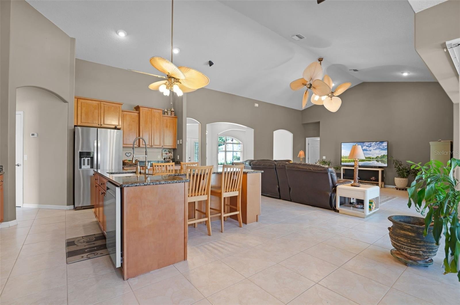 Sliding glass doors from the nook and family room invite you to a screened-in pool and spa oasis, designed for the perfect entertaining experience. Enjoy the new pool equipment, including a resurfaced saltwater system and heated spa.