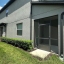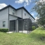 The first floor features an open layout connecting the great room and kitchen. The kitchen is designed with espresso cabinetry, granite countertops, subway tile backsplash, GE stainless steel appliances, and a window over the sink. A powder bath and storage closet are located off the great room. Wood-look tile flooring runs throughout the first level and in the upstairs wet areas. The screened patio extends the living space outdoors.
