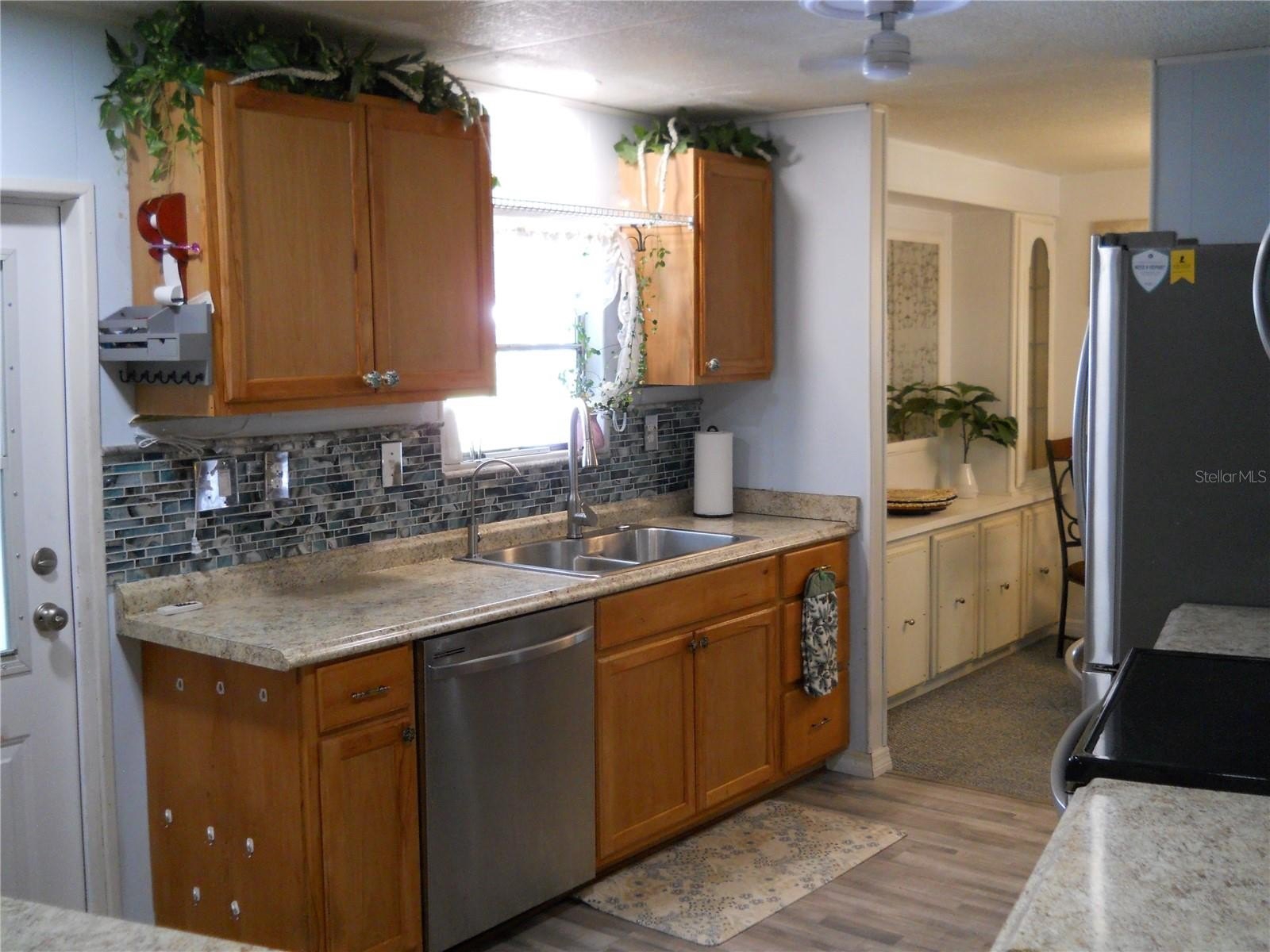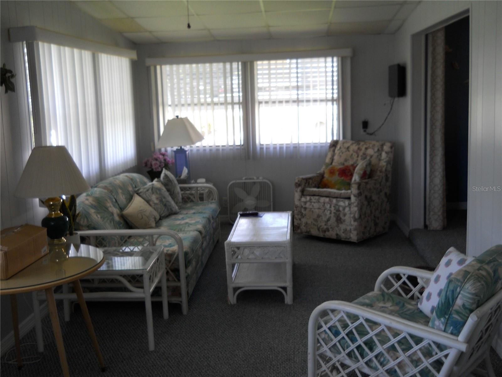 Beautiful Turnkey home located in Orange Blossom Gardens. Just bring your toothbrush. NO BOND. Recently renovated with 2 bedrooms and 2 new baths with top end fixtures. The hall bath has an impressive soaking tub, and the master bath has a new shower with multiple heads. The roof was installed in 2021, the hvac was replaced in 2021, the hot water tank and water softener were replaced in 2024. The kitchen was updated with granite tops, new backsplash and stainless-steel appliances in 2021. The home includes an enclosed front porch/ Florida room and a screened in lanai. The washer/ dryer is new in 2025. Please be sure to check out the new light fixtures/ fans and the new plumbing fixtures. The home also includes a spacious laundry room plus a storage room. The primary bedroom has 2 closets. This is a lot of value in a great location, only minutes by golf cart to the Orange Blossom recreation areas, pool, golf course or to Spanish Springs town square. Welcome to The Villages.