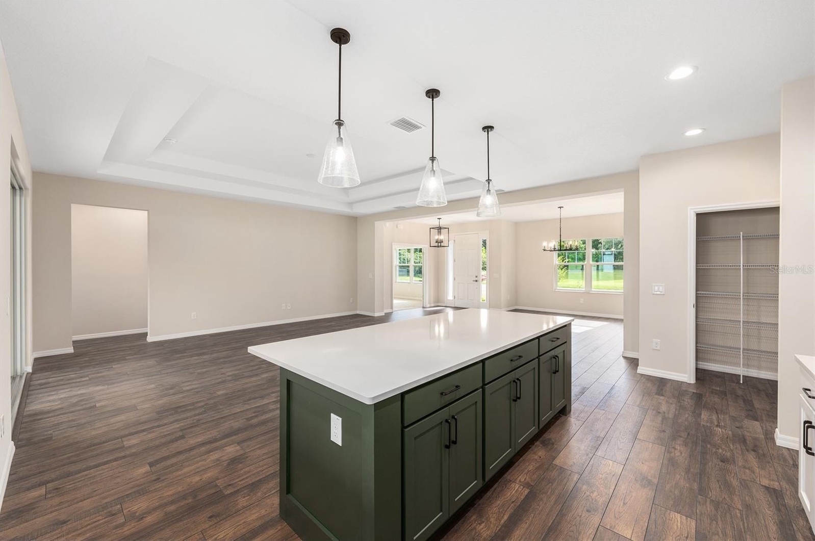 The soaring 9”4” ceilings with a double pop-up ceiling in the great room opens up to 8 ft Kitchen island for food prep and entertaining. Upgrading cabinets The large 13’X 12’ Study/Office gives you plenty of space for any extra needs you may have.