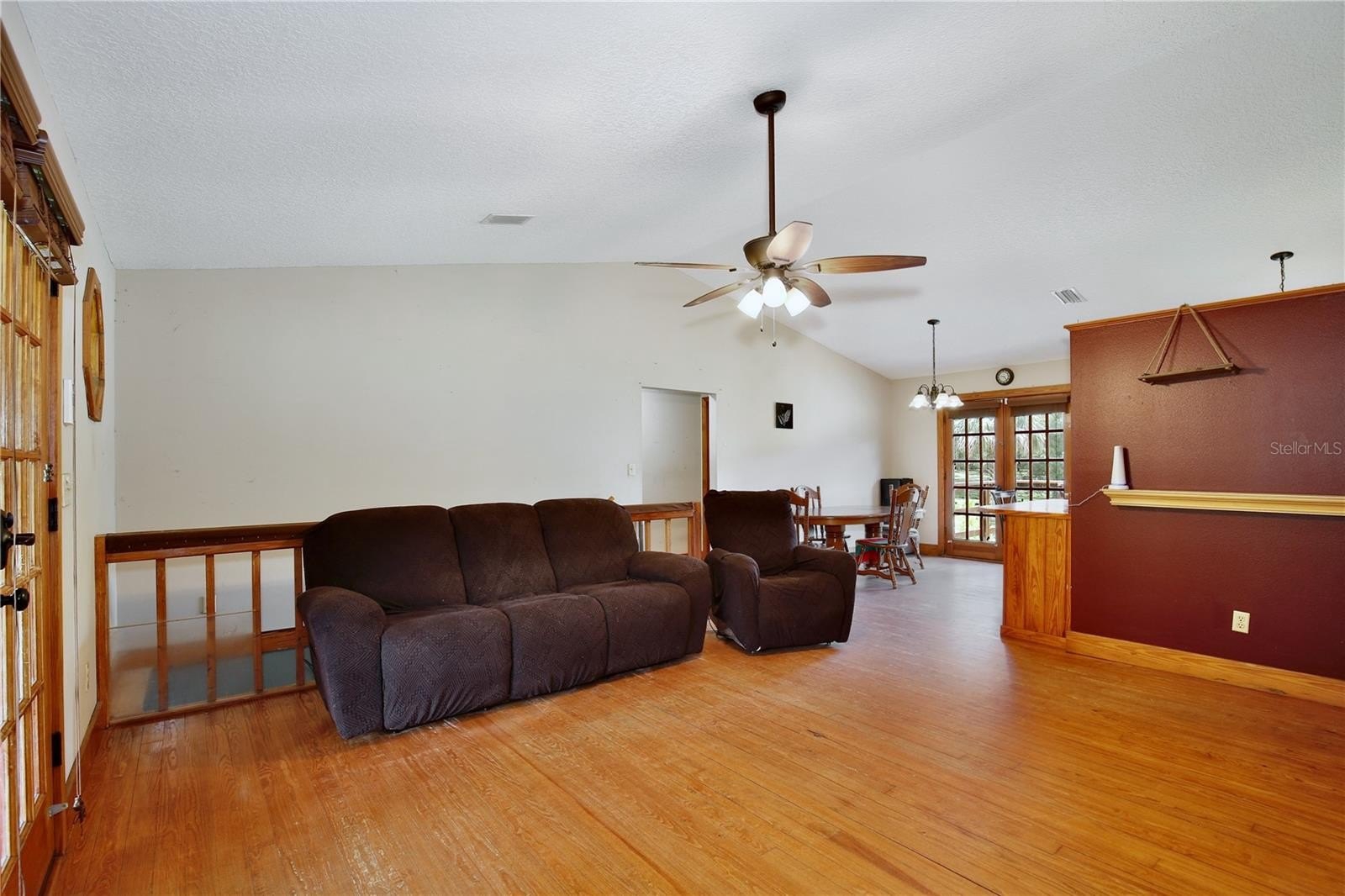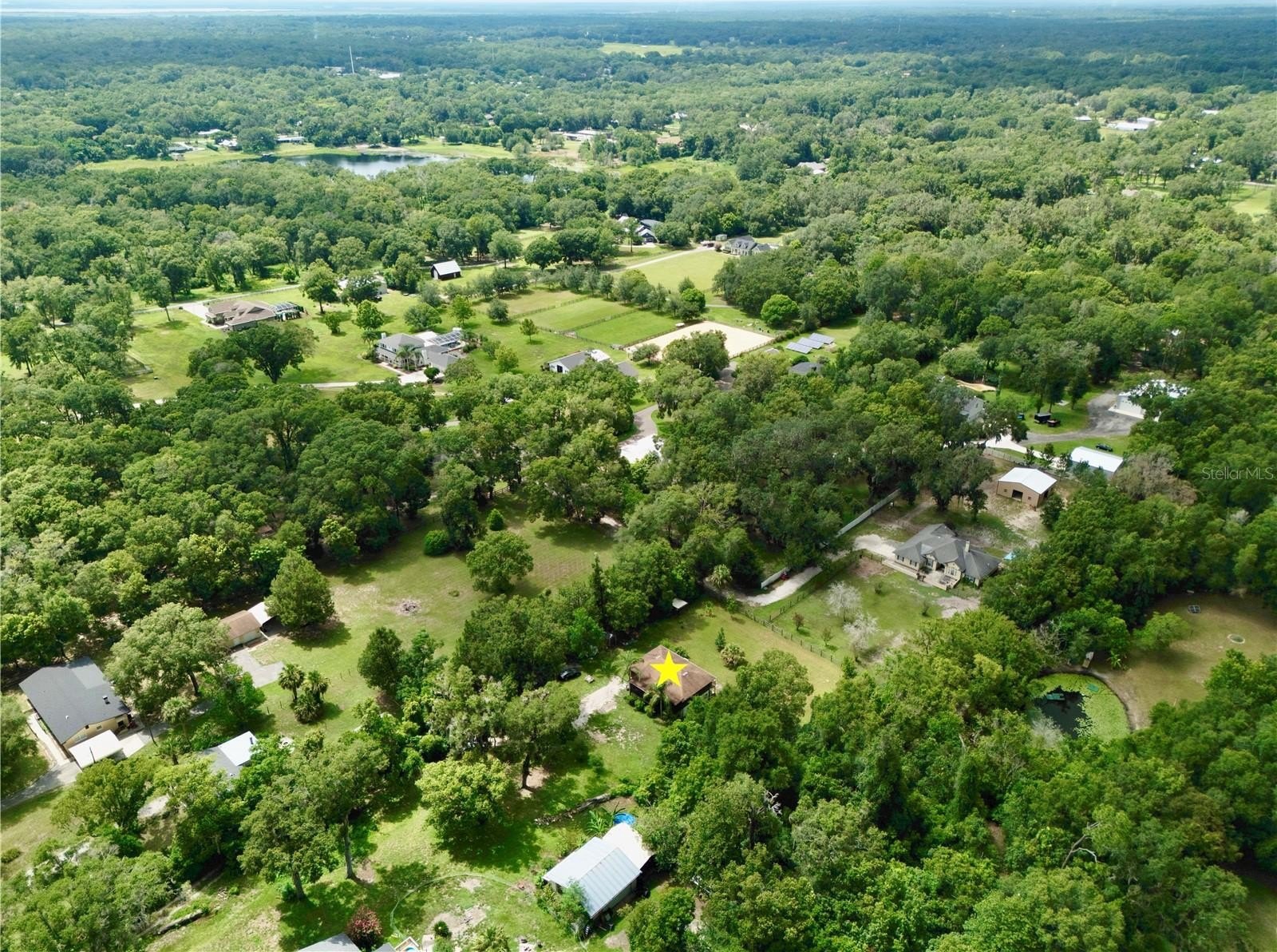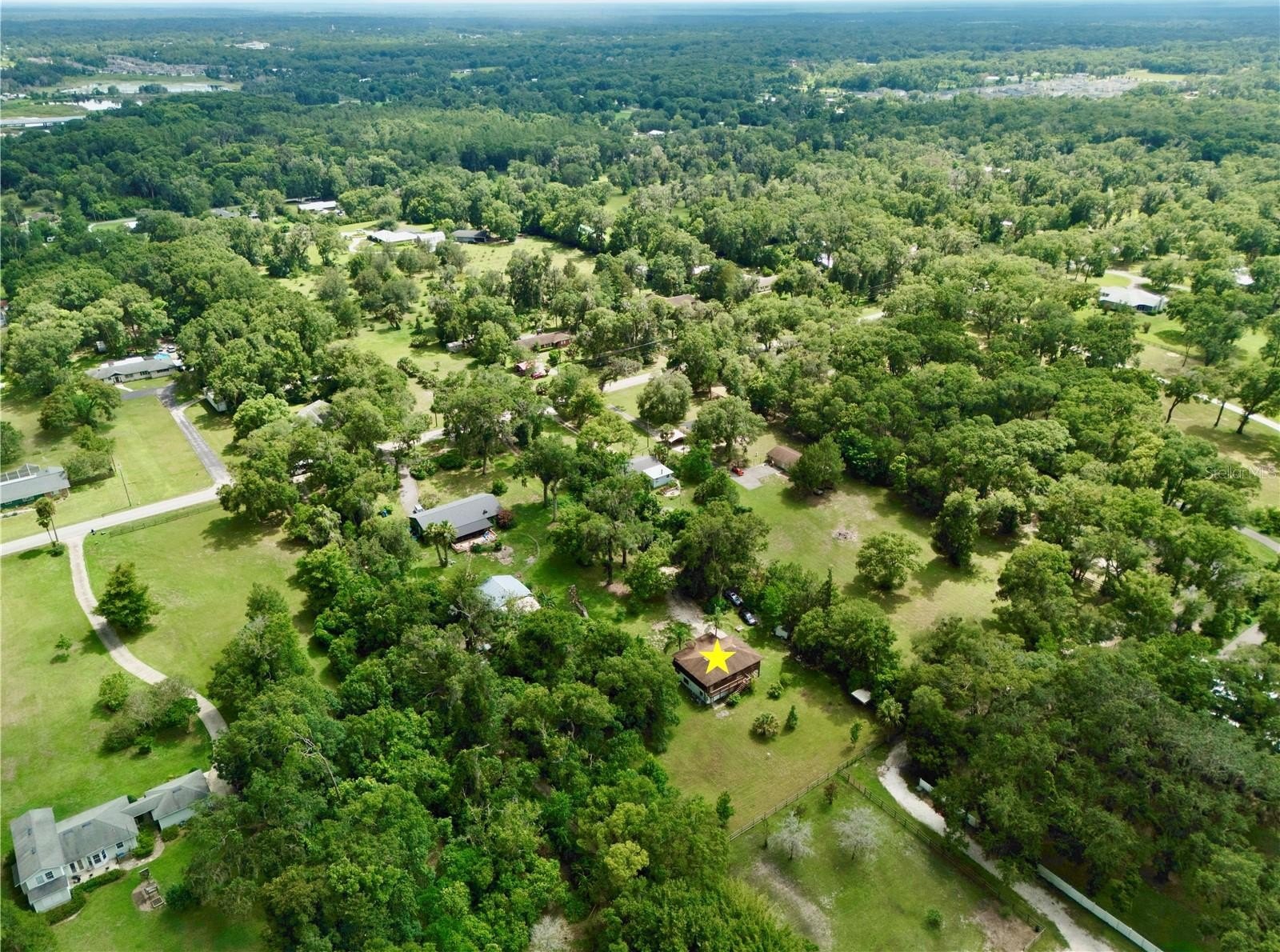 Welcome to your personal retreat nestled on a serene 1 acre paradise. THE HOME WILL BE PAINTED SOON, GET UNDER CONTRACT NOW TO SELECT YOUR COLOR. This four bedroom, three bathroom house situated at the end of a private drive is surrounded by lush palm trees and a sprawling landscape, creating an oasis for relaxation and entertainment. As you step onto the property, you'll be greeted by the beautiful screened balcony’s patio. The French door entry welcomes you into a spacious great room that radiates warmth with its vaulted ceilings, natural light, and wood flooring. Mealtime is a breeze in the kitchen boasting generous cabinet storage, a sleek stainless steel fridge, bar top seating, and peaceful views of the tranquil backyard. Adjacent to the kitchen, the dining space provides seamless access to another balcony with its own set of French doors, perfect for al fresco dining or simply enjoying the picturesque surroundings. Retire to the comfort of the primary bedroom, a sanctuary featuring a walk in closet, balcony patio access, and an en suite bath complete with an LED mirror, expansive counter space, and a spa-like glass door shower adorned with decorative tile. Two additional light and airy guest bedrooms and a well appointed guest bathroom round out the second floor. The first floor presents versatile living options with a separate private entrance that could serve as a mother-in-law suite or rental unit, adding potential monthly cash flow. This space includes a dining and living area, a kitchenette, a full bathroom, and a bedroom. Located just minutes from Stetson University, the charming downtown area of DeLand, Walmart, shopping and dining options, DeLand Municipal Airport, and the natural beauty of Blue Springs State Park. Stroll the downtown streets and grab a drink, swim with the manatees at the springs, or go skydiving at the airport. This serene and private location is close to both the beauty of nature and the convenience of the city. Don’t miss the opportunity to claim this gem as your own—schedule a showing today!
