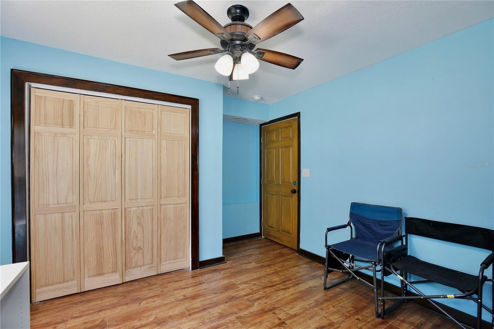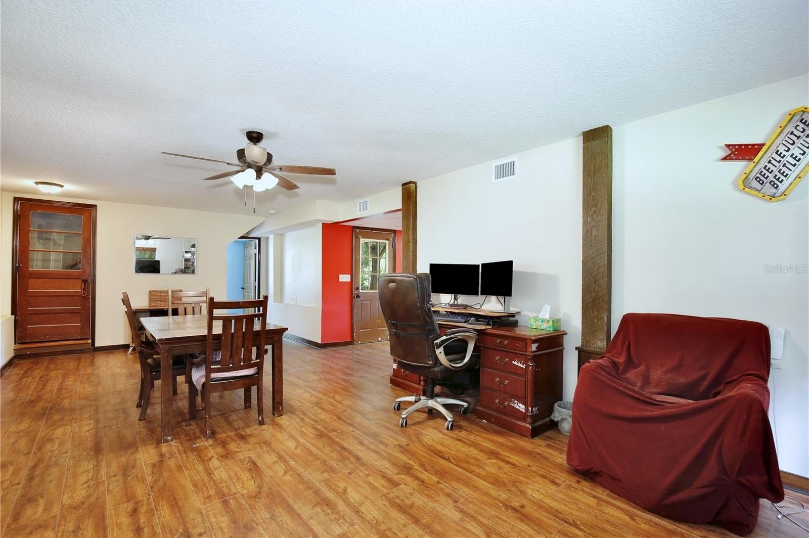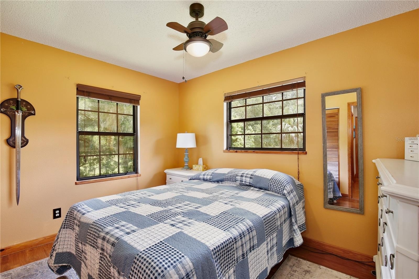 Welcome to your personal retreat nestled on a serene 1 acre paradise. THE HOME WILL BE PAINTED SOON, GET UNDER CONTRACT NOW TO SELECT YOUR COLOR. This four bedroom, three bathroom house situated at the end of a private drive is surrounded by lush palm trees and a sprawling landscape, creating an oasis for relaxation and entertainment. As you step onto the property, you'll be greeted by the beautiful screened balcony’s patio. The French door entry welcomes you into a spacious great room that radiates warmth with its vaulted ceilings, natural light, and wood flooring. Mealtime is a breeze in the kitchen boasting generous cabinet storage, a sleek stainless steel fridge, bar top seating, and peaceful views of the tranquil backyard. Adjacent to the kitchen, the dining space provides seamless access to another balcony with its own set of French doors, perfect for al fresco dining or simply enjoying the picturesque surroundings. Retire to the comfort of the primary bedroom, a sanctuary featuring a walk in closet, balcony patio access, and an en suite bath complete with an LED mirror, expansive counter space, and a spa-like glass door shower adorned with decorative tile. Two additional light and airy guest bedrooms and a well appointed guest bathroom round out the second floor. The first floor presents versatile living options with a separate private entrance that could serve as a mother-in-law suite or rental unit, adding potential monthly cash flow. This space includes a dining and living area, a kitchenette, a full bathroom, and a bedroom. Located just minutes from Stetson University, the charming downtown area of DeLand, Walmart, shopping and dining options, DeLand Municipal Airport, and the natural beauty of Blue Springs State Park. Stroll the downtown streets and grab a drink, swim with the manatees at the springs, or go skydiving at the airport. This serene and private location is close to both the beauty of nature and the convenience of the city. Don’t miss the opportunity to claim this gem as your own—schedule a showing today!
