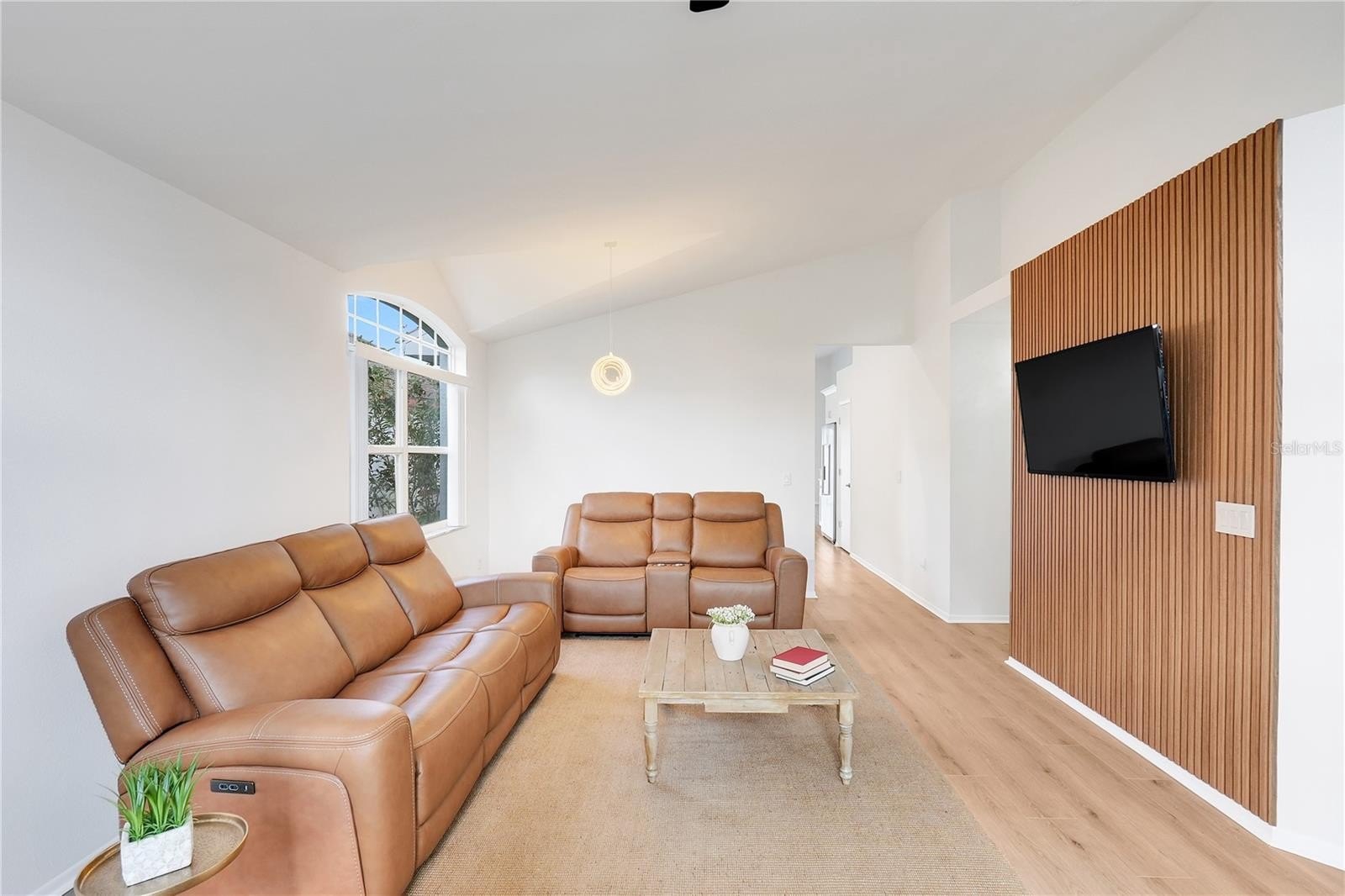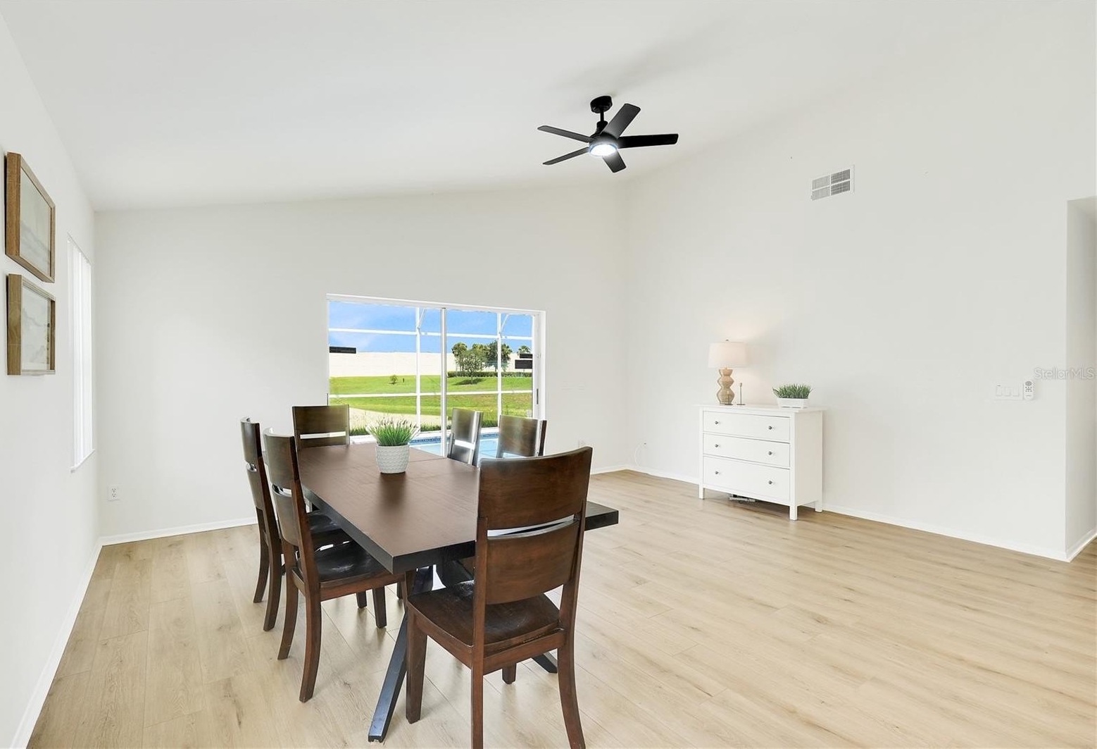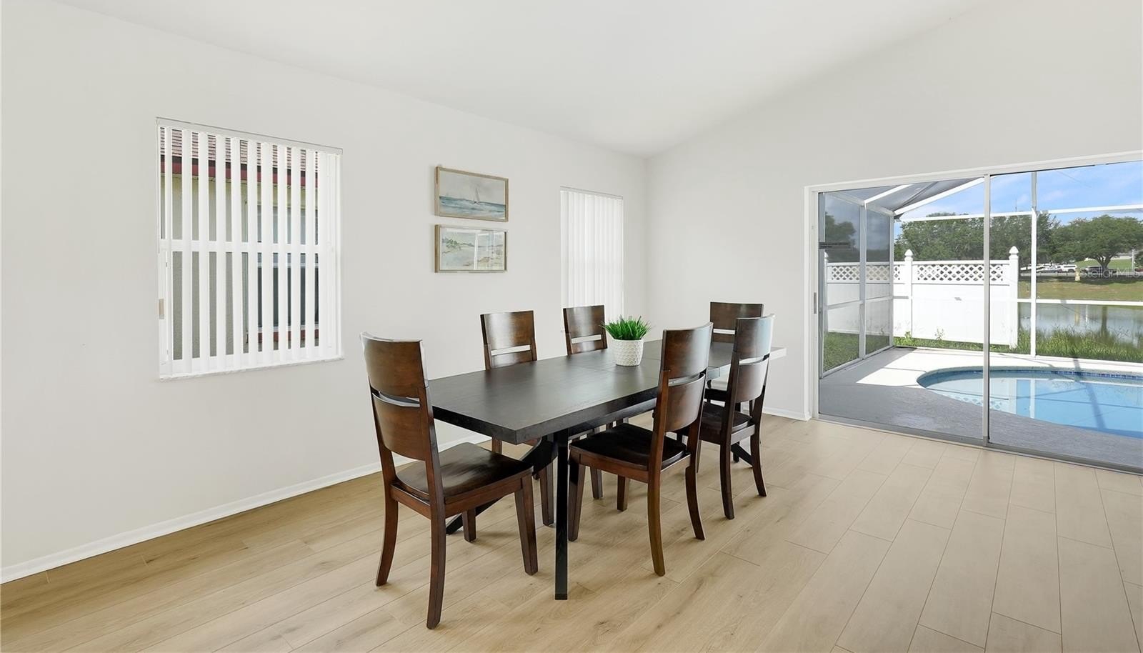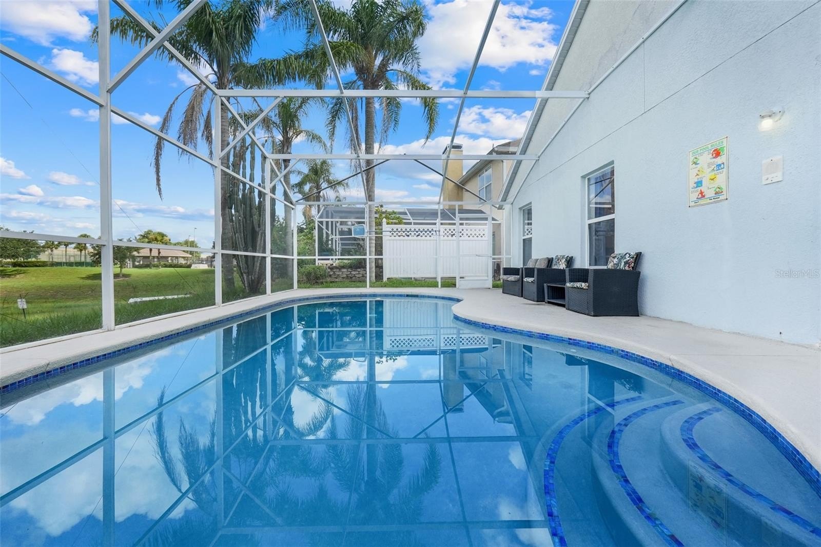 Enjoy movie nights or relaxed gatherings in the inviting family room, then step outside to your private backyard oasis. Take in tranquil pond views from your screened-in pool enclosure—offering the ultimate setting for outdoor entertaining or peaceful relaxation, all with no rear neighbors for added privacy.