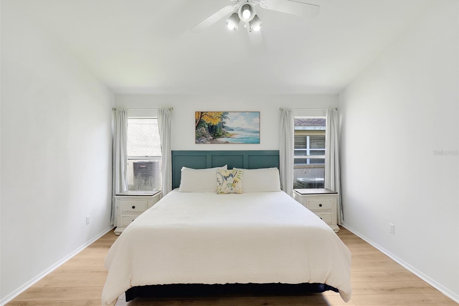 The expansive primary suite is a true retreat, featuring a luxurious en-suite bath with skylight, a generously sized walk-in closet, and serene natural light. Each of the three additional bedrooms offers ample space and flexibility, ideal for guests, a home office, or creative pursuits.
