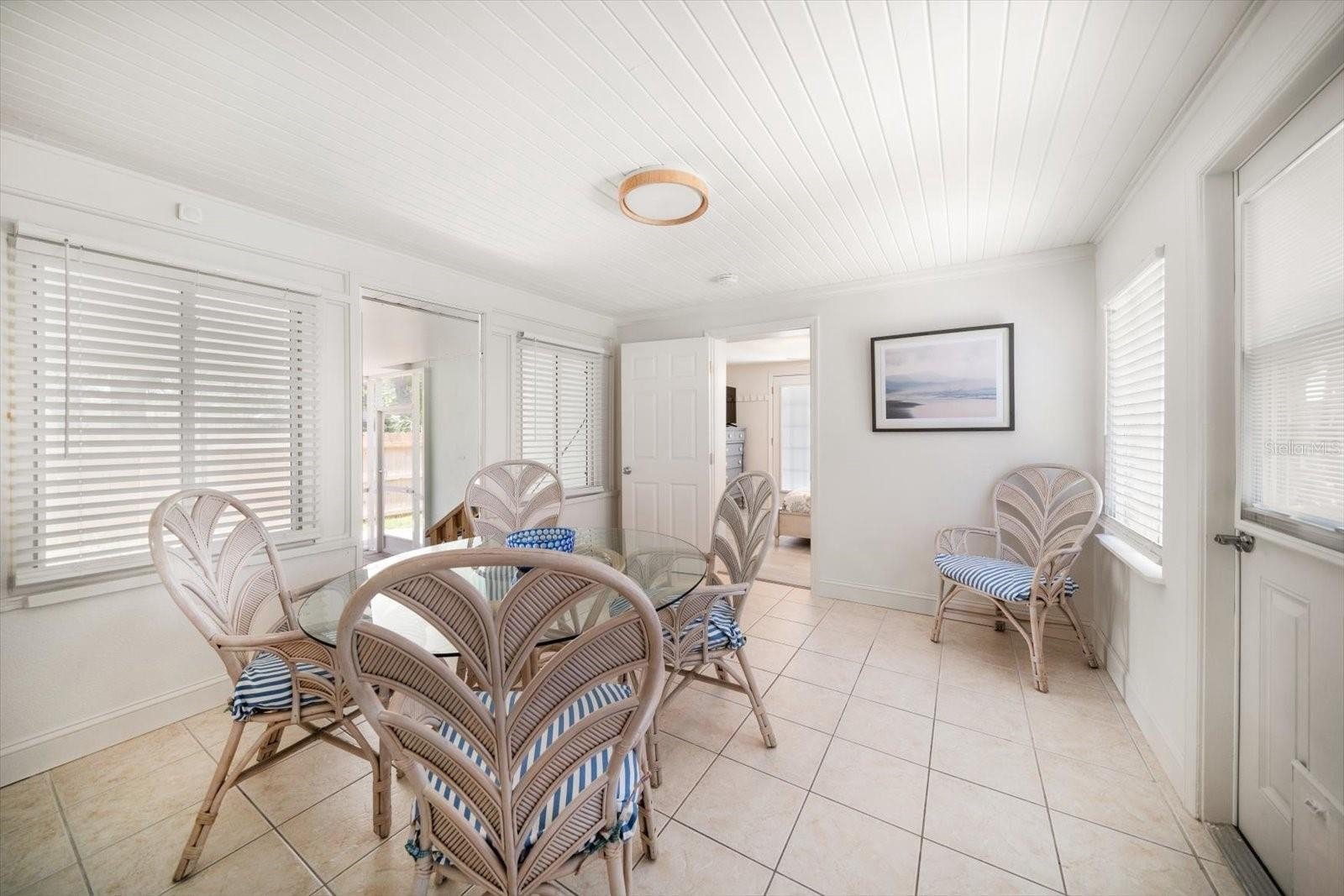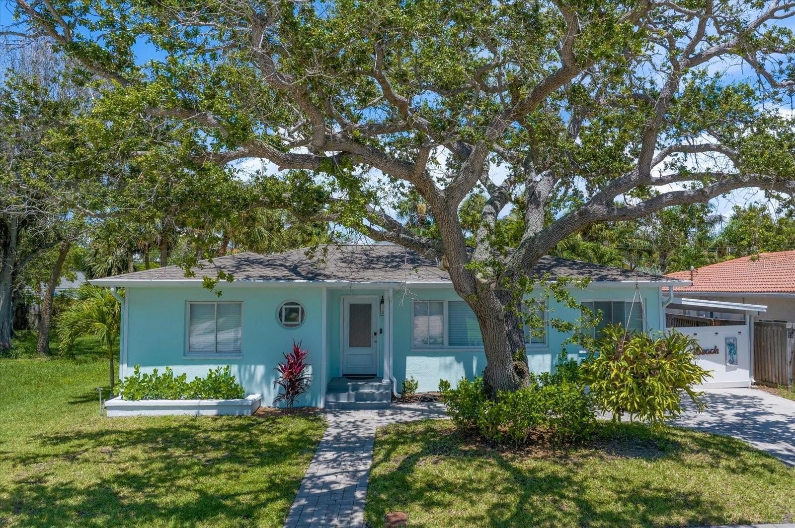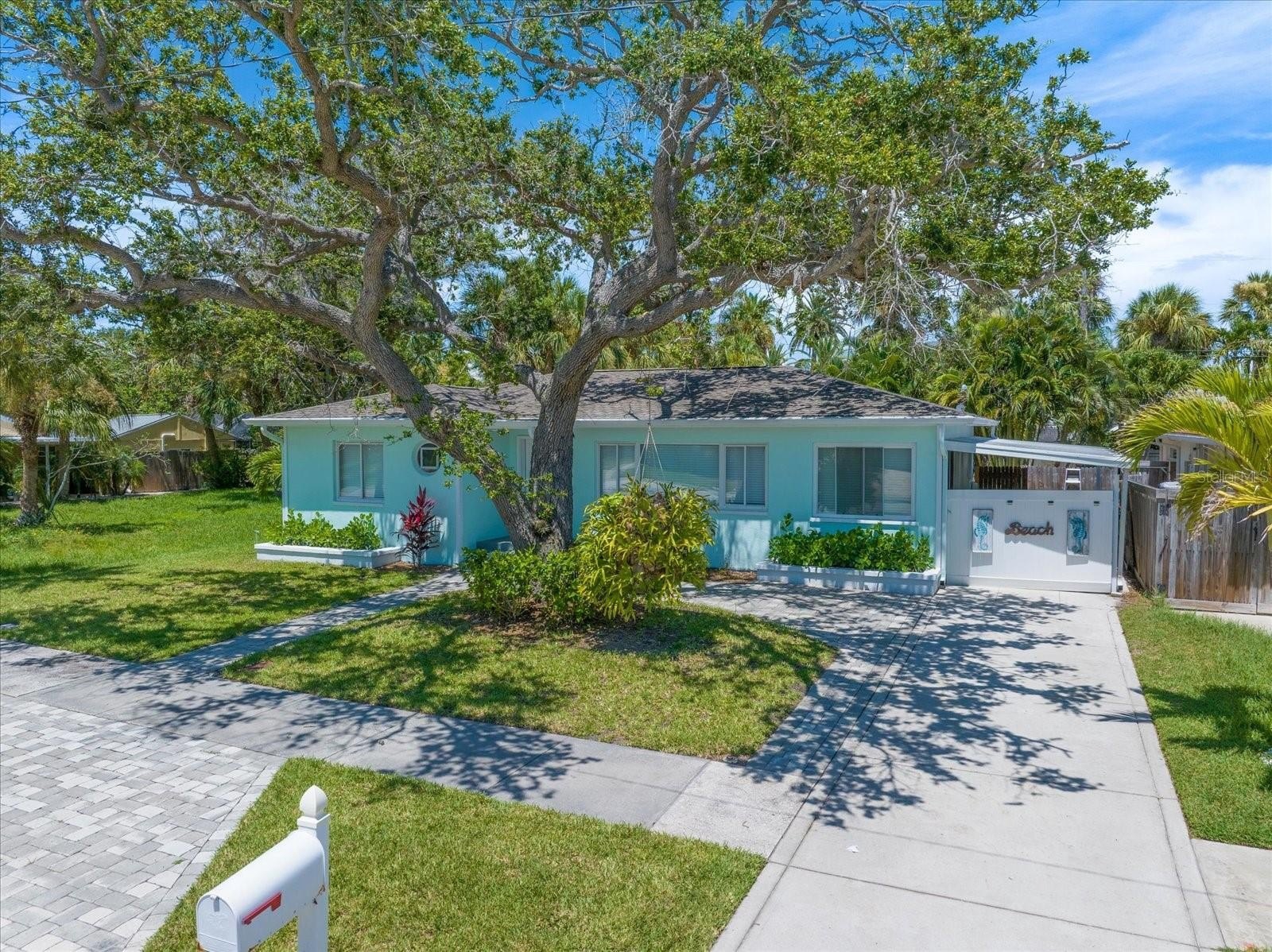 Located on Clearwater Beach’s desirable North End, this block-construction home has been fully remediated and thoughtfully renovated, offering flexible options as a year-round residence or an income-producing rental. The exterior features new paint, tropical landscaping, and sidewalk-lined streets ideal for walking or biking to the beach, shops, and restaurants. Inside, you’ll find light-filled living spaces with refinished hardwood floors and neutral finishes. The living room includes barn doors that open to a versatile bedroom or office.