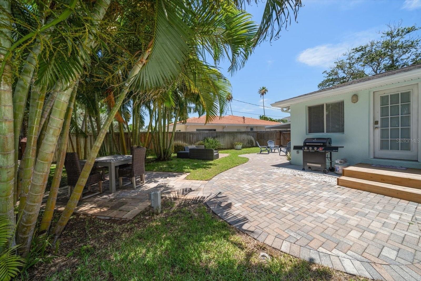 Step outside to a private, fenced backyard with paver walkways, multiple sitting areas, and an outdoor shower. Recent improvements—treated/replaced drywall, new electrical outlets, new vinyl flooring, and a tankless water heater—add peace of mind. Move-in ready and ideally located, this North Beach property is a rare opportunity for coastal living or investment.
