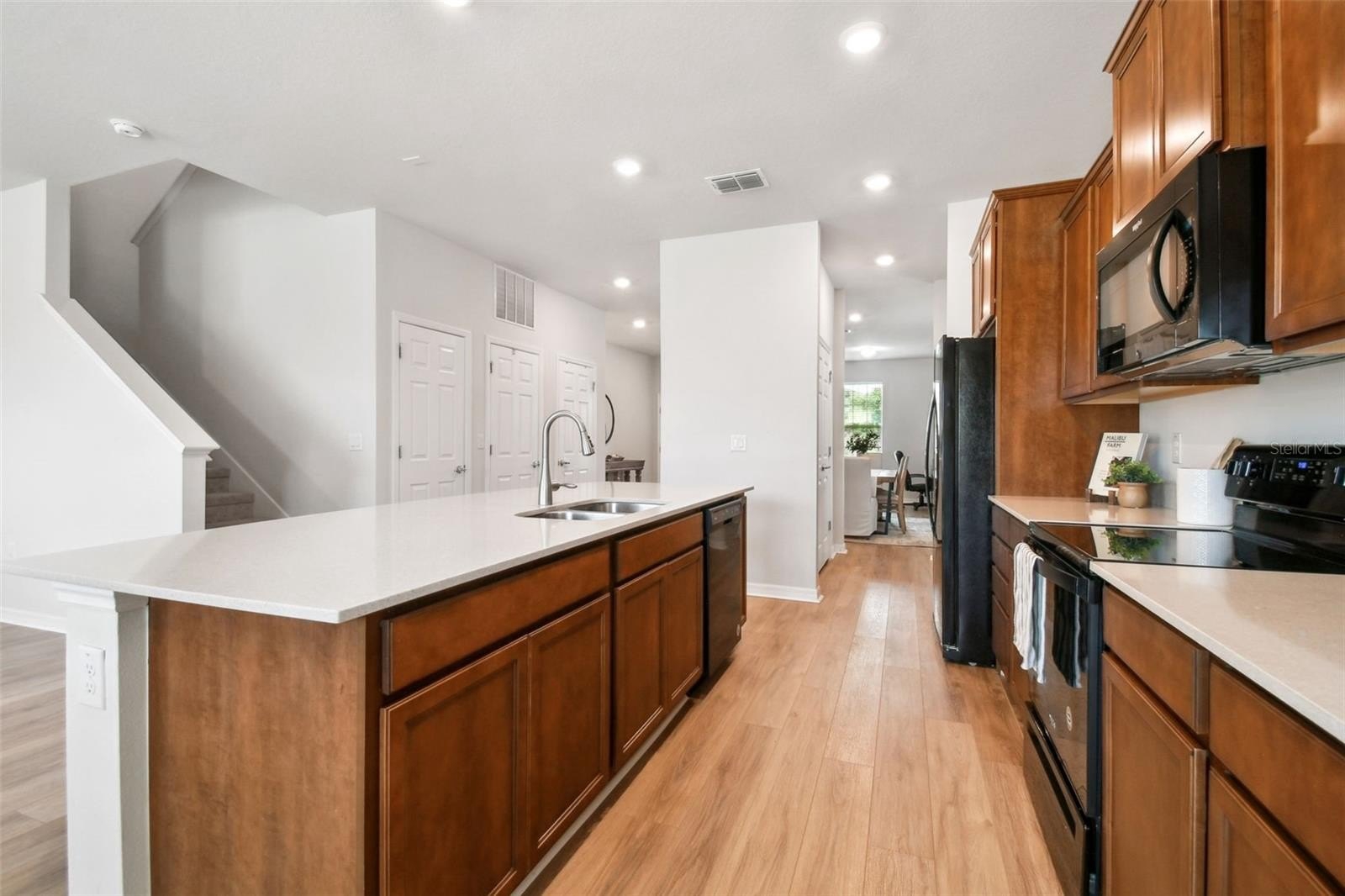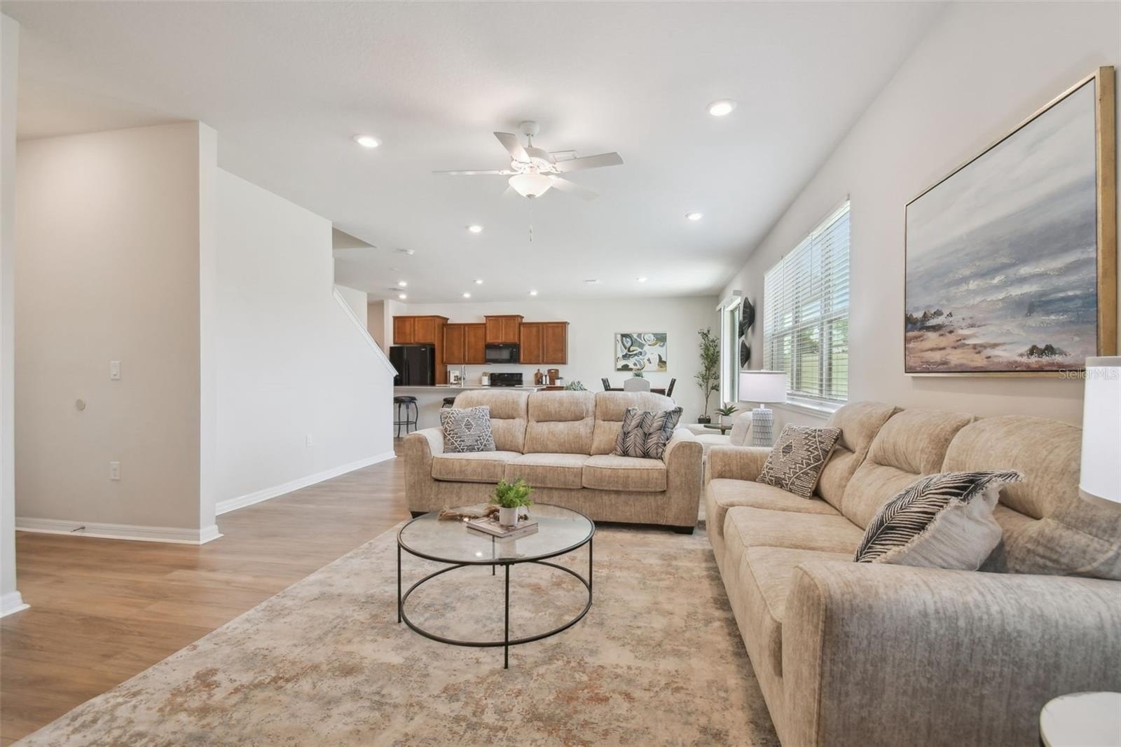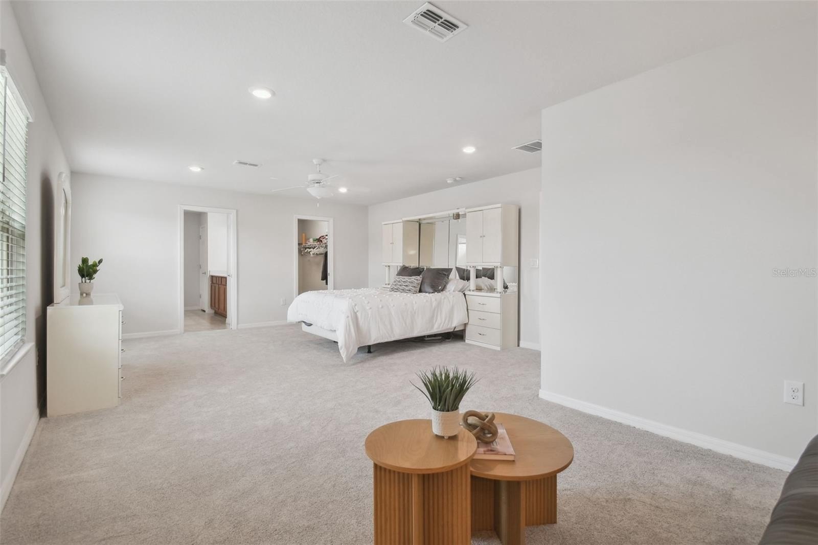 NEW LVP FLOORING and BRAND NEW CARPET UPSTAIRS-Welcome to 30414 Caravelle Ln, a one-of-a-kind home in the highly desirable gated community of Wesbridge! Boasting over 3,200 square feet of living space, this thoughtfully designed floorplan is the only one of its kind in Wesbridge, offering exceptional versatility and comfort for today’s lifestyle. Step inside to find NEW luxury vinyl plank flooring on the main level and brand new carpet upstairs. The spacious layout includes multiple living areas downstairs, perfect for entertaining or everyday living, plus a large loft upstairs that provides additional space for a game room, home office, or media area. The primary suite is truly a retreat, generously sized with a private sitting area ideal for reading, relaxing, or creating a quiet workspace. The heart of the home, the kitchen, features quartz countertops, abundant cabinetry, and a huge walk-in pantry with a nearby nook ideal for a custom butler’s pantry setup. Storage is plentiful throughout the home, with options on both floors, and the dual HVAC systems ensure year-round comfort. Outside, enjoy the landscaped border, and with the simple addition of gates, the backyard will be fully fenced in, ready for pets, play, or privacy. Wesbridge residents enjoy resort-style amenities including a sparkling pool, playground, and other amenities, all just steps from the community's zoned schools. If you're looking for space, style, and location, this home checks every box. Don’t miss your chance to own this rare gem in Wesbridge!