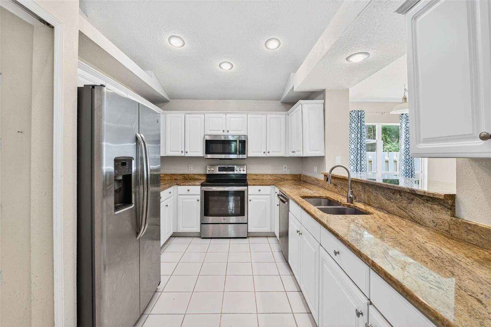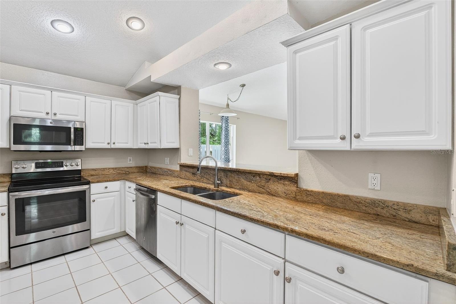 The roof was replaced in 2016, the water heater installed in 2017, and the stainless steel appliances also date to 2017. The home features granite countertops in the kitchen, a breakfast bar, and a sunny breakfast nook overlooking the backyard. The master suite includes double-door entry, vaulted ceilings, a custom walk-in closet, and an ensuite bathroom with dual sinks, a garden tub, and a separate shower.