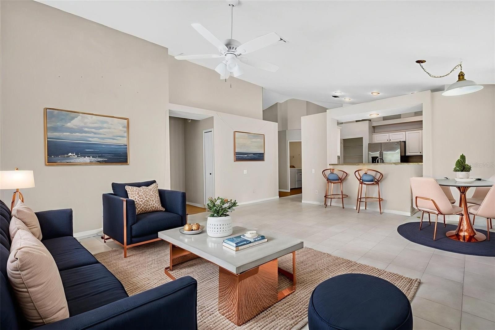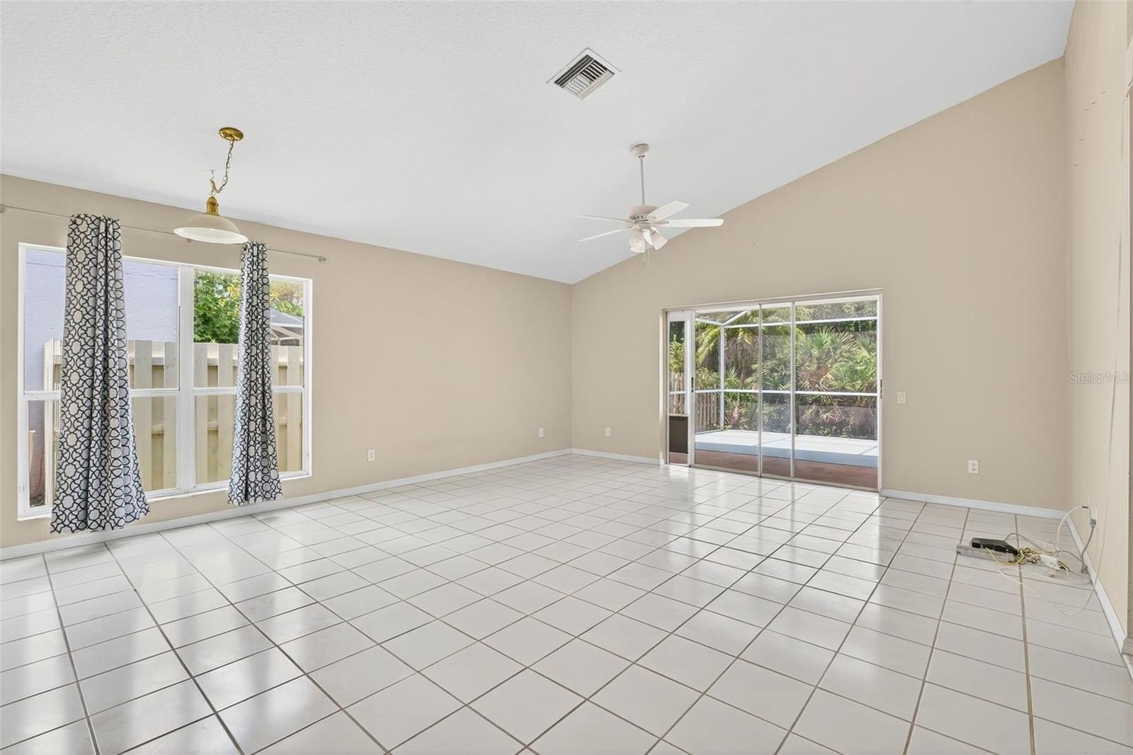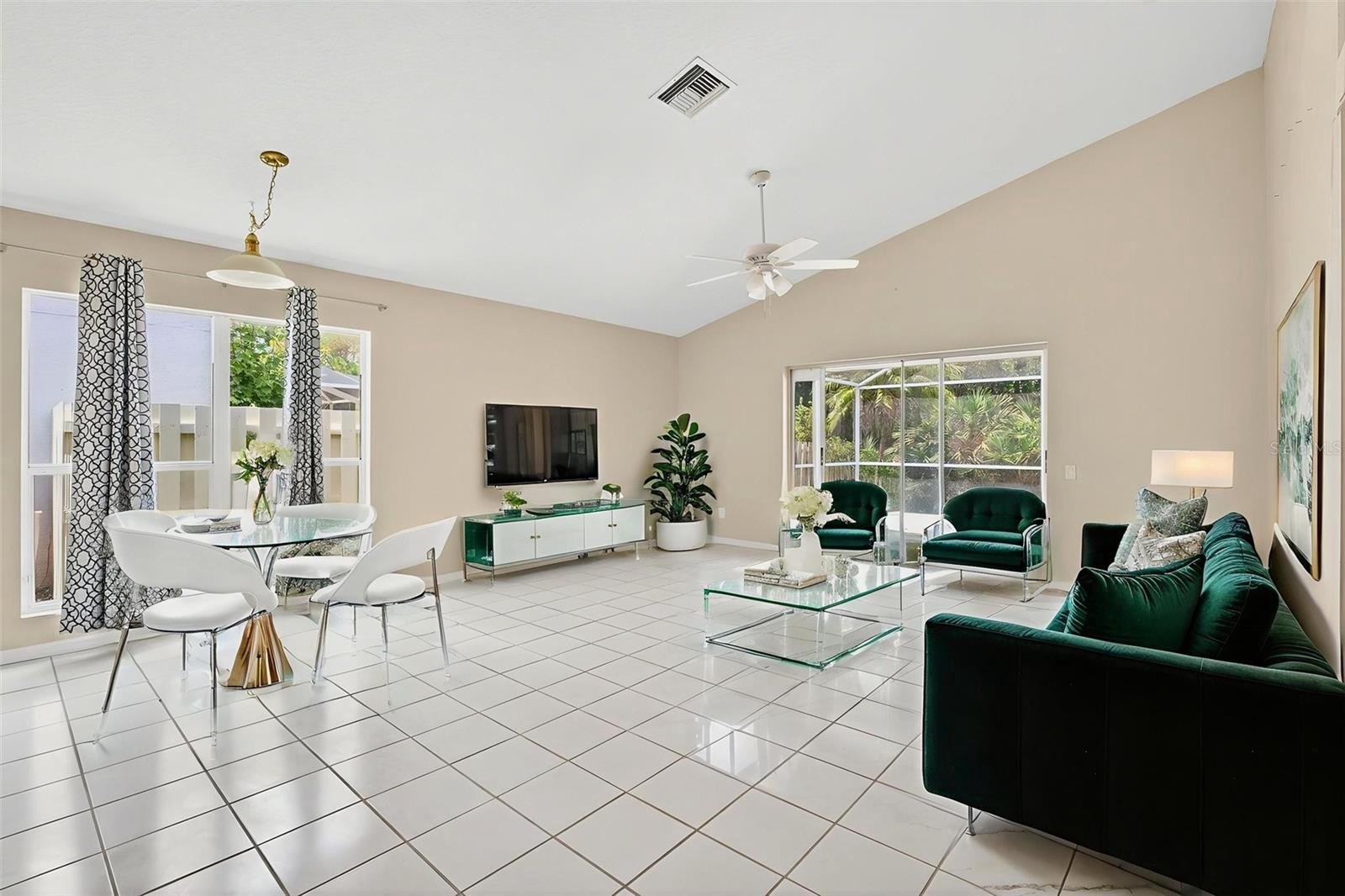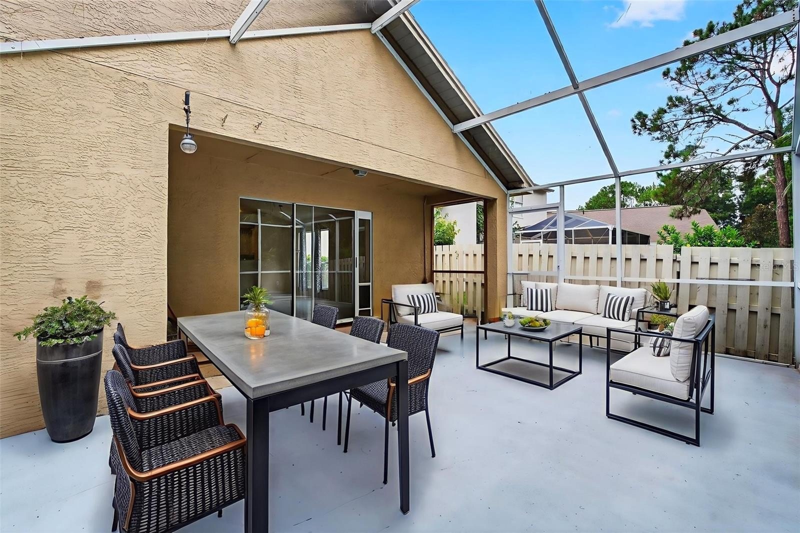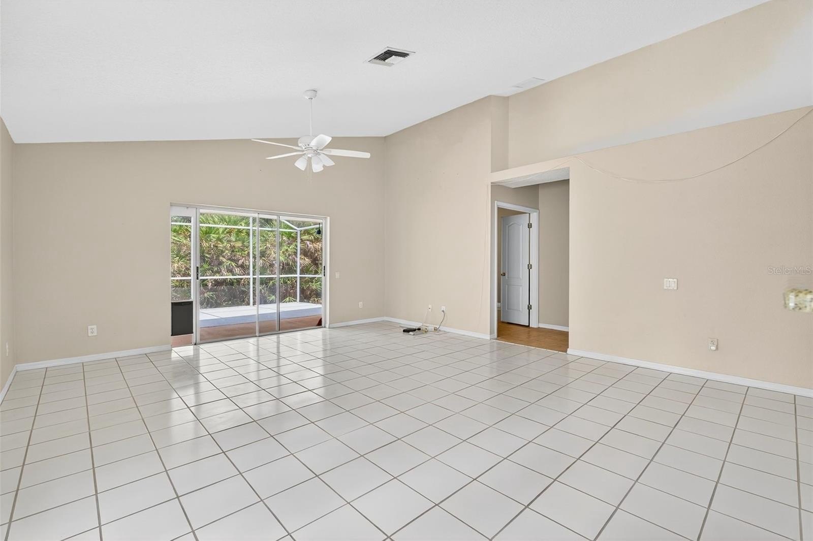 Sliding glass doors from the family room open to a large, covered patio and extended screen-enclosed lanai—perfect for relaxing or entertaining. Additional features include fresh exterior paint and great curb appeal.