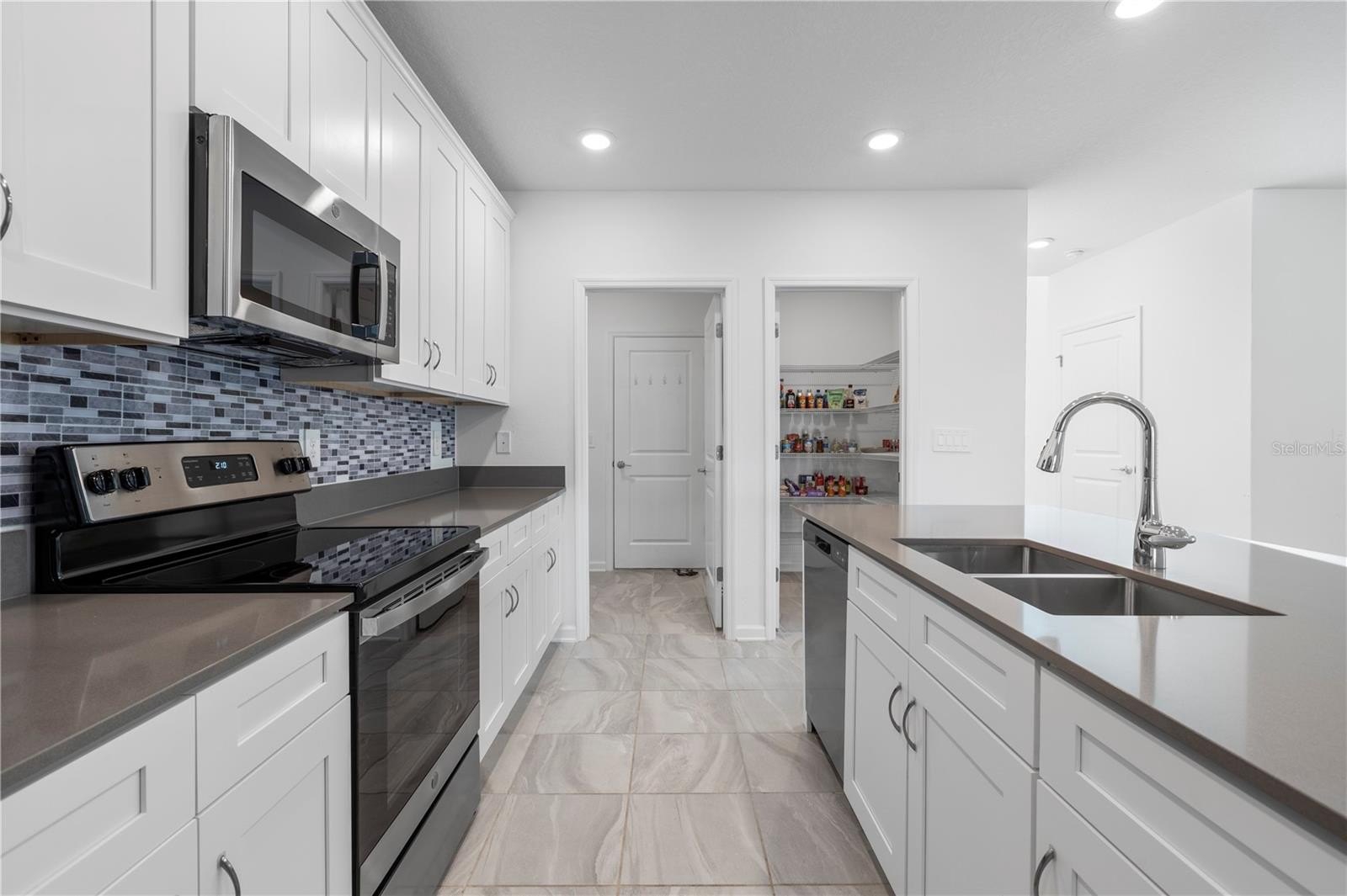 The kitchen features sleek countertops, stainless steel appliances, and ample cabinetry. Each of the five bedrooms is generously sized, allowing flexibility for guest rooms, home offices, or creative space.
