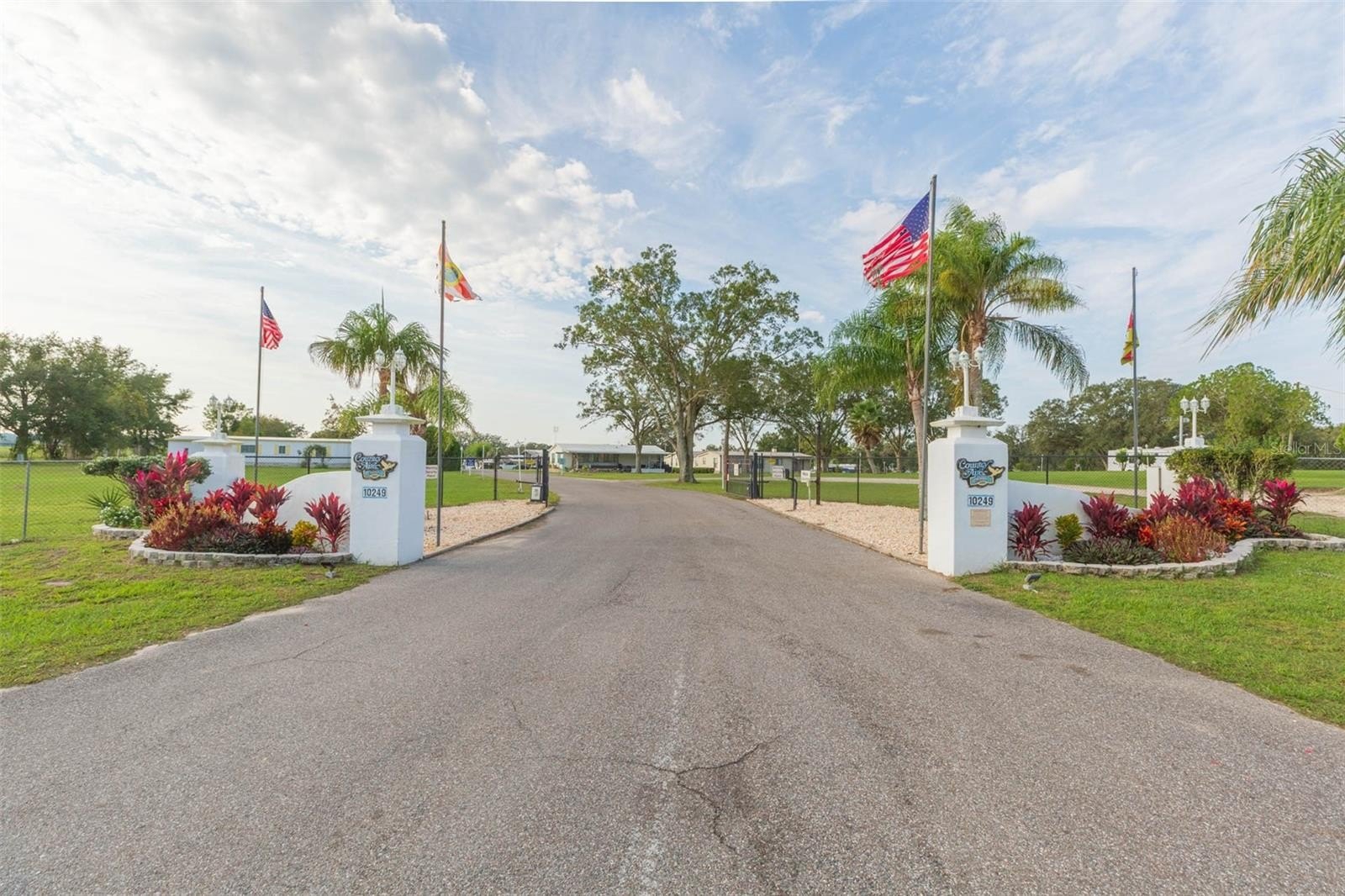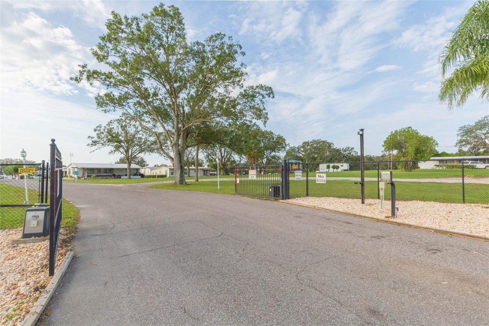 A PLATINUM home for your GOLDEN YEARS... Well maintained 2br/2ba HOMES OF MERIT doublewide mobile home in a quiet, gated 55+ active community. Lot is included. No lot rent, you own the lot Many extras are included with this home including a 12' x 21' workshop, and an 8' x 16' screen enclosed lanai that is a perfect space to enjoy the mild Florida climate. Open floor plan features an island kitchen with island cooktop and built in wall oven plus island seating area making it great for entertaining friends. Energy efficient features include new metal roof installed 2020, a tankless water heater and double pane windows. The spacious master bath features a large garden tub with separate walk in shower. Practice your favorite craft or hobby in the workshop which includes a window air conditioner. Other features included are gutters with downspouts and a water softener system. The gated community is conveniently located minutes from Dade City, Zephyrhills, or Lakeland. Community amenities include clubhouse, shuffleboard, and heated pool. Community also features private sewer, private water, and private streets. Monthly HOA fee INCLUDES WATER, SEWER, AND TRASH SERVICE. Only 53 miles to Orlando attractions and 48 miles to Tampa International airport.