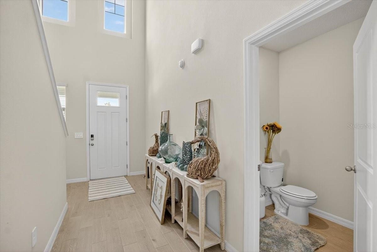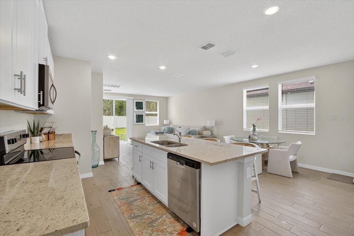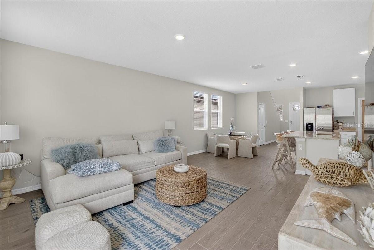 The spacious open floor plan seamlessly combines living, dining, and kitchen areas, creating the perfect space for family gatherings and entertaining guests. The first-floor features durable ceramic tile flooring, providing both elegance and easy maintenance. Abundant natural light floods the interior through large windows, creating a warm and inviting atmosphere throughout the day.