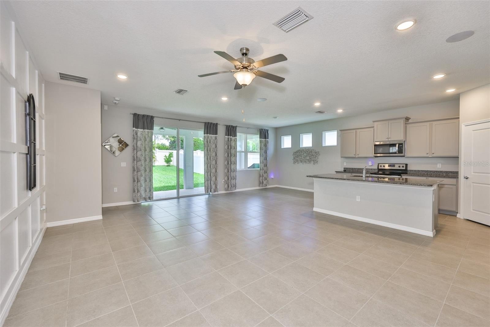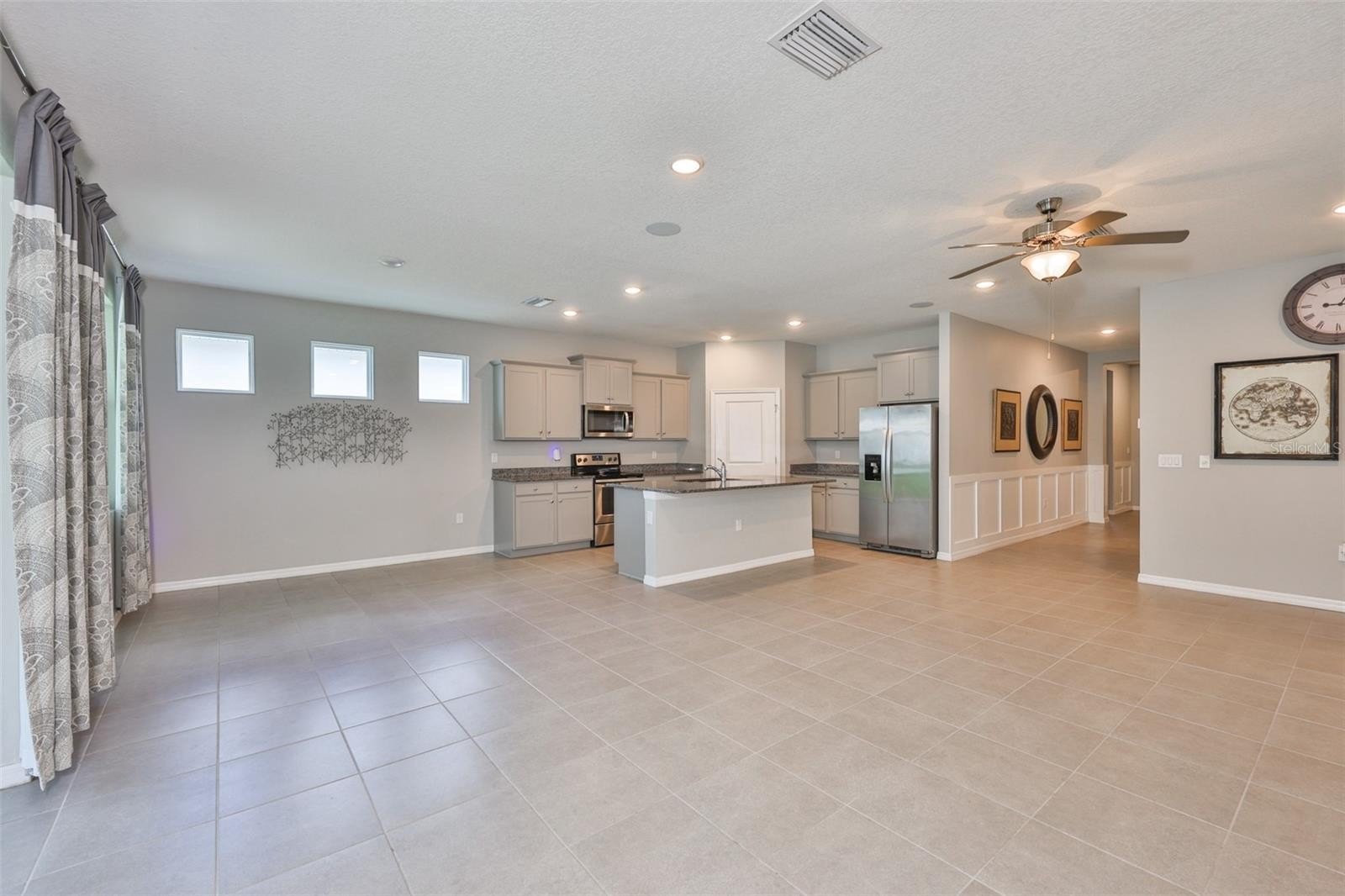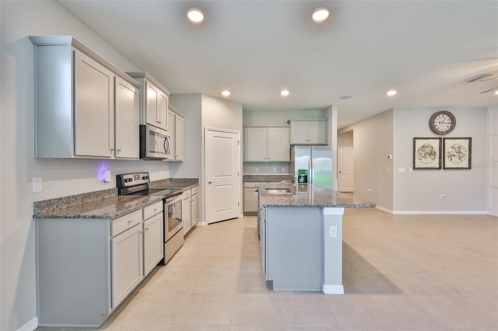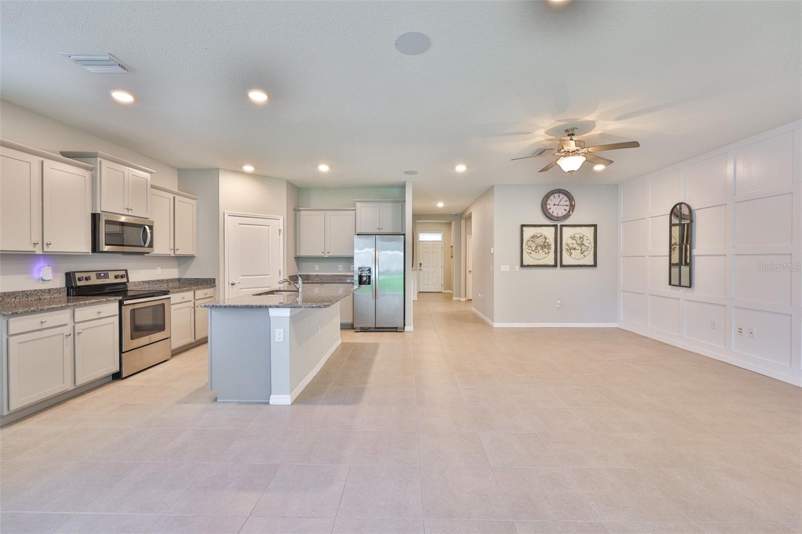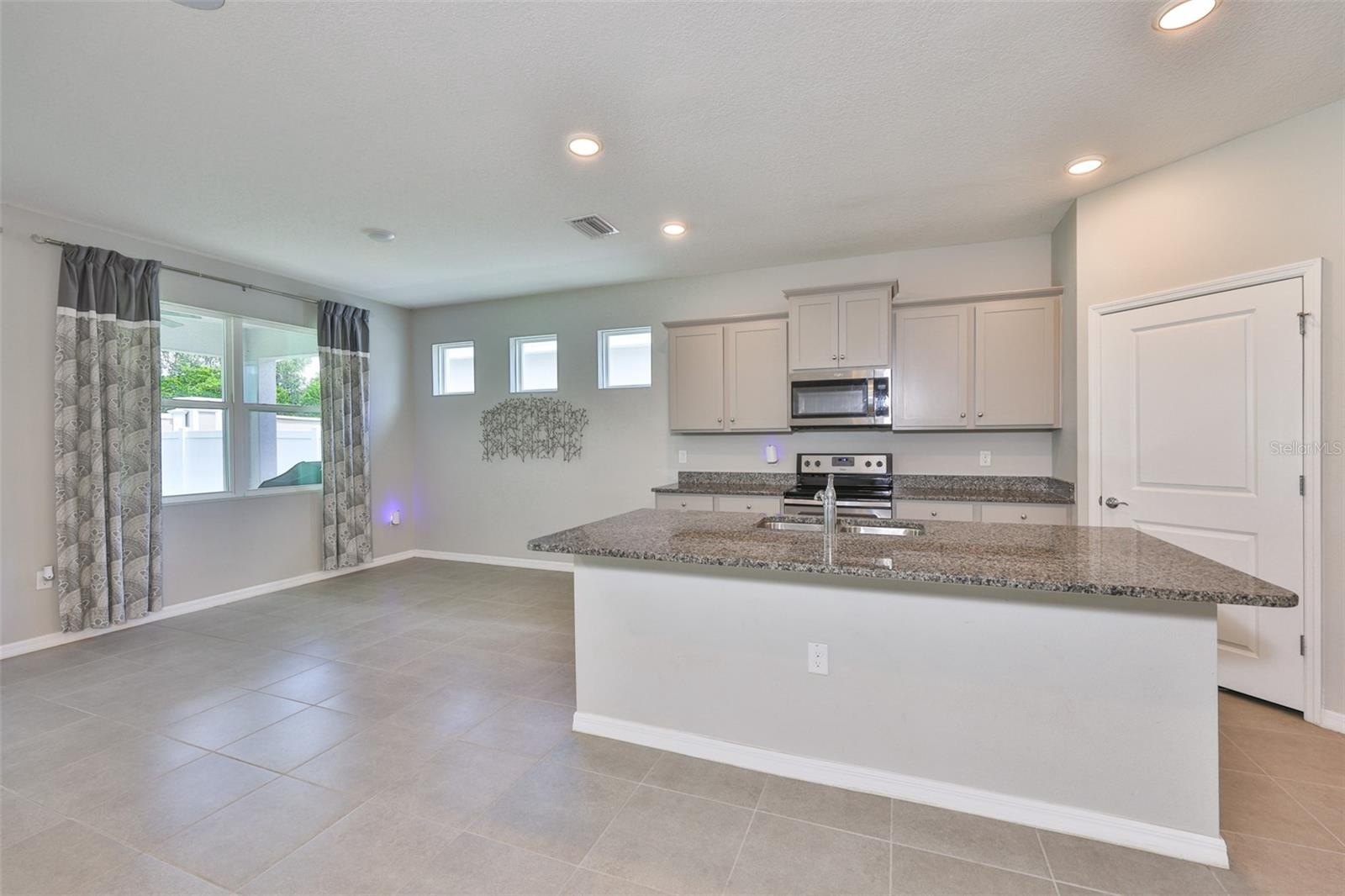 The open-concept kitchen is designed with entertaining in mind, offering plenty of counter space and a clear view into the spacious living room. Whether you're hosting friends or enjoying a quiet night in, the layout is both functional and inviting.