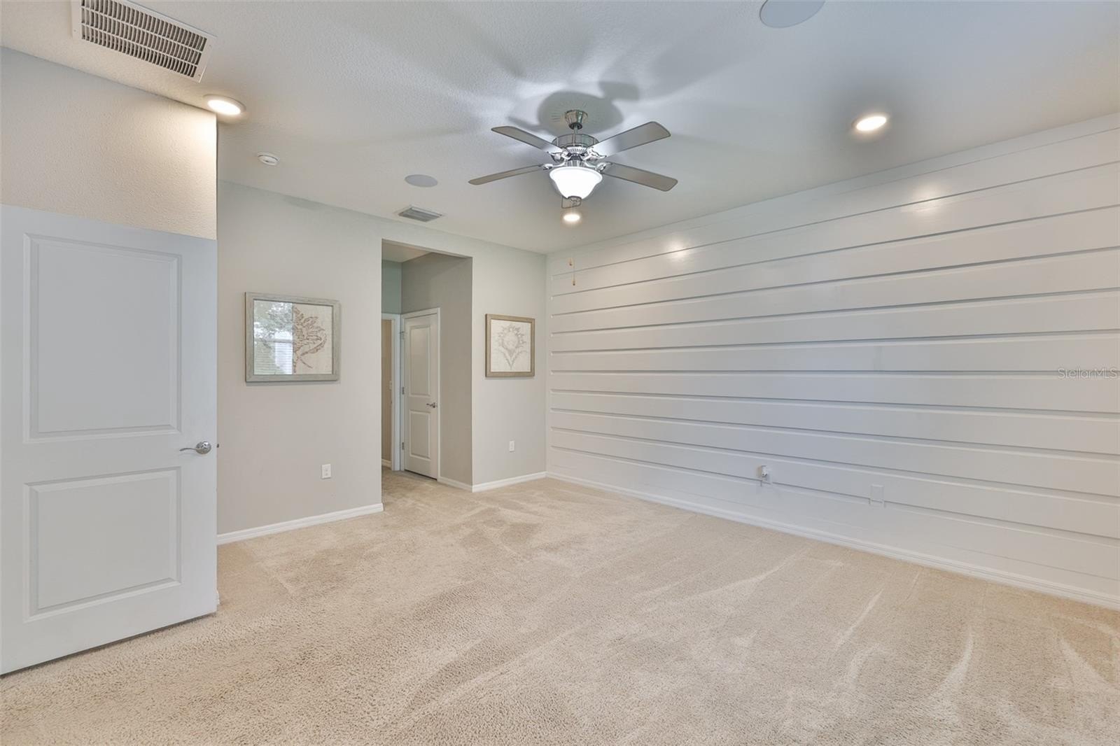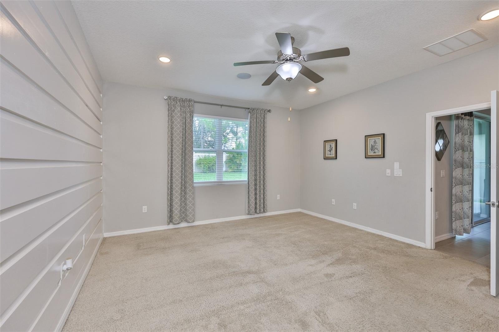 The garage, previously used as part of the model home, is AC ready with existing ductwork, pre-wired for a TV, and includes built-in cabinets—making it a perfect space for a home gym, workshop, or bonus entertainment area.