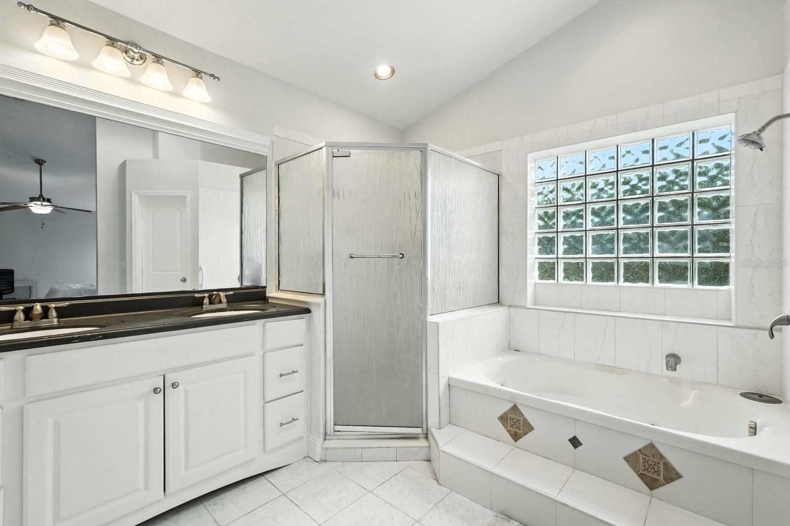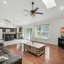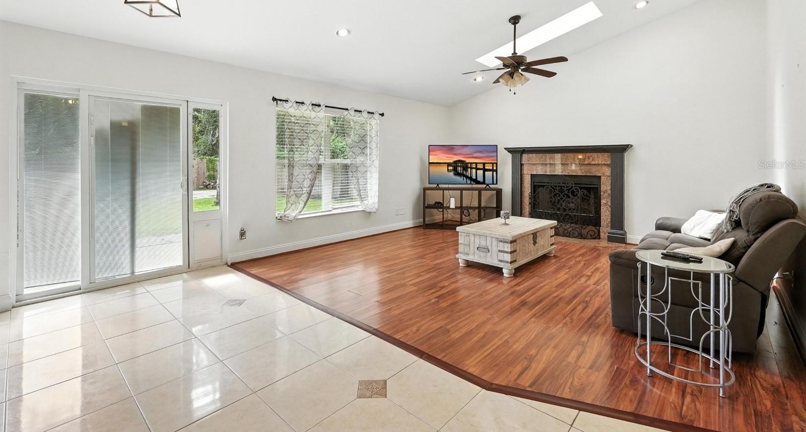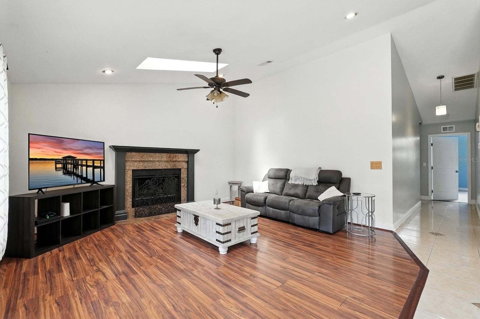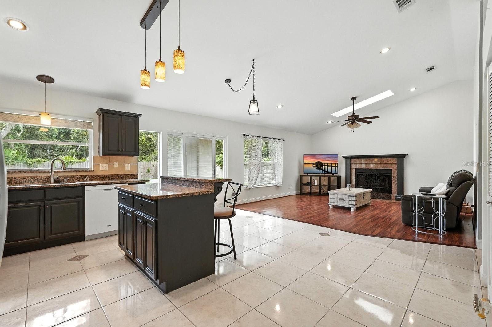This spacious home features a functional split floor plan with two separate living areas, offering the perfect setup for a home office, playroom, or additional entertaining space. The primary suite includes a walk-in closet, dual vanities, a separate shower, and a relaxing jetted tub. The open-concept kitchen connects seamlessly to the main living space, making it ideal for both entertaining and everyday living. A cozy wood-burning fireplace adds character to the family room, which overlooks the oversized backyard.