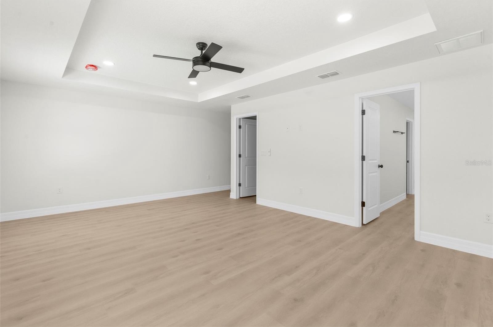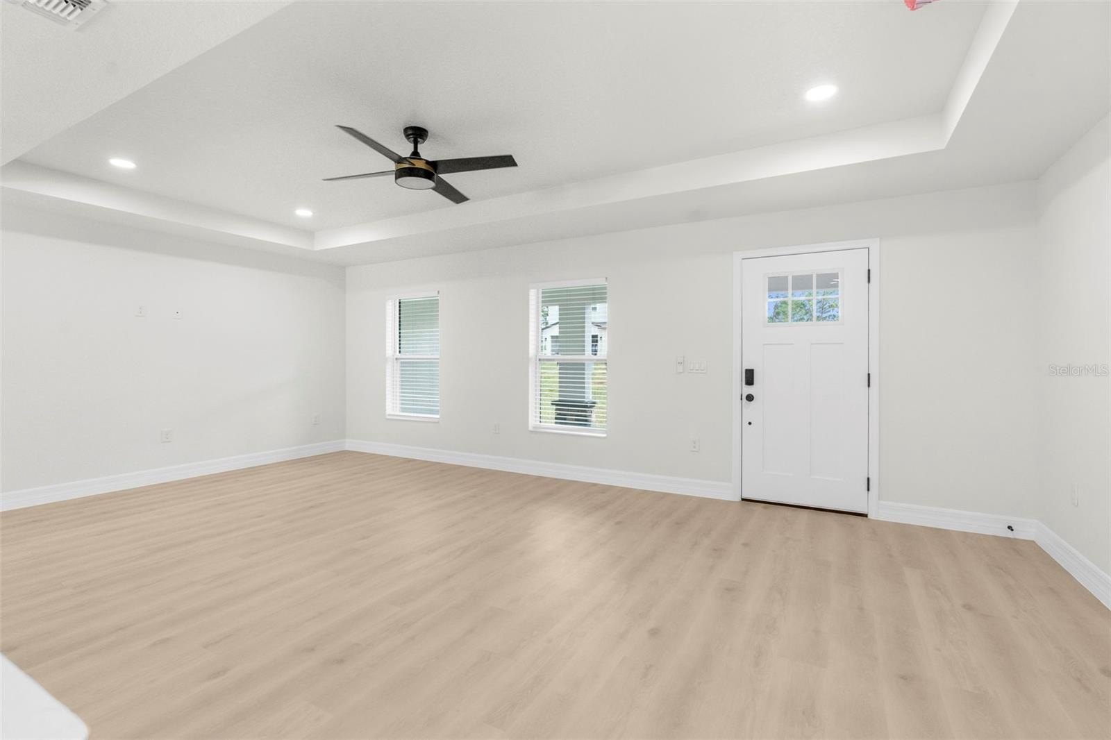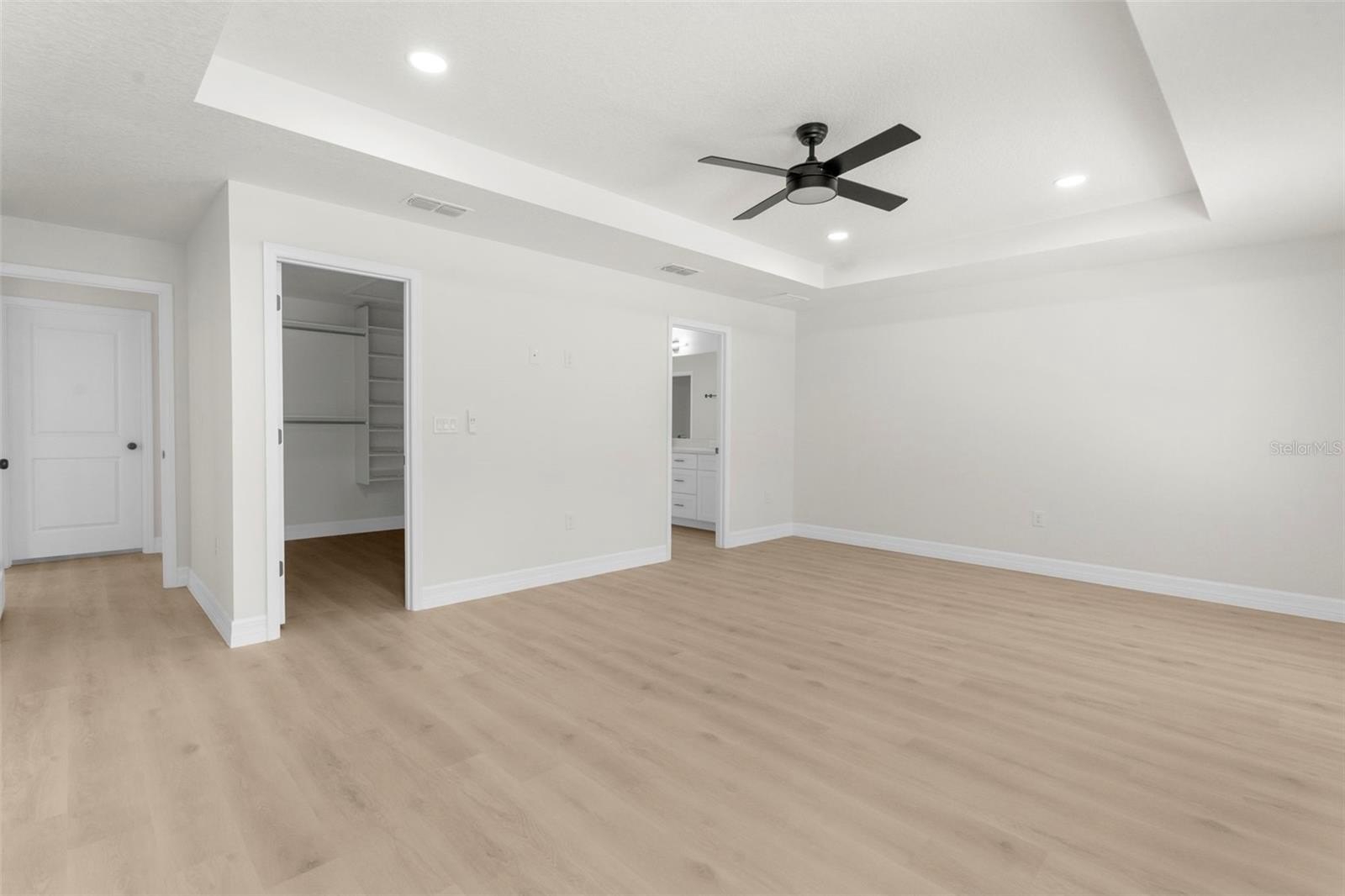 Showcasing designer details throughout, including soaring custom tray ceilings, luxury vinyl plank flooring with zero transitions, a chef’s dream kitchen with custom soft-close cabinetry, quartz countertops carried throughout the home, upgraded stainless steel GE appliances, a fully finished garage with epoxy floors, and so much more—blending style with functionality. The spacious master suite offers a spa-like retreat with a soaking tub, oversized walk-in shower, and an ENORMOUS custom closet system designed to impress.