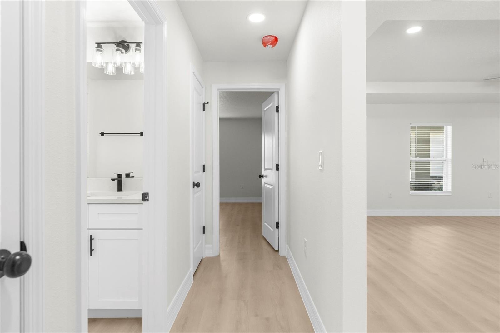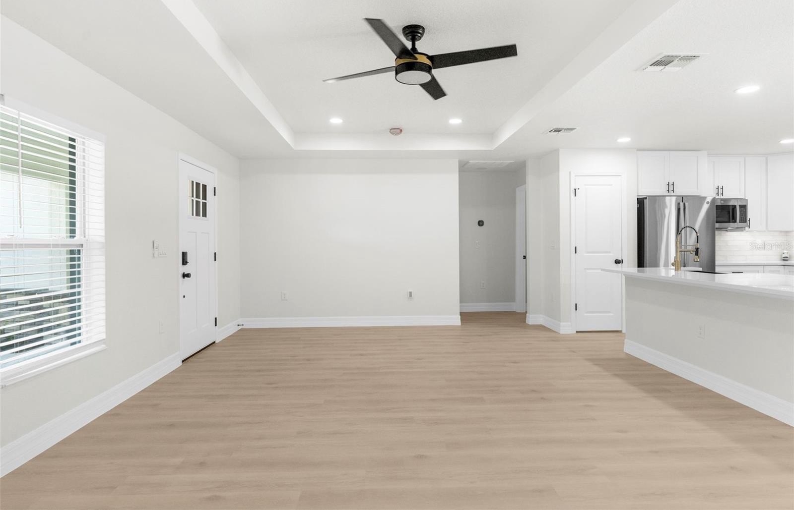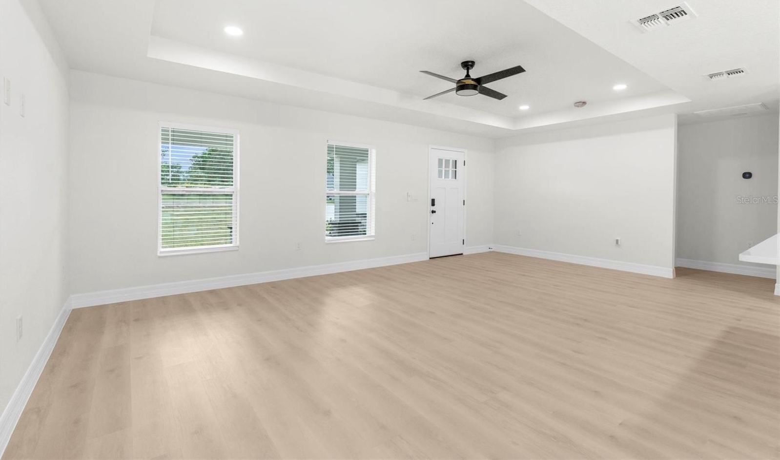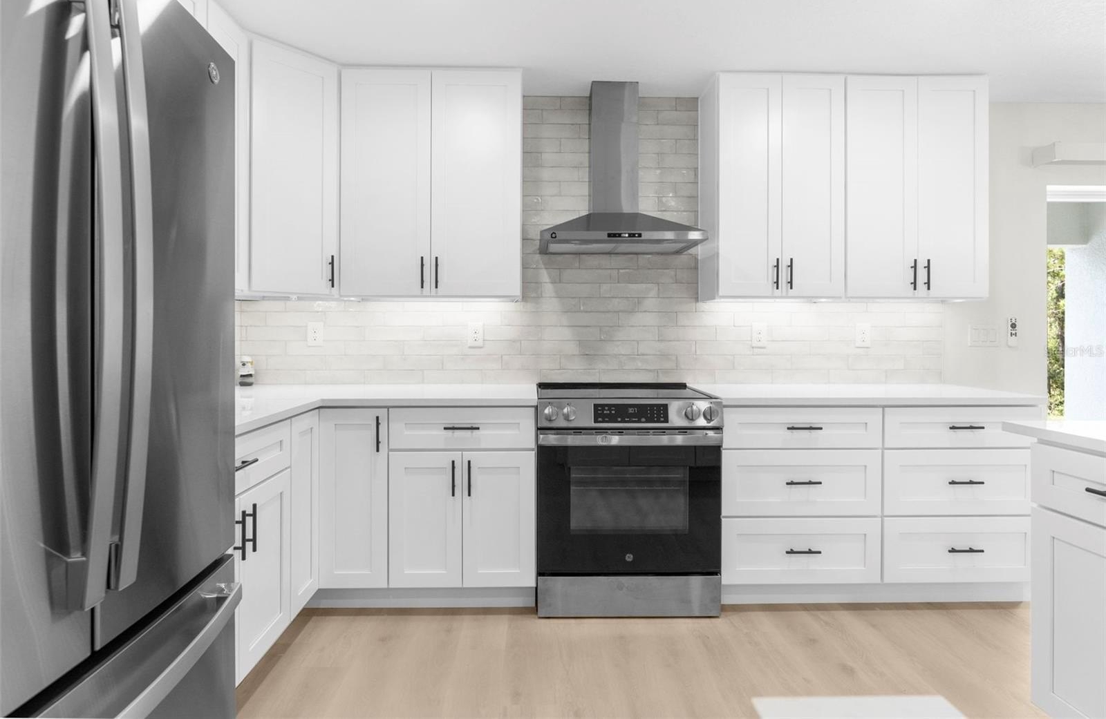 Showcasing designer details throughout, including soaring custom tray ceilings, luxury vinyl plank flooring with zero transitions, a chef’s dream kitchen with custom soft-close cabinetry, quartz countertops carried throughout the home, upgraded stainless steel GE appliances, a fully finished garage with epoxy floors, and so much more—blending style with functionality. The spacious master suite offers a spa-like retreat with a soaking tub, oversized walk-in shower, and an ENORMOUS custom closet system designed to impress.