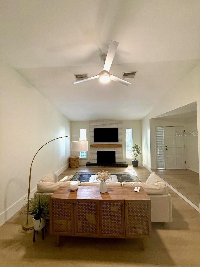 Inside, you’ll find a bright, open layout that’s perfect for both everyday living and entertaining. The newly remodeled kitchen features sleek finishes, generous counter space, and an inviting eat-in island that flows seamlessly into the main living areas. Brand-new flooring throughout ties the space together with a fresh, modern look.
