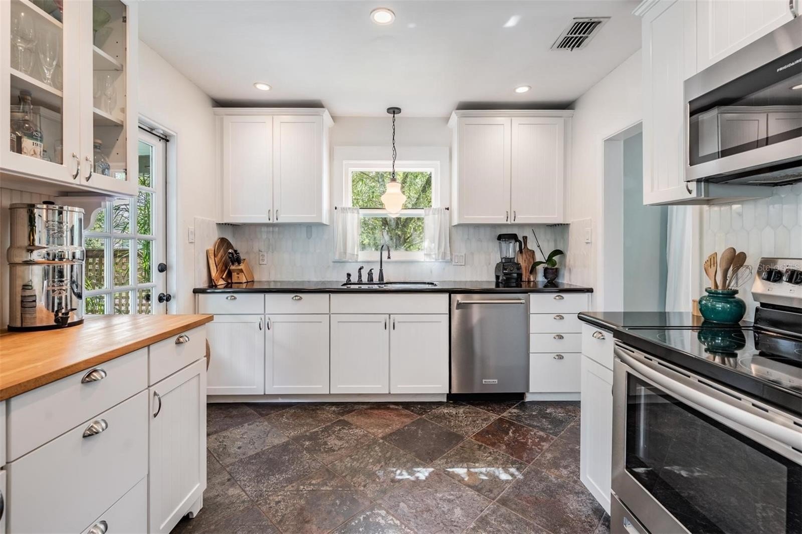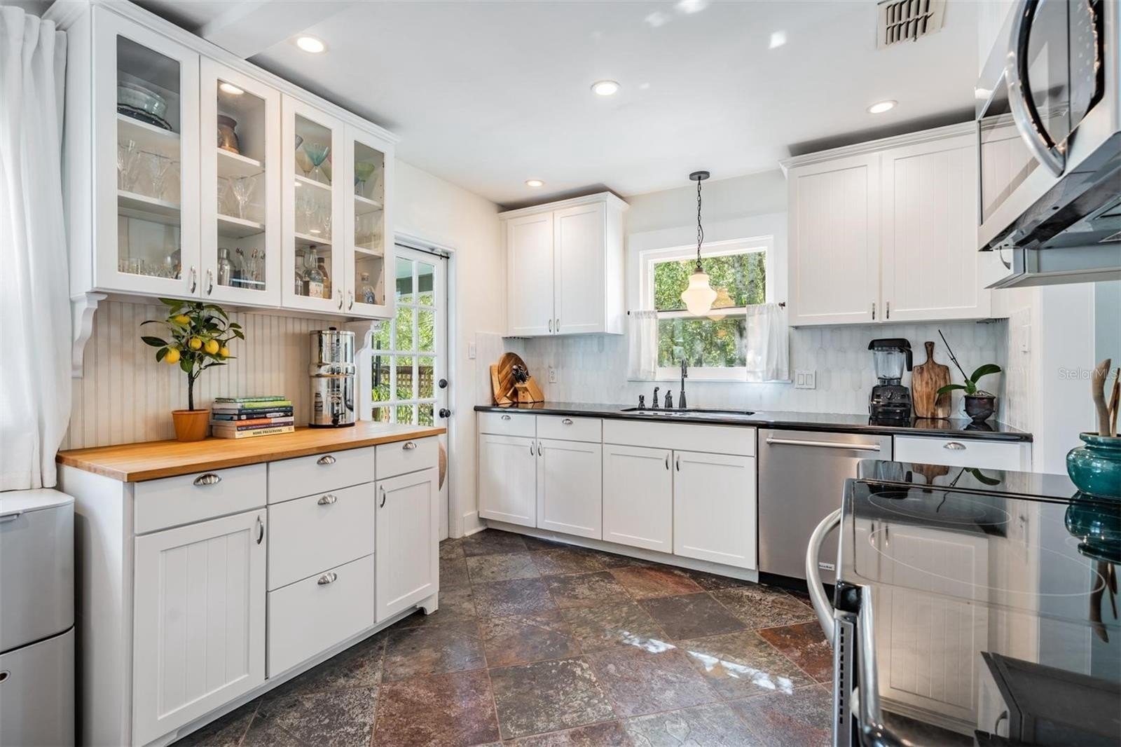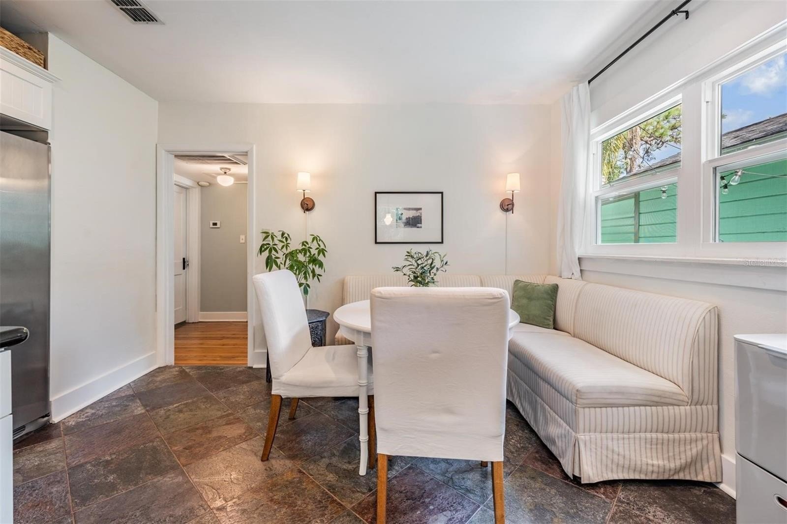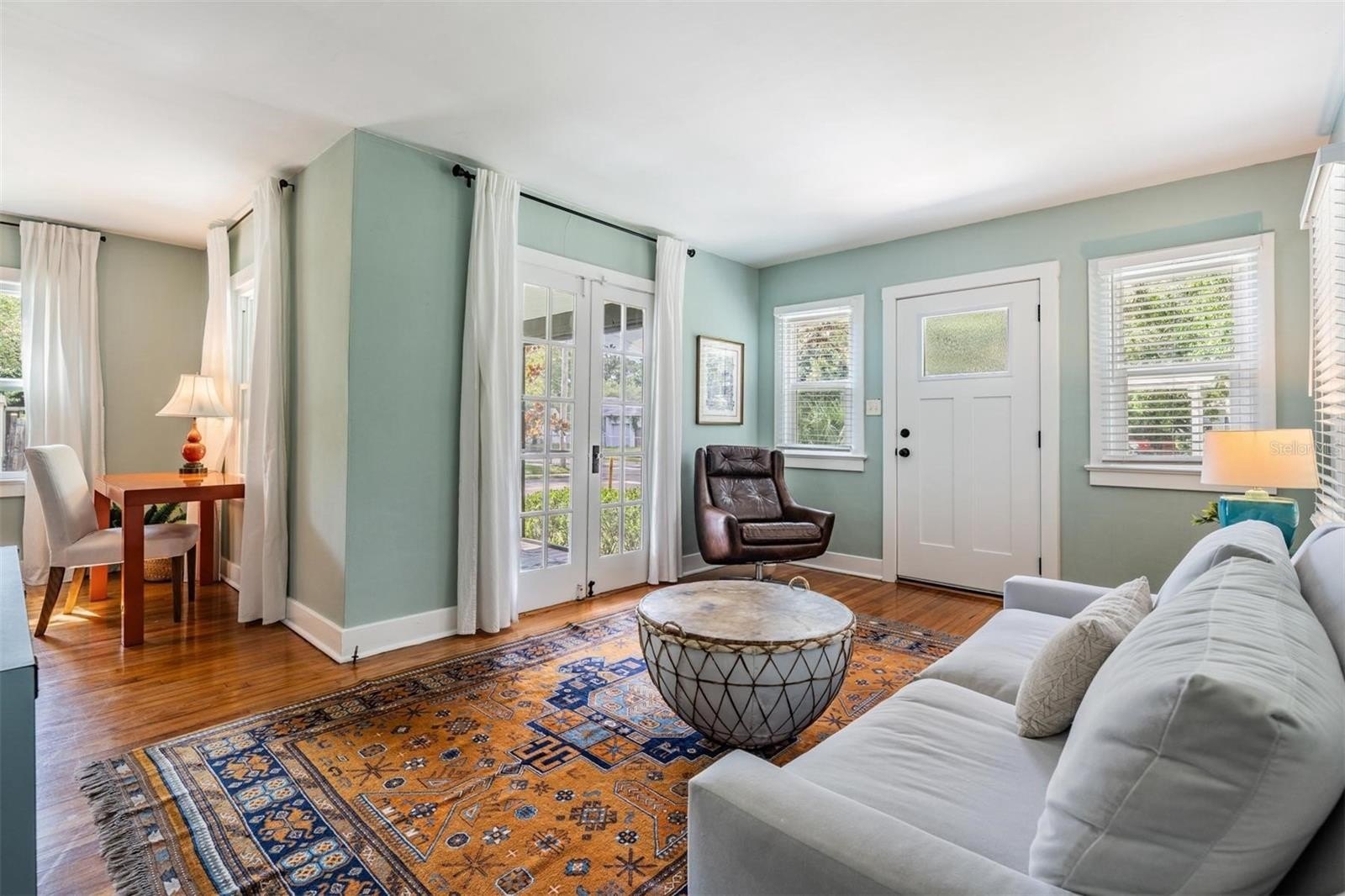 Inside, you'll appreciate the exceptionally efficient use of space where every square foot is maximized for comfort and flow, the high ceilings, original shiny hardwood floors and modern kitchen and bath. Step onto the inviting front porch, rebuilt in 2018 with durable composite decking and enjoy both front and side yard views. Inside is natural light-filled living space. The updated kitchen has contemporary style and functionality, featuring sleek stainless steel appliances (2021), stone countertops, eat-in area and tasteful finishes that complement the home's original period bungalow charm.