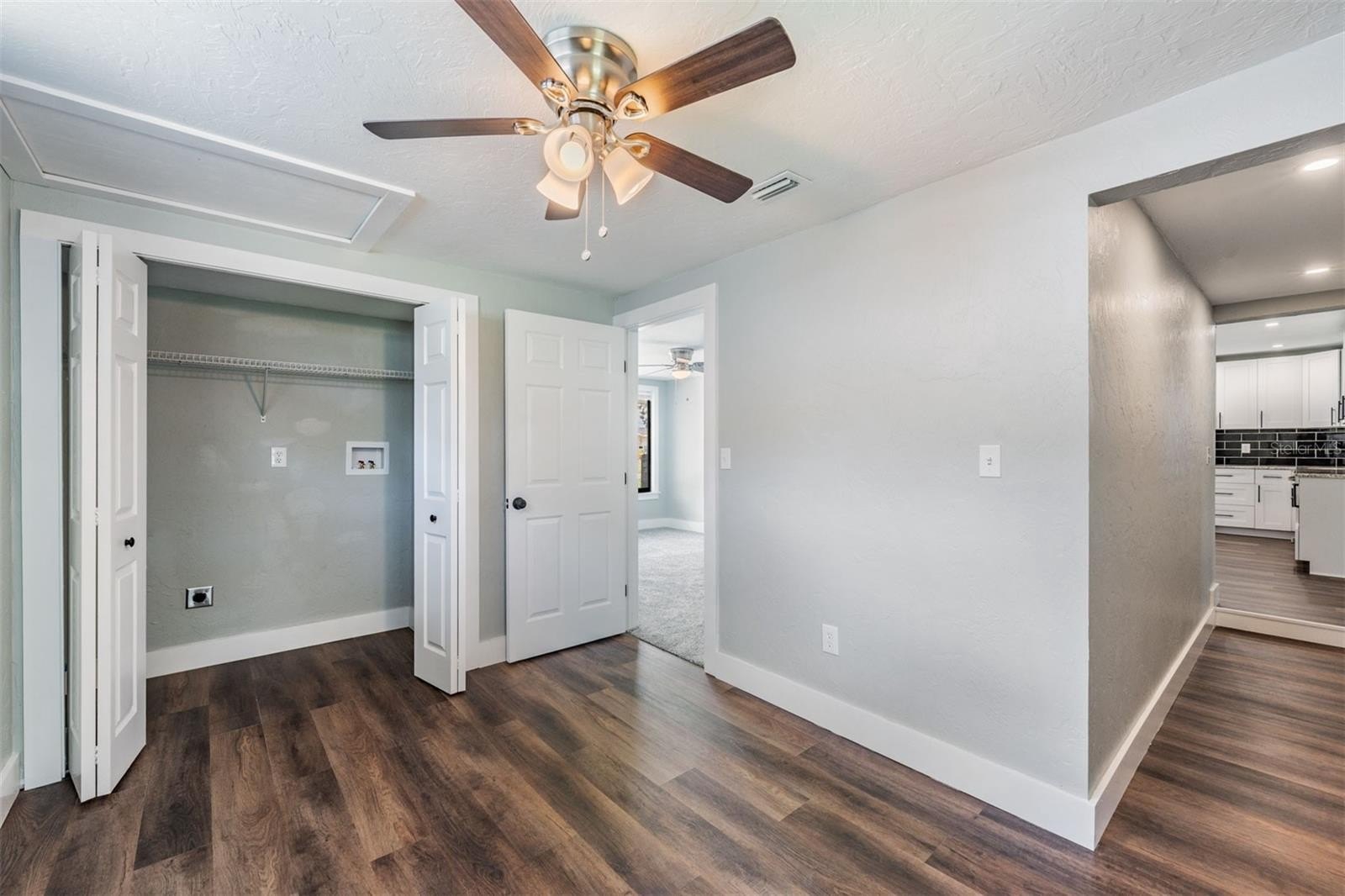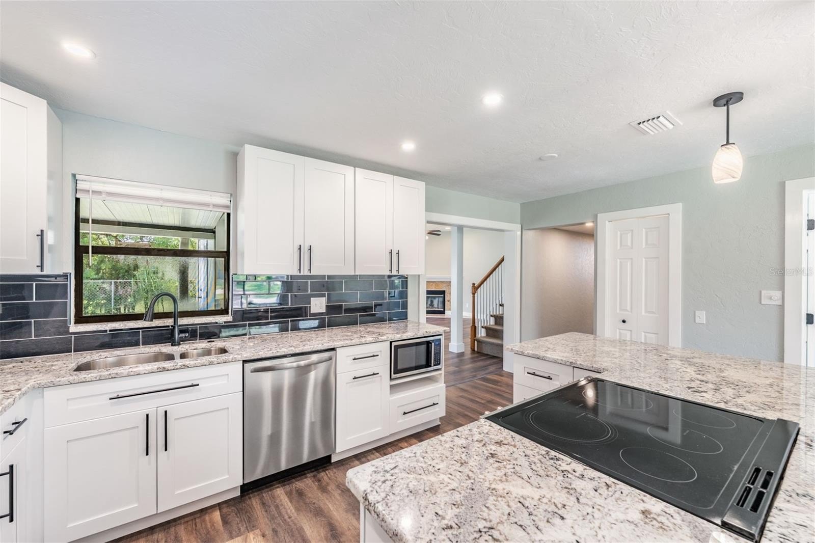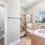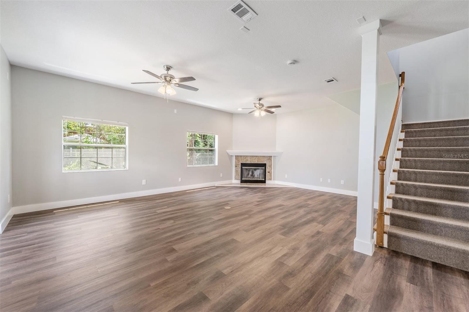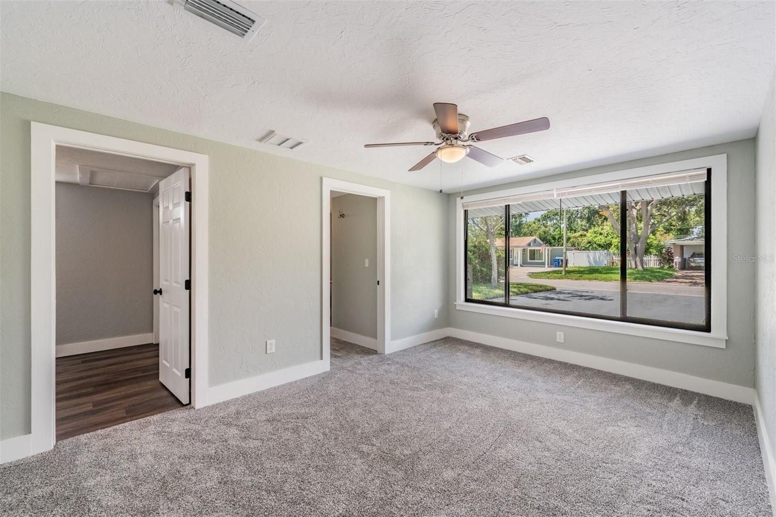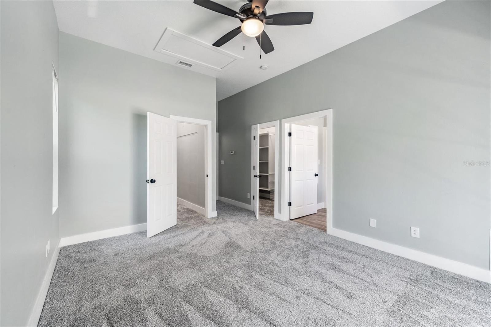 This multi-master bedroom home features luxury vinyl plank flooring throughout the common areas providing a sleek, cohesive look. Relax in the tremendously spacious living room with high ceilings, complete with a fireplace, the perfect space to unwind or entertain guests. The primary upstairs bedroom is spacious, featuring an ensuite bathroom with large shower, soaking bathtub, and huge his-and-her closets (hers is bigger) that include custom shelving. Additionally, there is another downstairs primary bedroom with ensuite bathroom on the first floor that may be accessed through the mudroom, if desired.