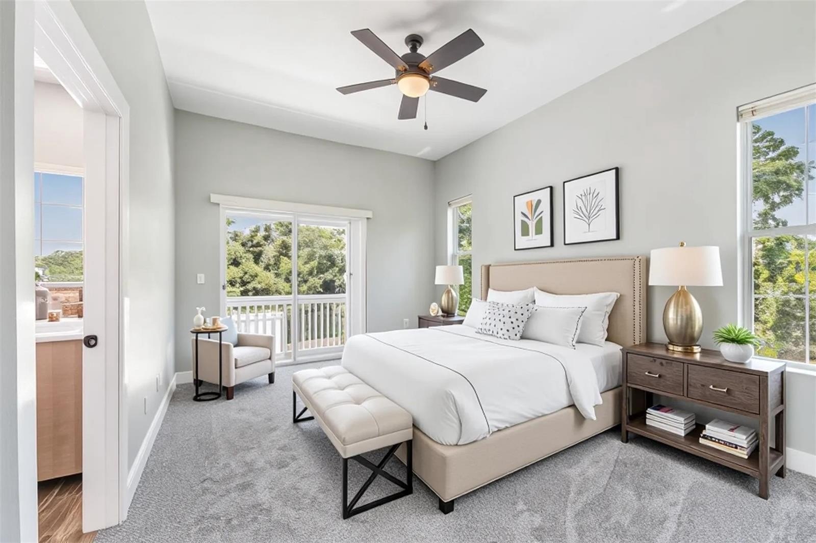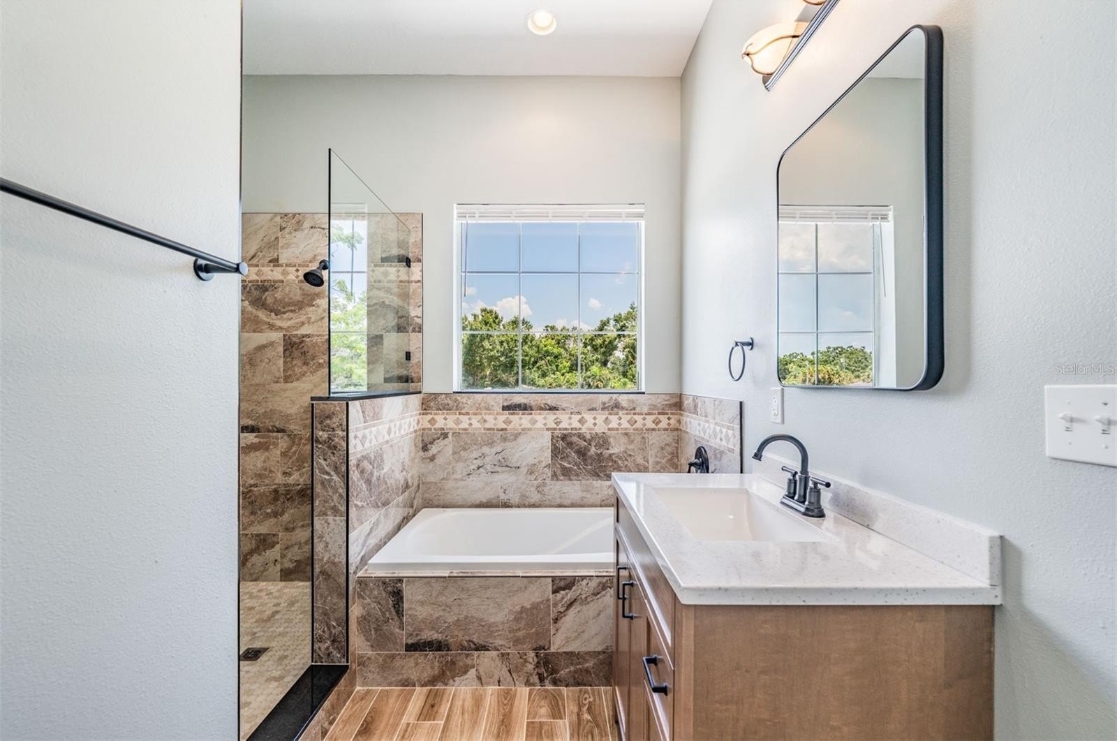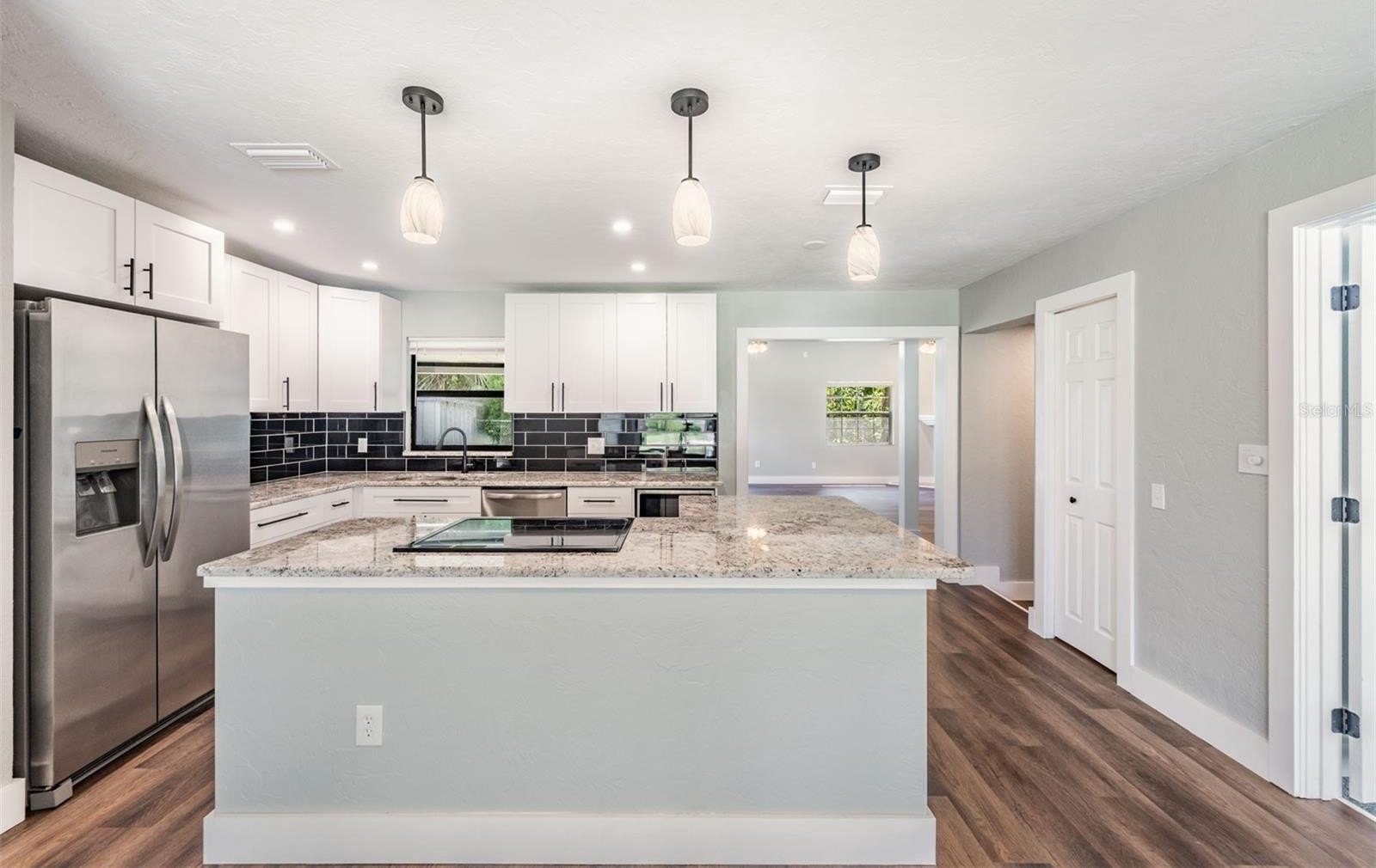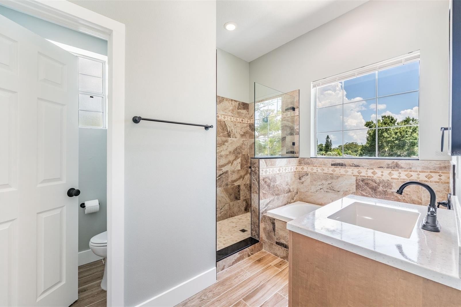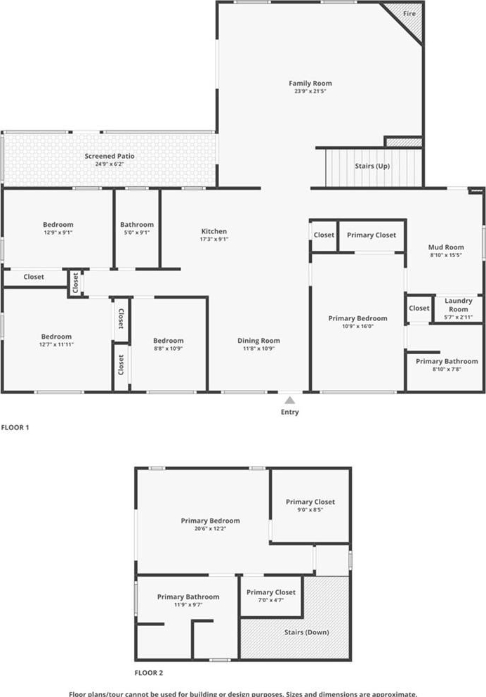 This multi-master bedroom home features luxury vinyl plank flooring throughout the common areas providing a sleek, cohesive look. Relax in the tremendously spacious living room with high ceilings, complete with a fireplace, the perfect space to unwind or entertain guests. The primary upstairs bedroom is spacious, featuring an ensuite bathroom with large shower, soaking bathtub, and huge his-and-her closets (hers is bigger) that include custom shelving. Additionally, there is another downstairs primary bedroom with ensuite bathroom on the first floor that may be accessed through the mudroom, if desired.