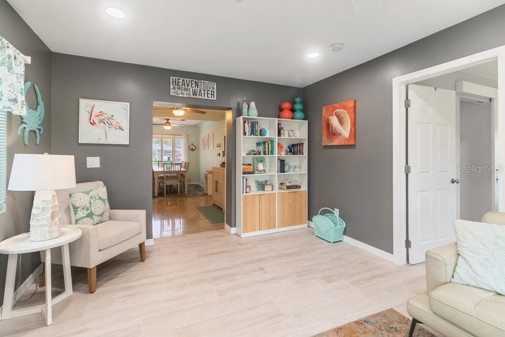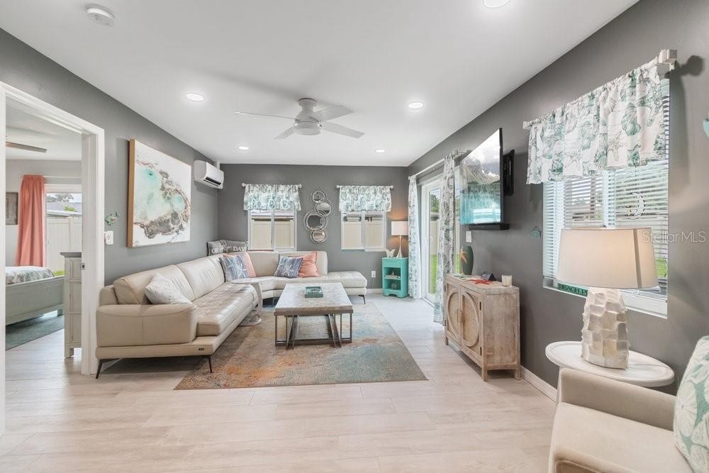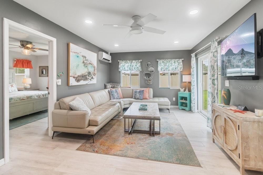 In 2021, a 650-square-foot addition was completed, expanding the home to nearly 1,700 square feet. This thoughtfully designed space features a spacious living room and a private primary suite with dual walk-in closets and a spa-inspired bathroom with dual sinks and a walk-in shower. Finished with ceramic tile flooring, the addition offers versatile use—ideal as a luxurious retreat or as an in-law suite for multigenerational living.