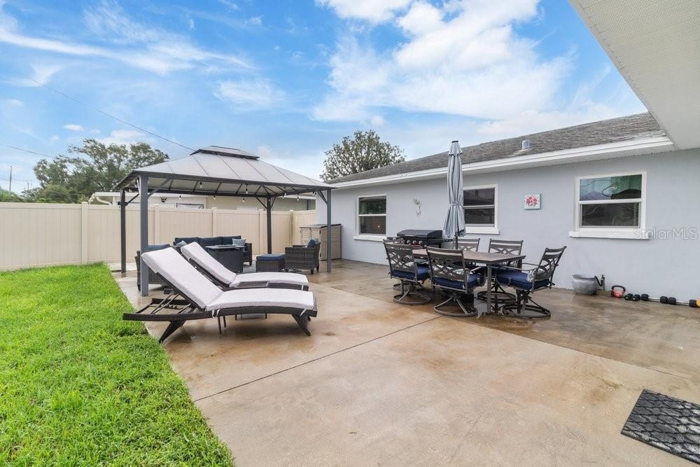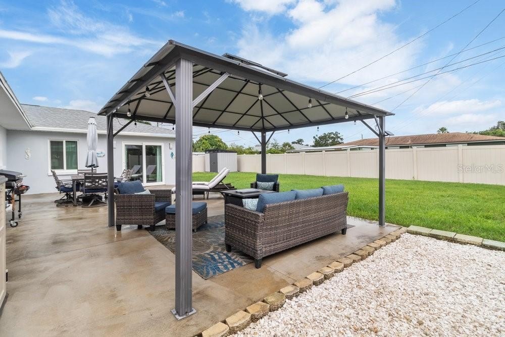 Outdoor living is just as inviting with a 20' x 30' extended patio and a gazebo overlooking the lush backyard, perfect for entertaining, barbecues, or enjoying Florida sunshine. Most furnishings are negotiable, allowing for an easy transition.