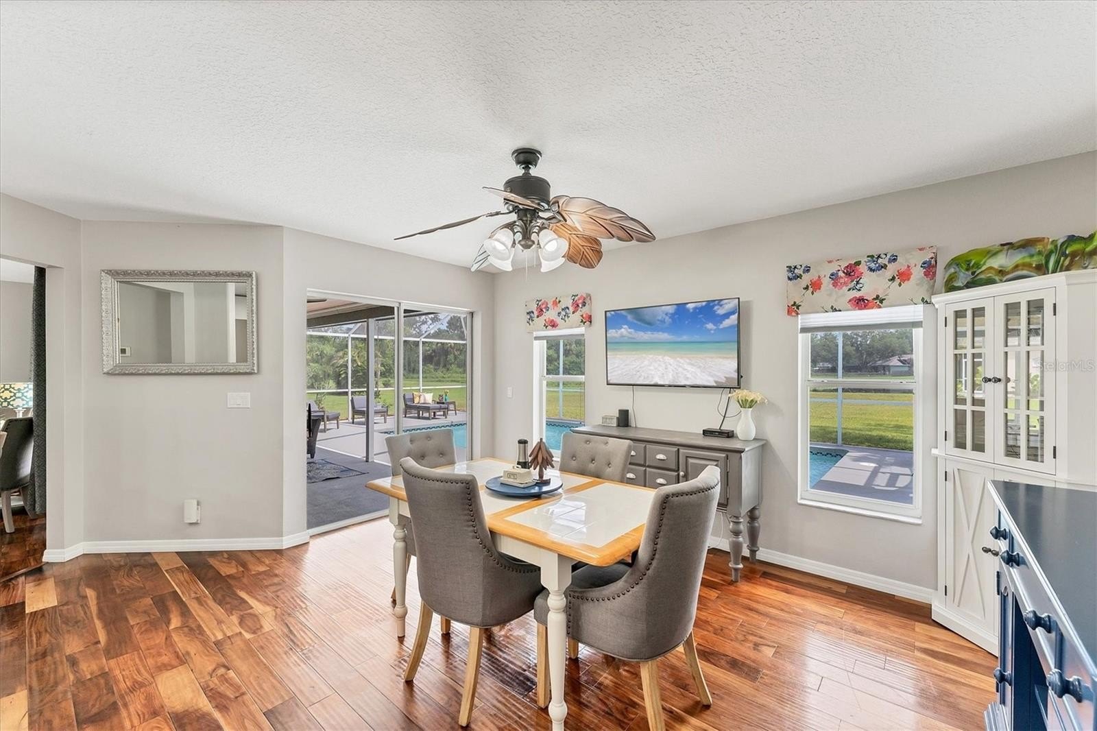 Today is your lucky day! Back on the market due to buyers home sale contingency falling through. Welcome home to this stunning retreat positioned on a quiet street in Mill Creek, a great neighborhood loved by those who desire the peace & tranquility of country life without the long drive. Situated on more than half an acre with stunning pond views & tree lines just beyond for true privacy. You will appreciate all the attention & care that has been given to this beautifully updated home. The smart floor plan wastes no space & creates a larger than feel. The home offers a lot of flexibility in how you want to use the different spaces for your needs. Upon entering the home, you will be greeted with hard wood floors & amazing views of the property & pond. Just off the front of the home is a formal dining room that is currently used as an office w/ a barn door for added privacy when desired. The generously sized owner’s suite features sliding doors with direct access to your large encage pool & patio, a stunning ensuite bathroom that includes dual wood vanity w/ granite counters, his & hers walk-in closets with custom built-ins, a linen closet, private water closet, & gorgeous seamless glass shower complete with a bench & shower panel. The Kitchen update is sure to impress with wood cabinets, some with pull out shelves, dovetail drawers, lazy susan corner storage, brush drawer, granite counters, closet pantry, breakfast bar, flush & pendant lighting, beautiful backsplash, & stainless-steel appliances including a convection double oven. Just off the kitchen enjoy a versatile dining room w/ sliding doors that take you out back to your private oasis where you are sure to spend a lot of time. The large covered outdoor living area provides 297 ft. of space to enjoy the morning sunrise with your favorite beverage or to relax and unwind after a long day. Encage pool was resurfaced in 2018 & is the perfect place to keep cool on warm days & splash the night away w/ fun color changing light. Steps from the pool you can enjoy additional relaxation on the deck. Love to watch Rocket launches? Enjoy the experience from your back yard! Do you enjoy nature? Birds, Deer & Sandhill cranes frequent the property. Want to practice your golf swing? The backyard offers plenty of space for this & any other outdoor activities you can dream up! Inside laundry room w/ shelving for added storage & access to your 2-car garage. Home’s split-floor plan offers 2 additional bedrooms complete w/ built-ins in the closets, a second bathroom w/ vanity & beautifully updated tub/shower, & a den that can be used as a second office, playroom, game room, or anything else your heart desires. Need a true 4th bedroom? Solid doors give all the needed privacy. Simply add an armoire and you’re all set. The home has updated lighting, fans, & fixtures throughout. The interior & exterior was painted this year. Sit out front on your covered porch to enjoy beautiful painted skies at sunset or watch a game of basketball being played on your extra wide driveway offering added parking. Hop on your golf cart & take a ride around the neighborhood to the playground or enjoy the many ponds & nature scenes throughout. This home is a true gem in a great neighborhood. While you'll feel miles away from it all enjoy the convenience of having shopping, dining, & entertainment just minutes away. Perfect for commuting, great schools, a low HOA & no CDD. Take a tour, fall in love & make it yours today!