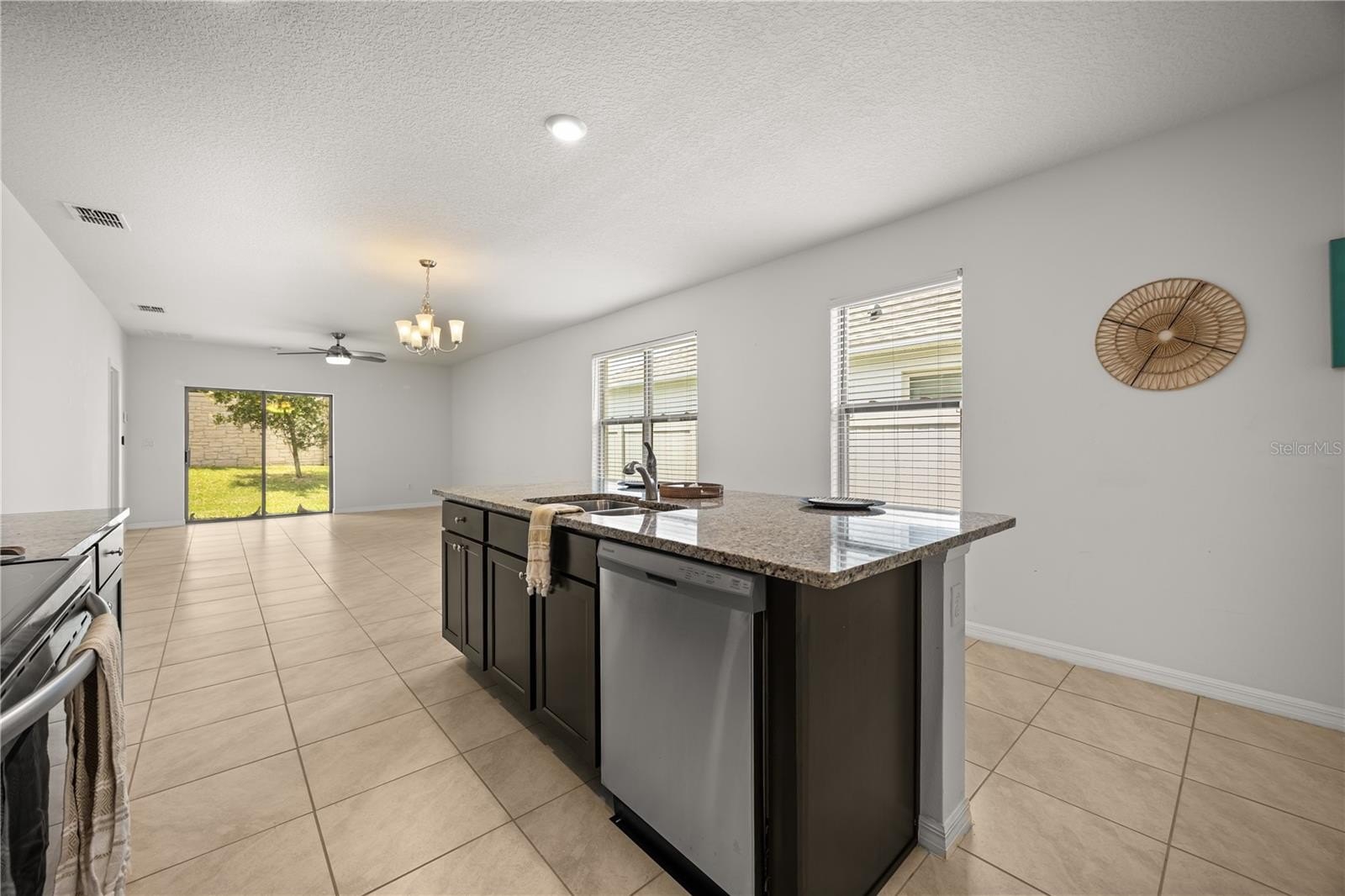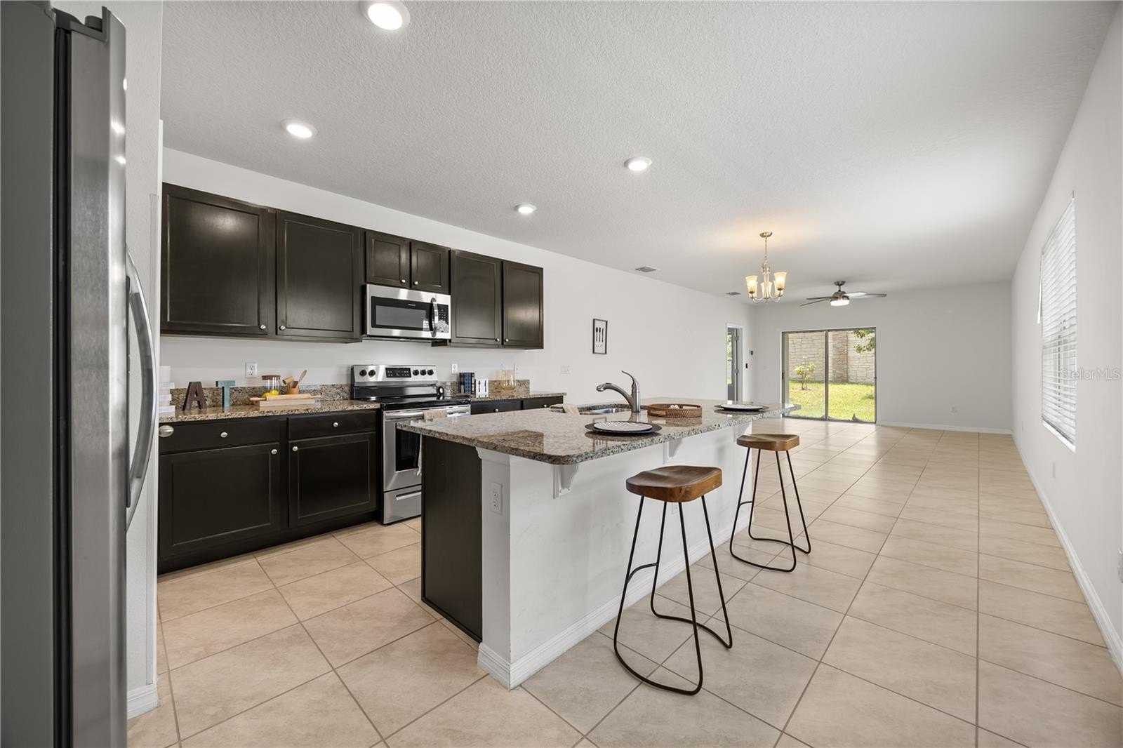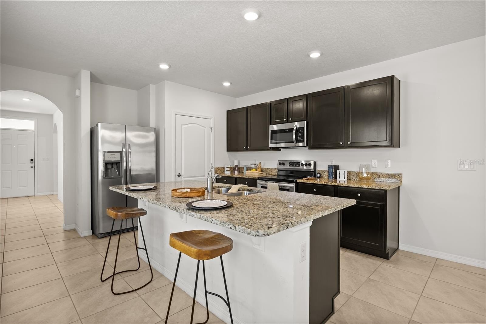 Step inside to find an open-concept layout with a spacious living and dining area, perfect for entertaining or family gatherings. The kitchen features stainless steel appliances, ample dark brown cabinetry, and a large island that’s ideal for meal prep and casual dining. The owner’s suite offers a walk-in closet and private bath with dual sinks and a glass-enclosed shower.