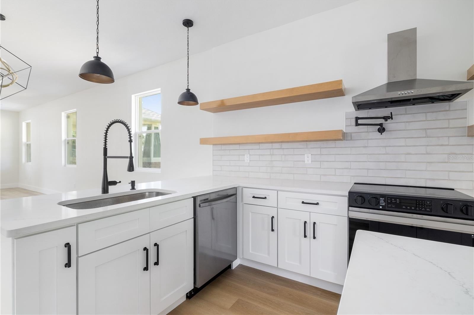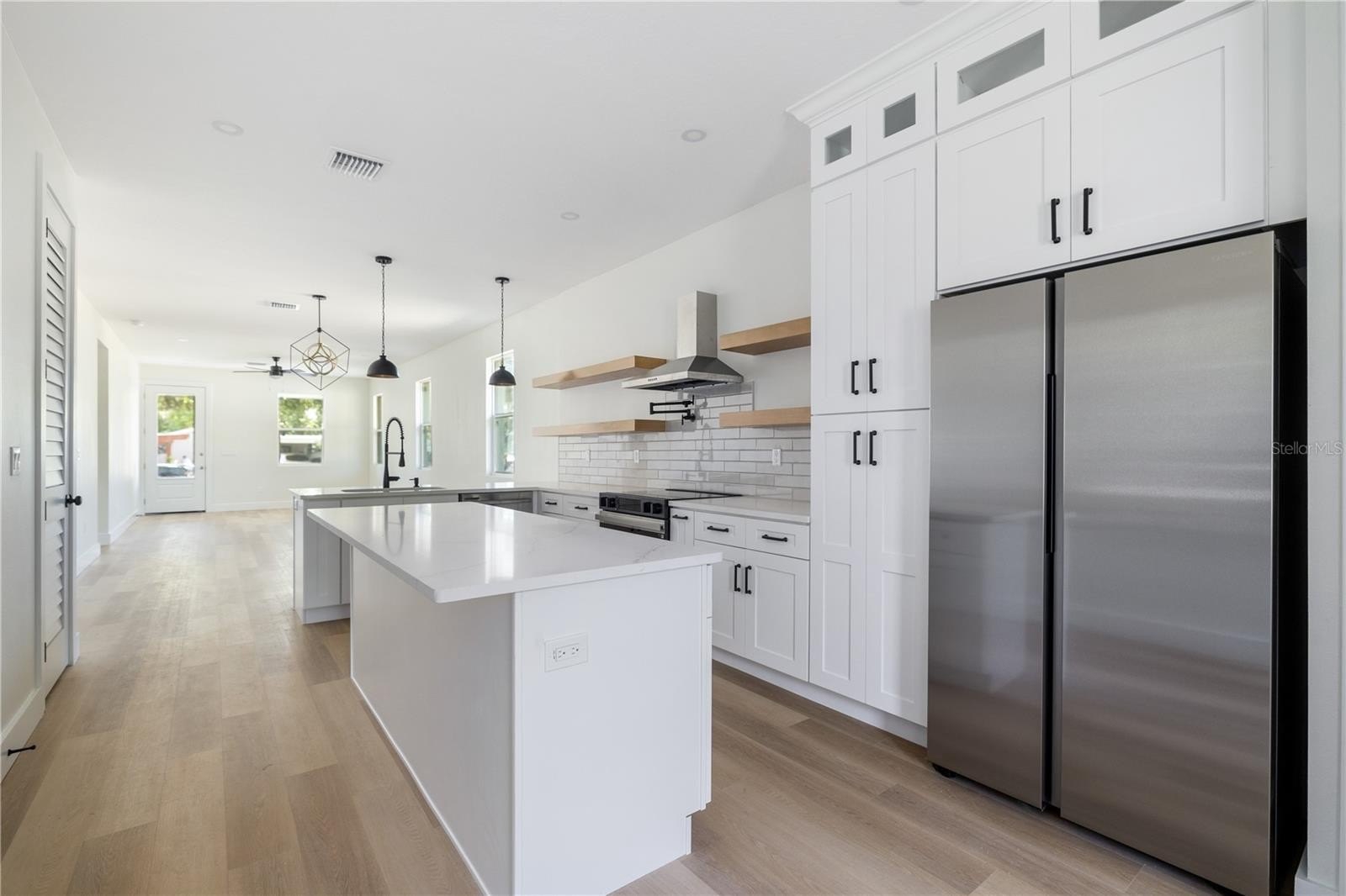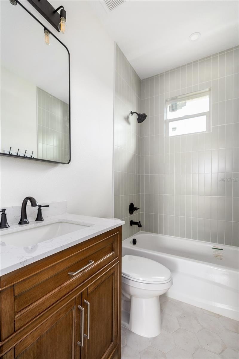 Welcome to this beautifully designed 3-bedroom, 2-bath new construction home in the heart of Old Seminole Heights. The open-concept floor plan offers a light-filled living space, custom cabinetry, quartz countertops, and brand-new appliances. The spacious primary suite includes a walk-in closet and a luxurious ensuite bathroom featuring a walk-in shower with both rainfall and handheld fixtures. Two additional bedrooms share a full bathroom and convenient linen closet. Enjoy relaxing on the covered front porch complete with a swing.
