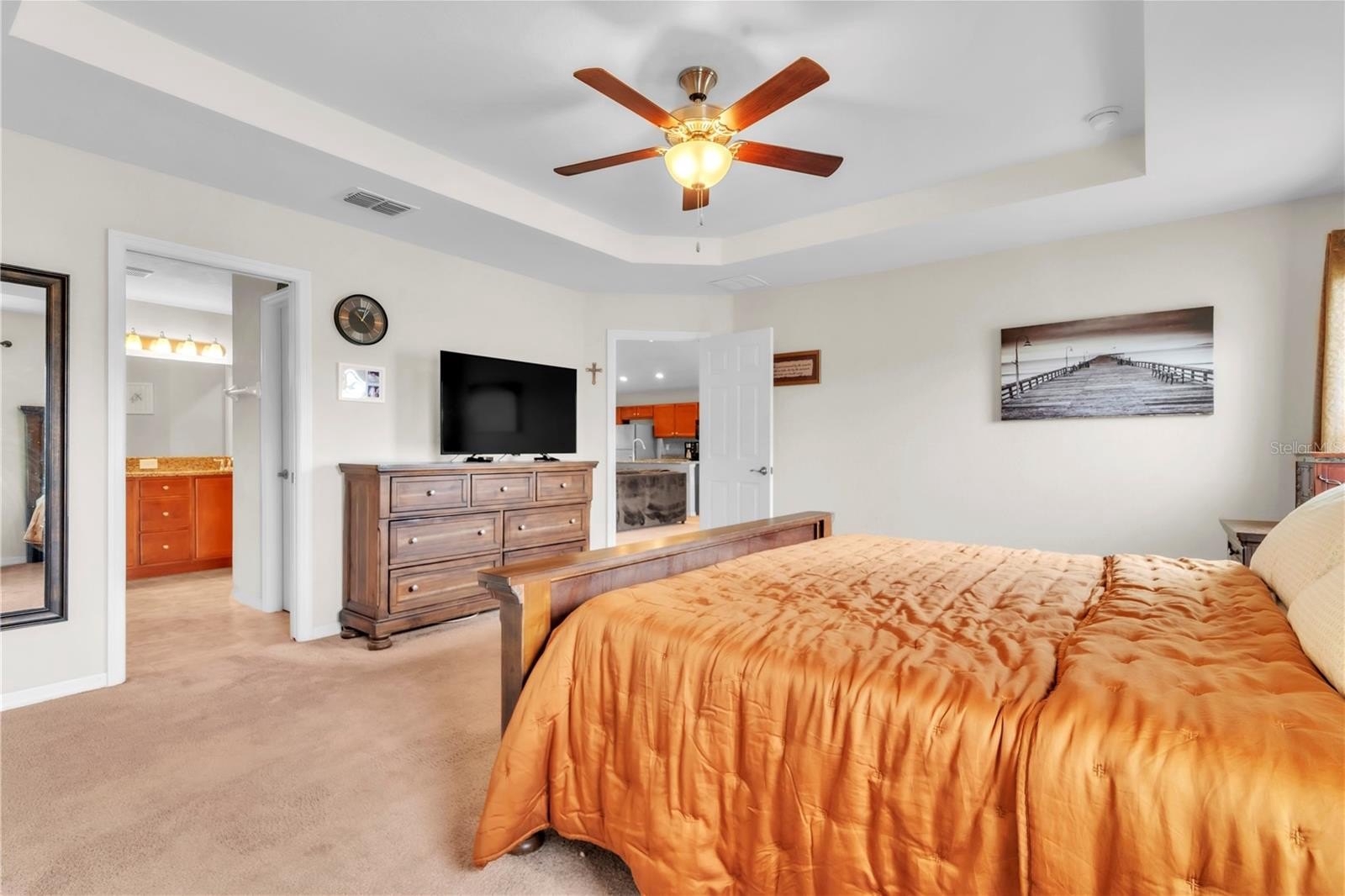 The heart of the home is the expansive living area, perfect for both relaxing and entertaining, seamlessly flowing into a contemporary kitchen with stainless steel appliances, ample cabinet space, and an oversized center island. The generous primary suite features his and her walk-in closets and a private en-suite bathroom with dual vanities and a large shower.