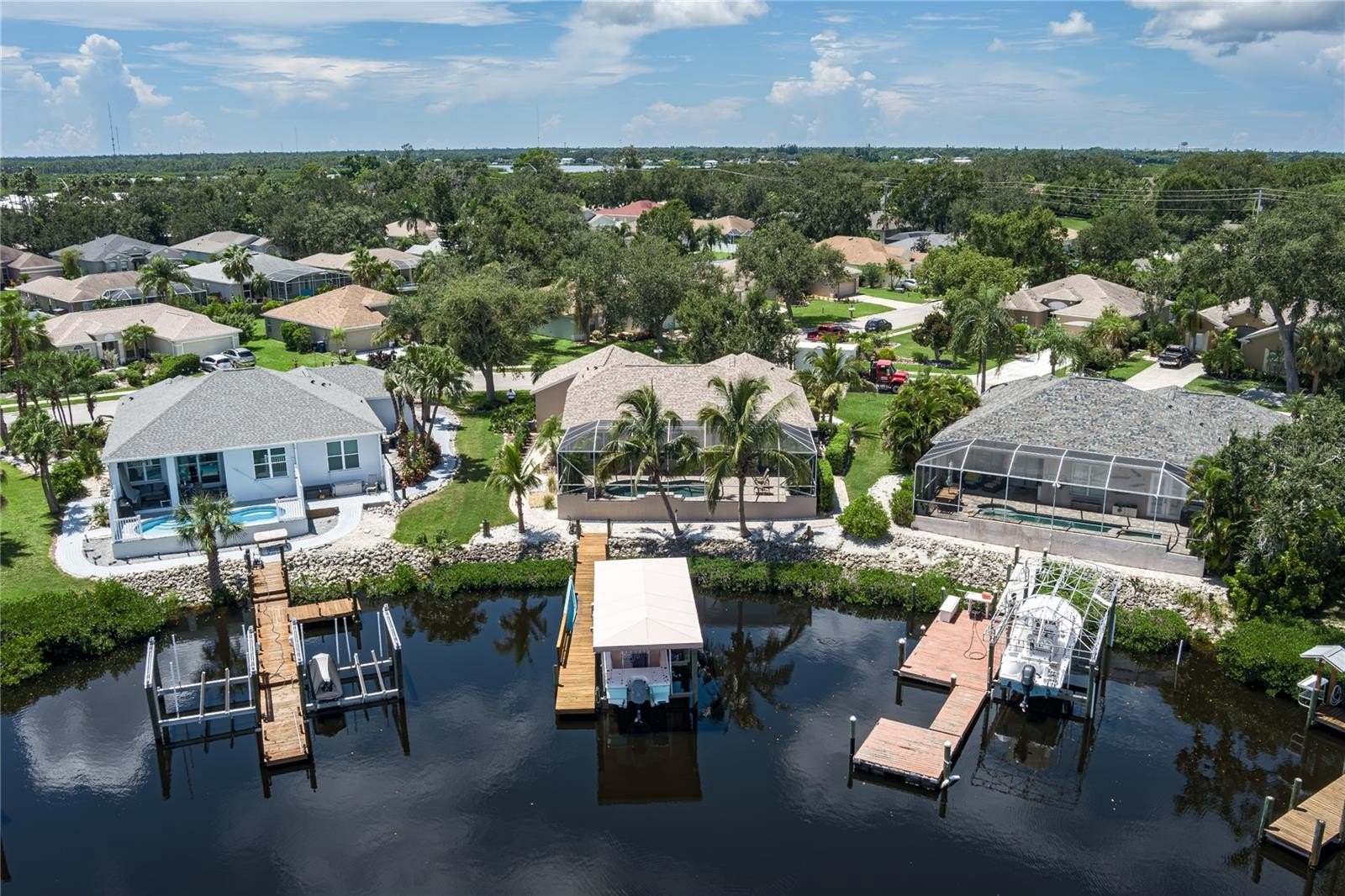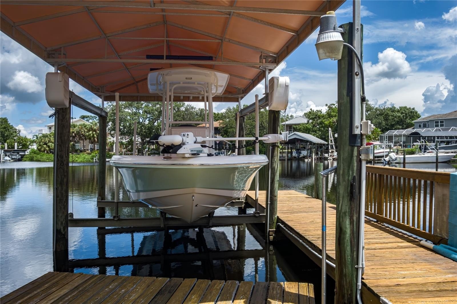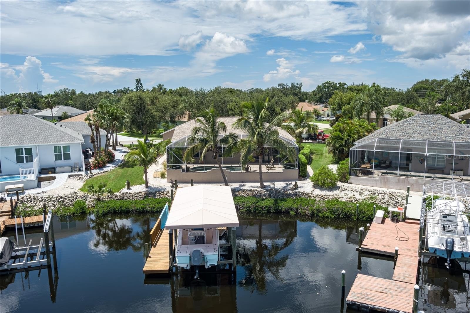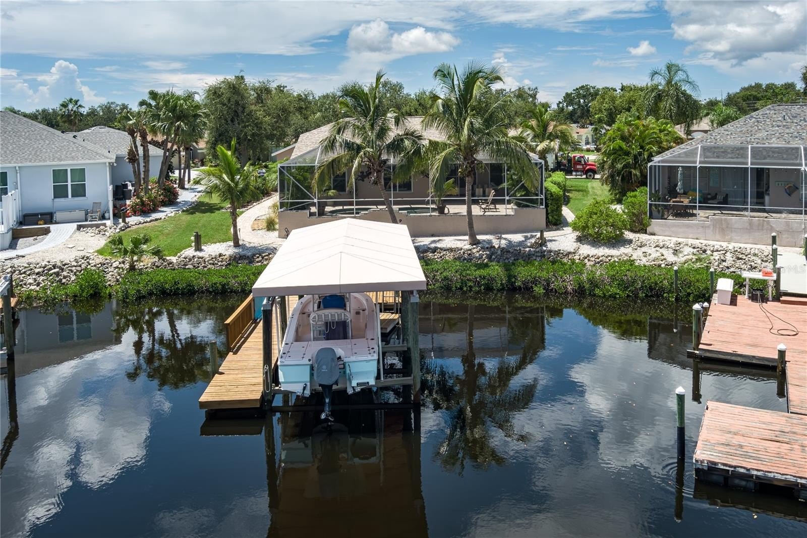 Waterfront Paradise with Direct Gulf Access. Welcome to your dream home in the sought-after River Pointe community, where boating, entertaining, and luxury living come together. The original owner's pride of ownership prevails in this beautifully updated 3-bedroom, 2-bath residence. The home sits on a wide saltwater canal at the end of a tranquil basin—offering privacy, minimal boat traffic, stunning views of dolphins dancing, manatees floating, mullet jumping, AND easy navigation to the open waters of the Manatee River, Intercoastal Waterway, and Gulf. The property is a Boater’s Dream, complete with dock, a covered lift that accommodates boats up to 28 ft and 9,000-pounds, and a floating dock. Features include a well-built and modern home; spacious 3-car garage for vehicles, gear, and storage; high ceilings, split floor plan, new roof (2020) for peace of mind, remodeled kitchen in 2021 with wood cabinetry, quartz countertops, and new appliances. Updated bathrooms (2021 & 2025) with modern finishes, new windows installed in 2022 and 2025 for energy efficiency and natural light and window hurricane screens. YOUR Outdoor Oasis offers an inground pool with waterfall and 8 spa jets, screened lanai for year-round enjoyment, an expansive paver deck and covered entertaining area—perfect for gatherings, grilling, or relaxing poolside while enjoying the serene canal views to create a true Florida escape. River Pointe residents enjoy low HOA fees and access to a private community boat ramp. This home is the ideal blend of luxury, functionality, and waterfront lifestyle. This property is located about two miles West of I-75 via SR 64, close to Costco, Publix, Target and Walmart, entertainment downtown Bradenton, River Walk, and many fine eateries. Whether you're an avid boater, entertainer, or simply seeking a peaceful retreat with upscale finishes, this home checks every box. Schedule your private showing today and experience the best of Florida living.