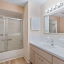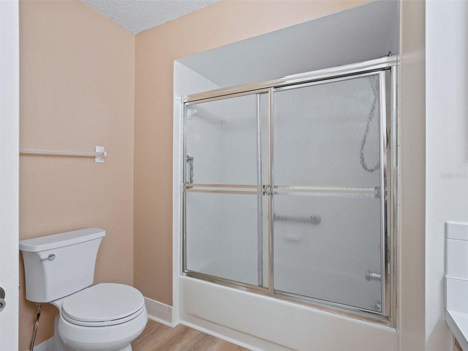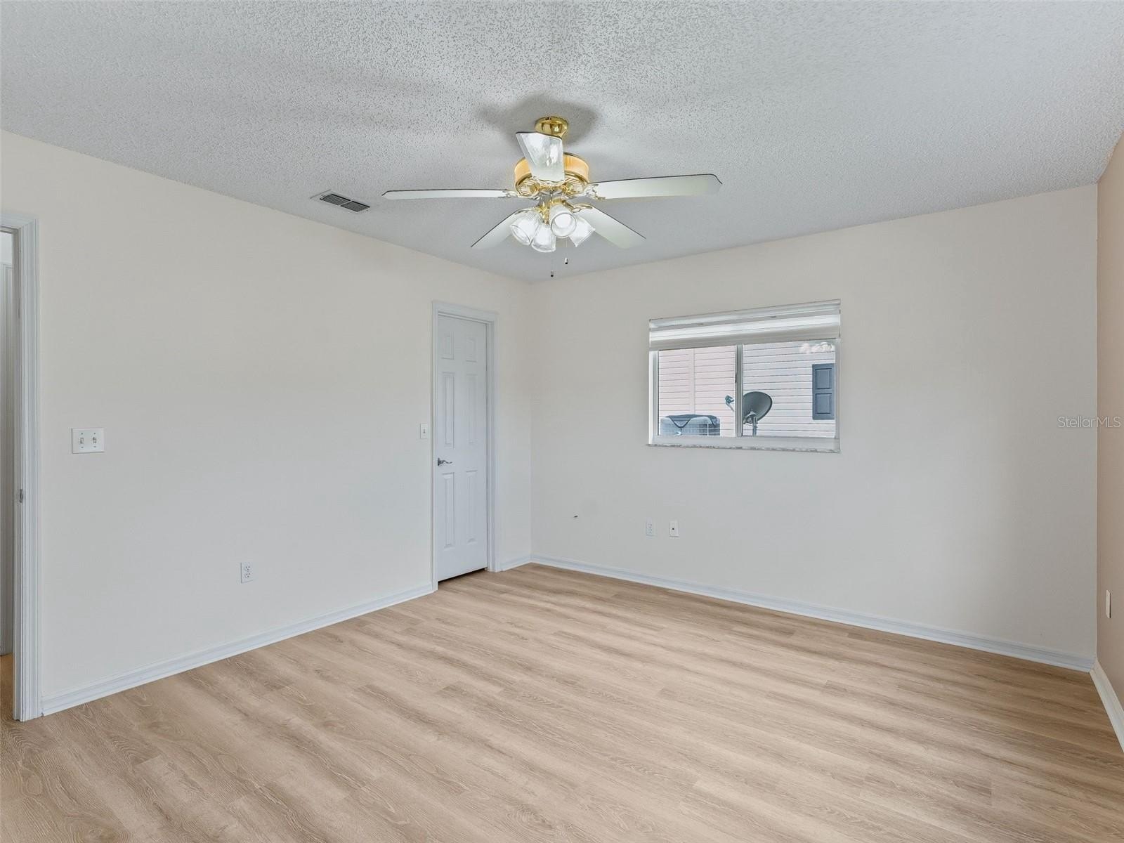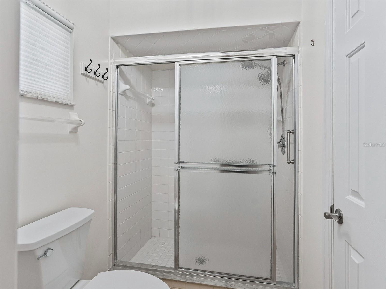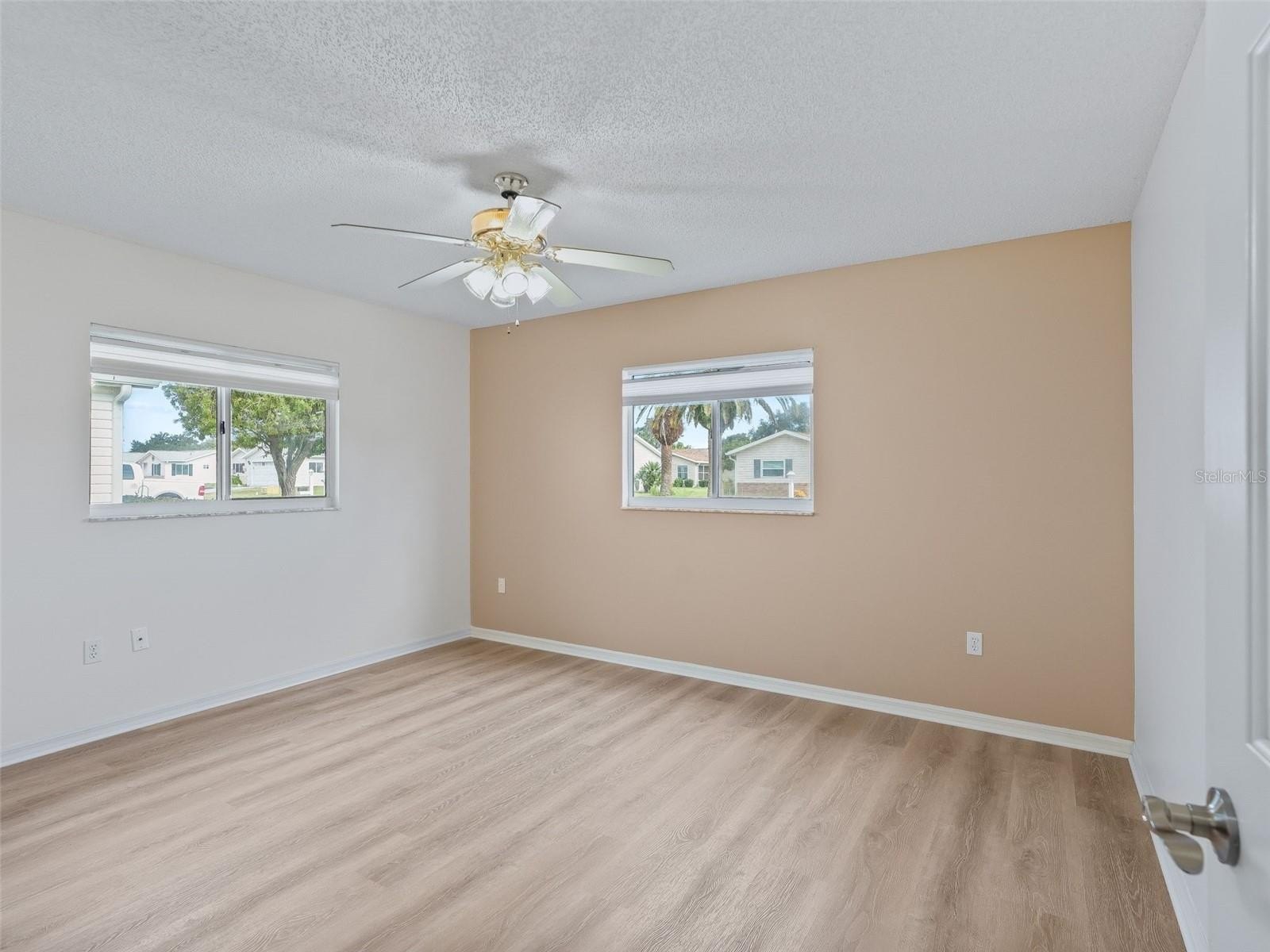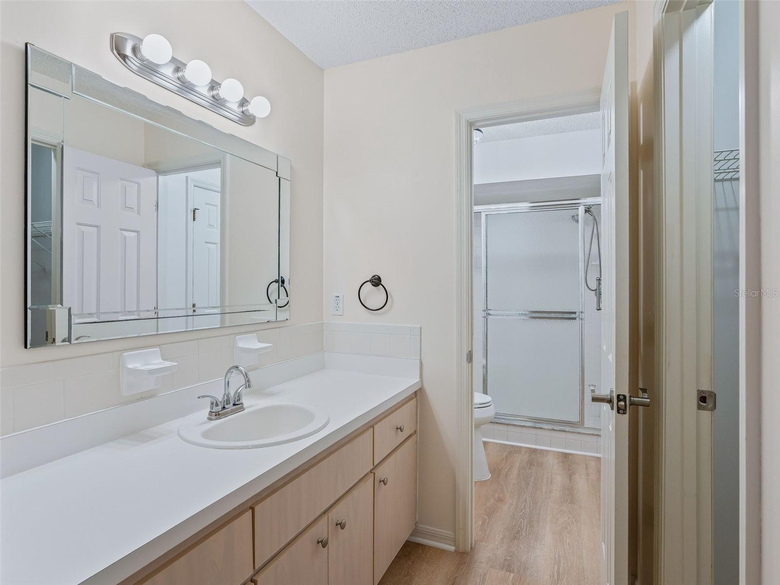 The oversized primary suite boasts a large walk-in closet and en-suite bath with walk-in shower and extended vanity. The guest bedroom also includes a walk-in closet and is conveniently located next to the second full bath, complete with a tub/shower combo and solar tube lighting.