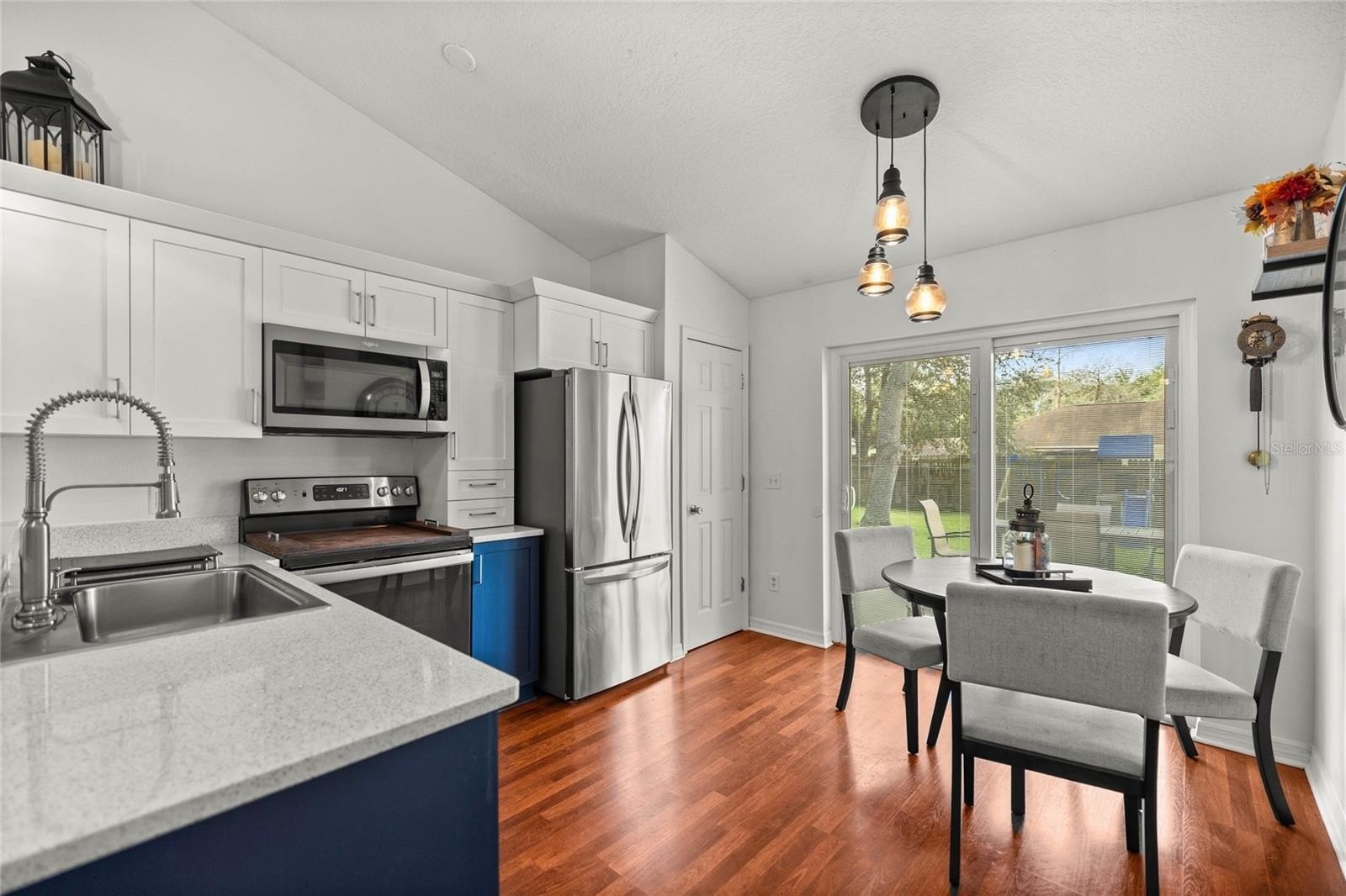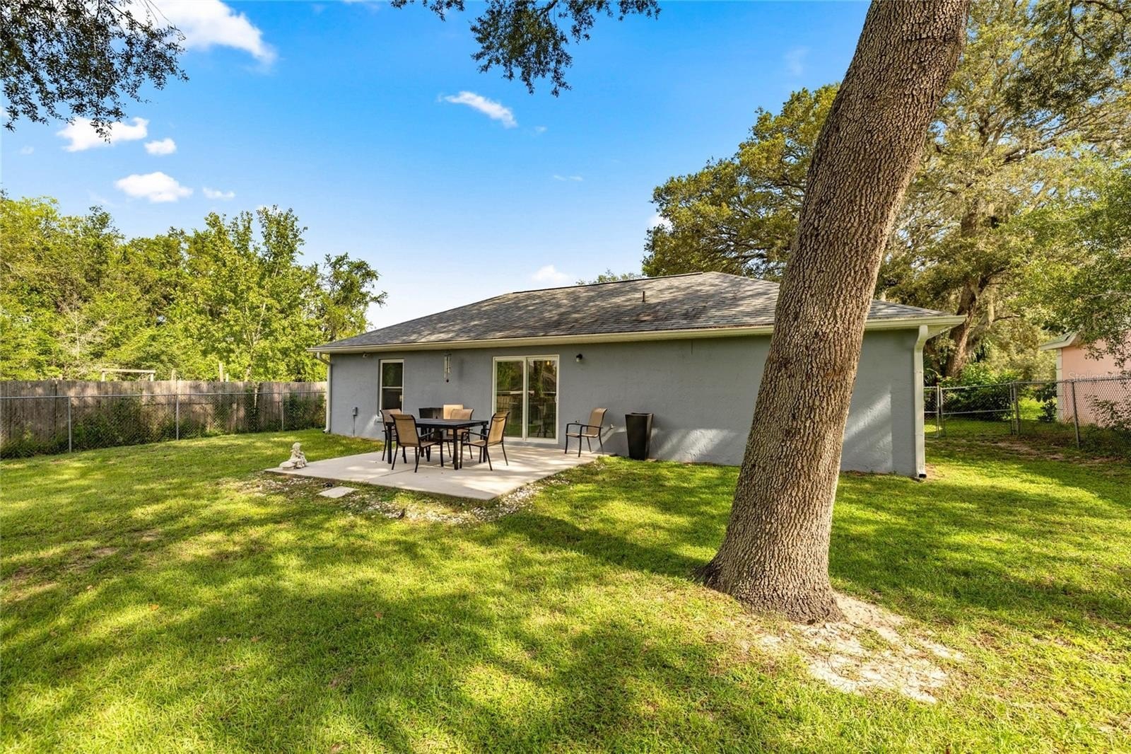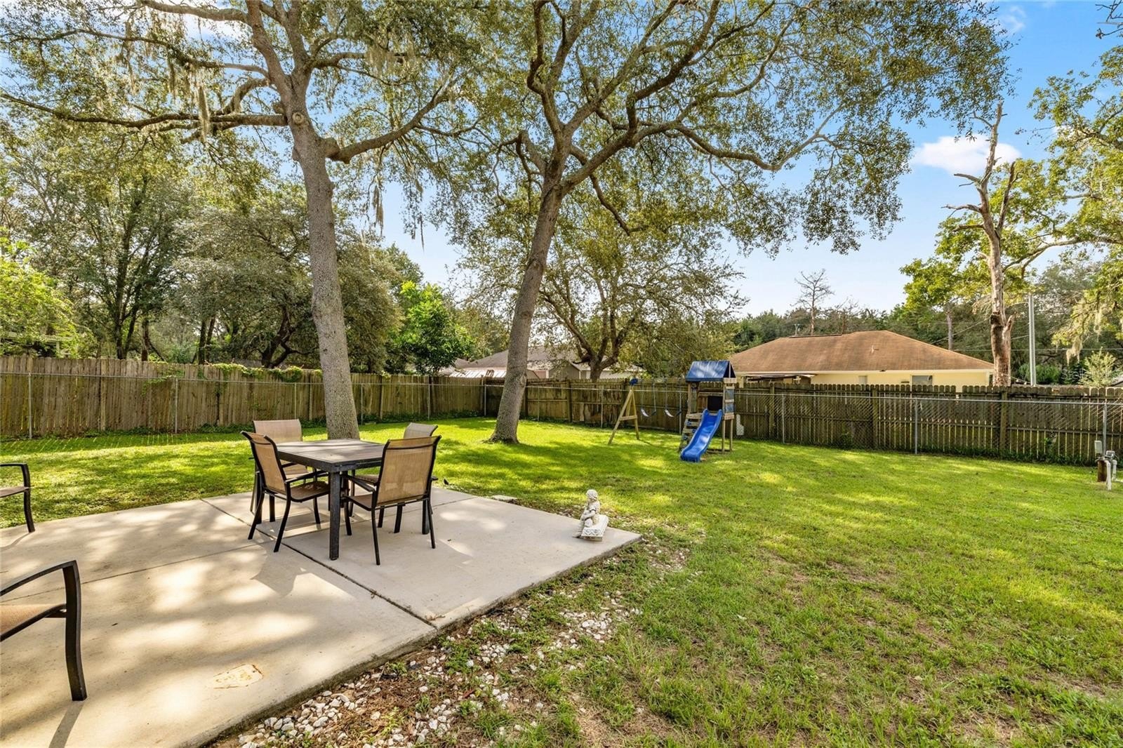 Step outside to an extended back patio with extra space, perfect for family gatherings, and a fully fenced backyard ideal for pets, and outdoor fun.