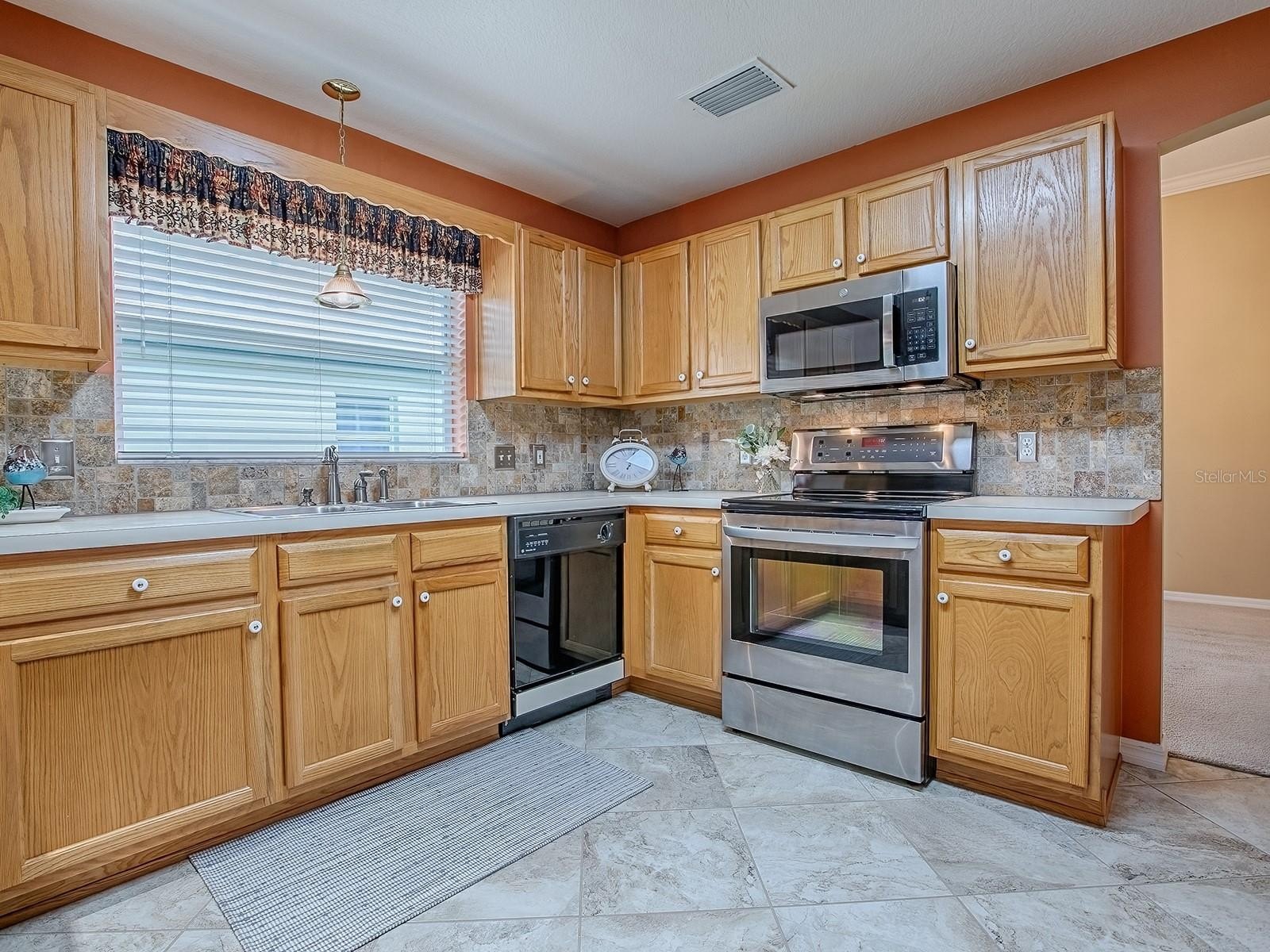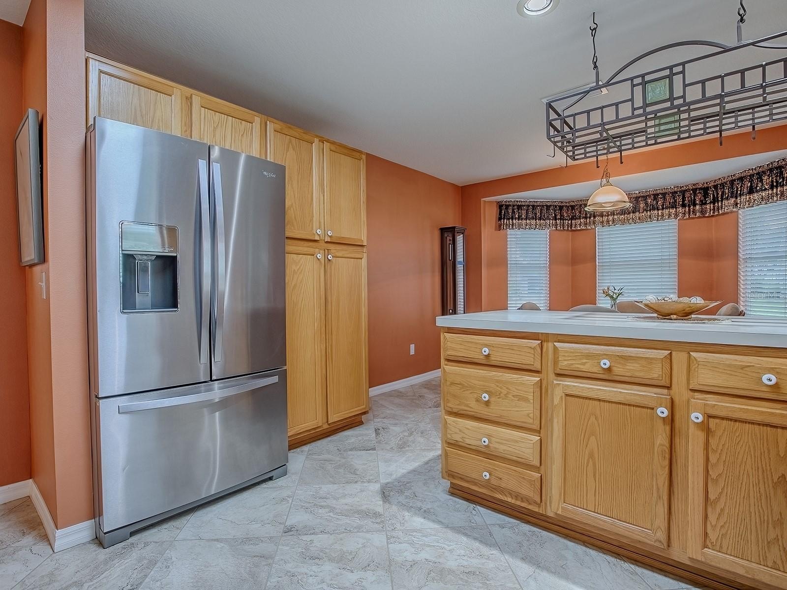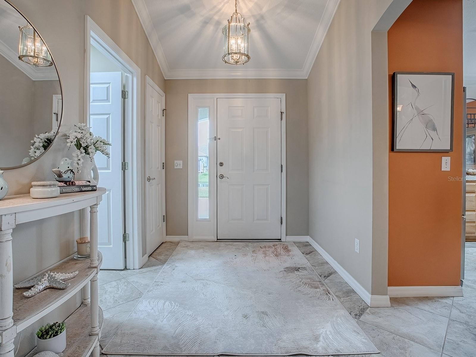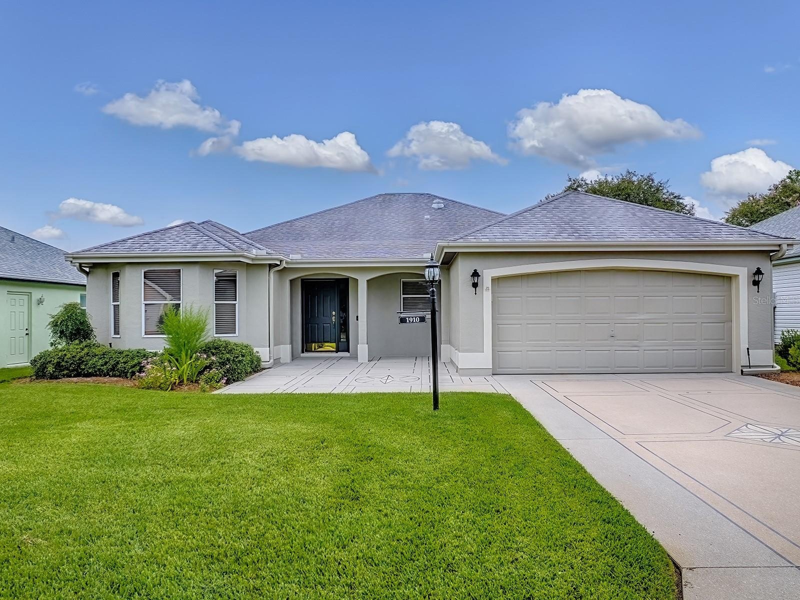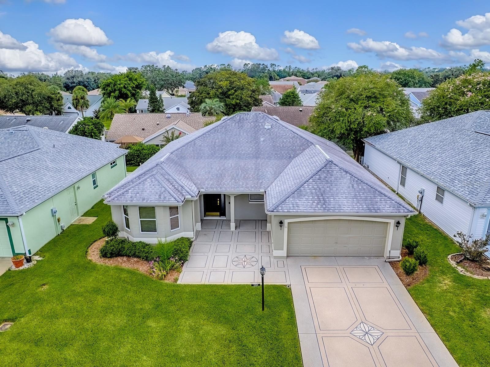 Professional Photos coming soon. Exceptional 3 bedroom 2 bathroom DESIGNER Vera Cruz model home. No Bond. Walk up the premium epoxy driveway to the cozy front porch. Enter through the front door with side light which adds natural lighting. Inside you will find a large foyer with crown molding and a closet for extra storage. Crown molding in the dining room/living room area too! Large kitchen with Bay windows off the nook adds more space. Stainless Stove, Fridge and Microwave. Neutral tumbled marble back splash. Pull outs in the large kitchen pantry. Laundry room features storage cabinets above and utility sink. Formal Dining room and Living Room combination makes it feel open. Split bedrooms for privacy. Solar tube added in Living Room for added light. 8 foot door wall leads to screened, partially covered lanai under roof with extended screened private area. Large Main Bedroom with Ensuite bath and 2 walk in closets. Dual sinks in main bath and makeup vanity space. Pocket door to shower area. Two bedrooms with guest bathroom Tub/Shower combination. Street is a Cul de Sac location with limited traffic in this very quiet neighborhood. Near 2 town squares, Spanich springs and Lake Sumter. 4 or 5 min walk to Tierra Del Sol Country Club, recreation/pool and Restaurant. Close to De La Vista Executive Golf Course and 12 others. Come Join this terrific neighborhood and start living the dream. Shopping, Restaurants and Entertainment, Health Care, Golf, are all nearby. Roof December 2017, Newer HVAC 07/2020 and newer Hot water Tank. This home will move quick