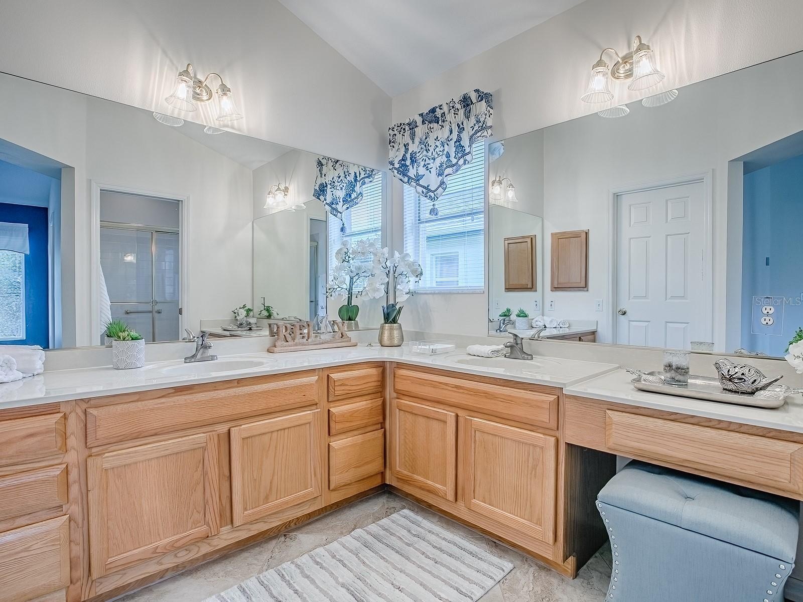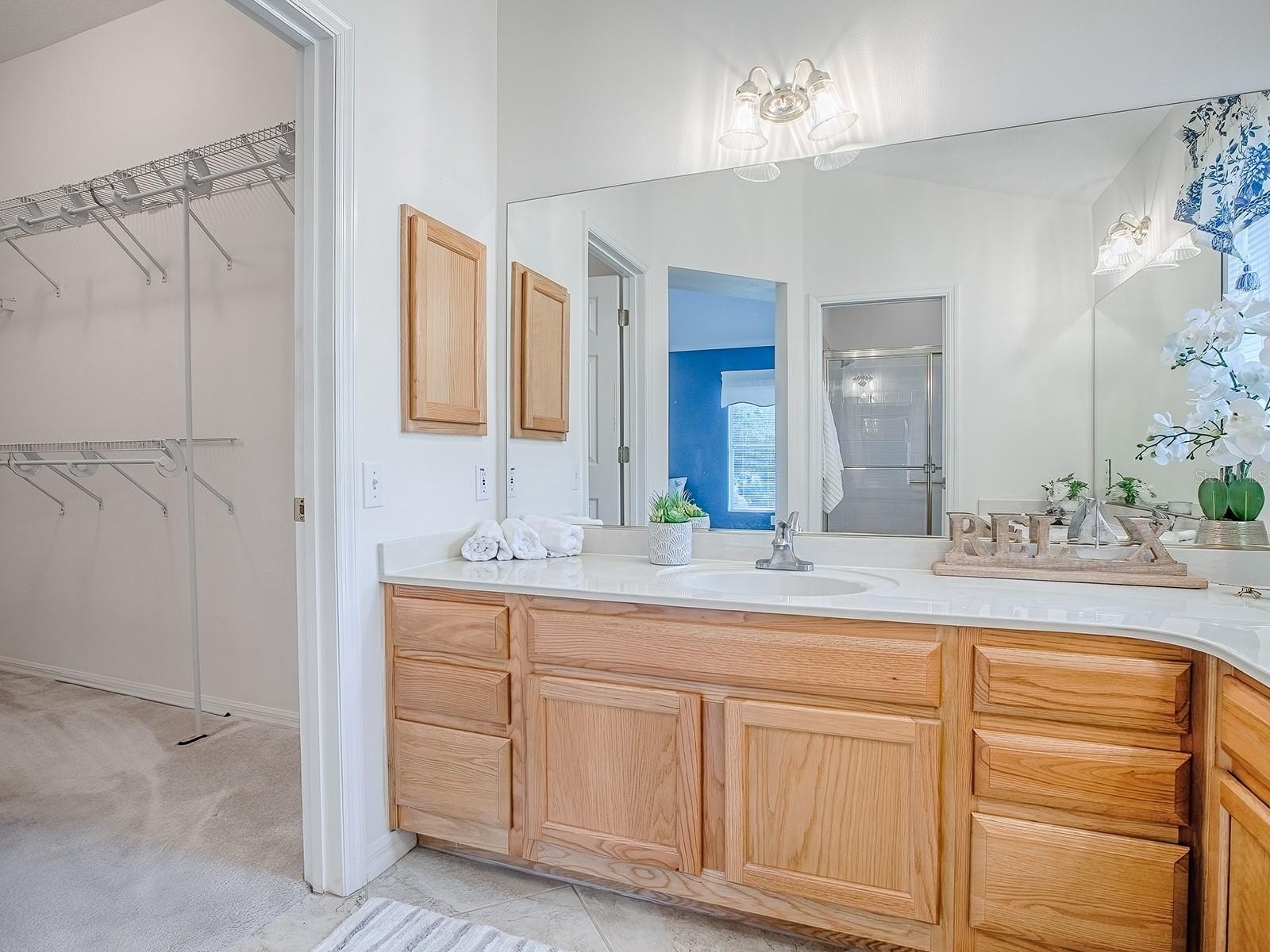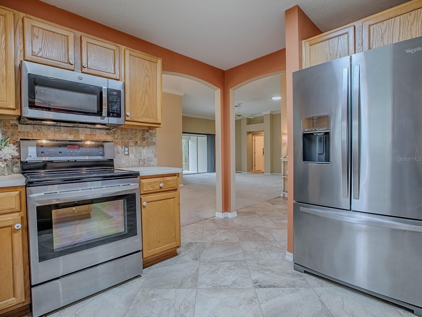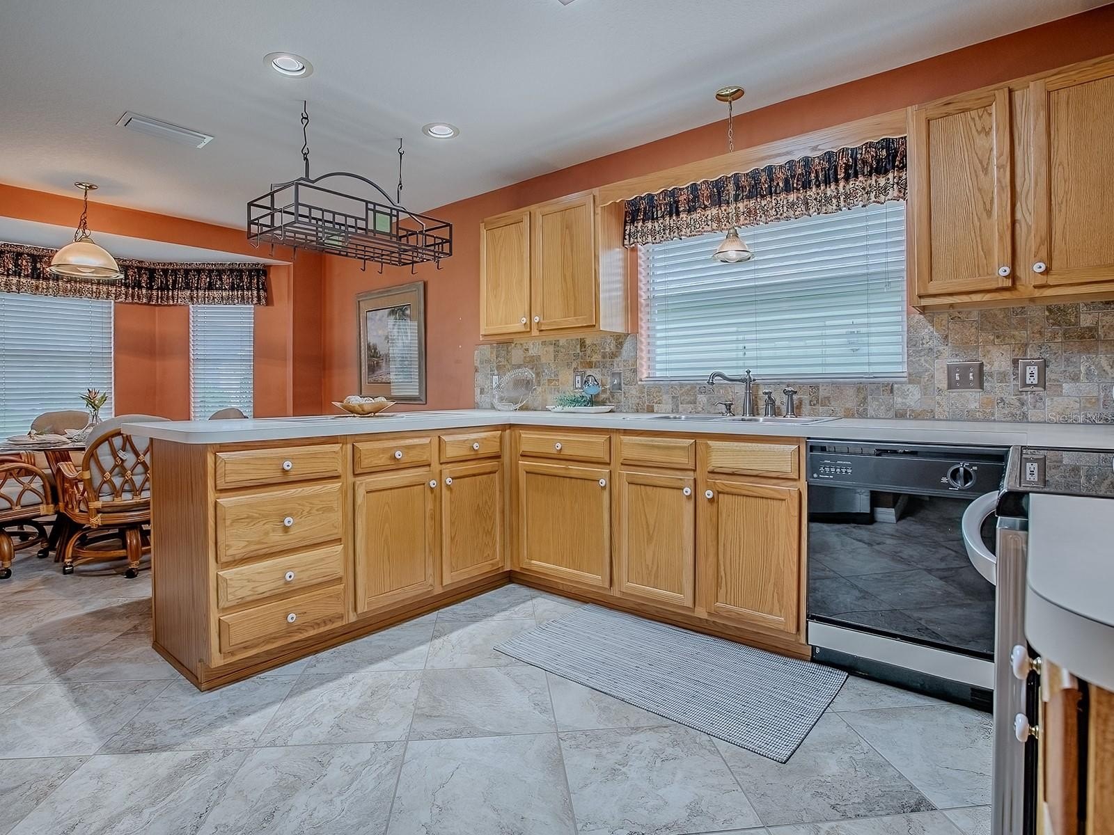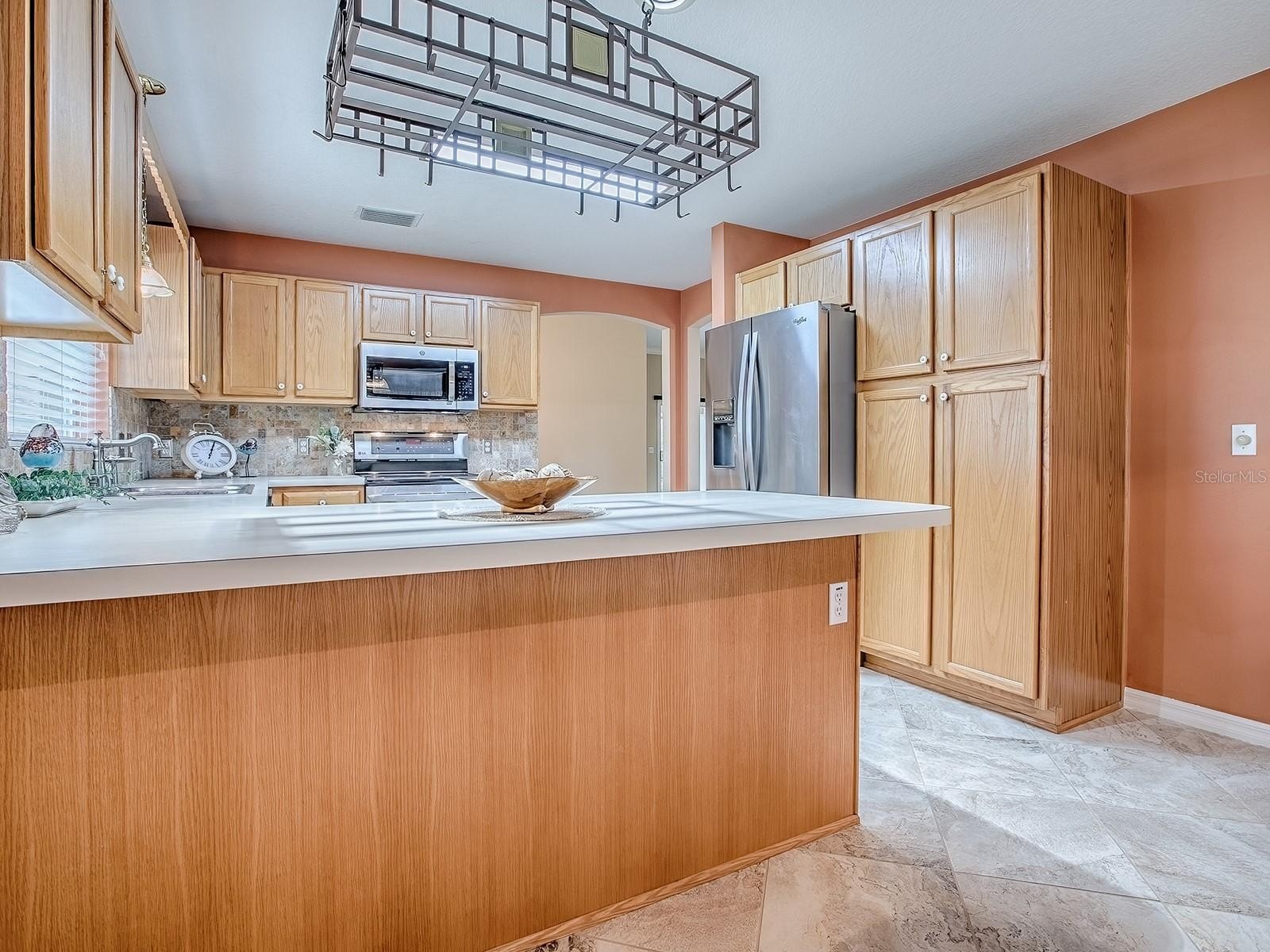 Professional Photos coming soon. Exceptional 3 bedroom 2 bathroom DESIGNER Vera Cruz model home. No Bond. Walk up the premium epoxy driveway to the cozy front porch. Enter through the front door with side light which adds natural lighting. Inside you will find a large foyer with crown molding and a closet for extra storage. Crown molding in the dining room/living room area too! Large kitchen with Bay windows off the nook adds more space. Stainless Stove, Fridge and Microwave. Neutral tumbled marble back splash. Pull outs in the large kitchen pantry. Laundry room features storage cabinets above and utility sink. Formal Dining room and Living Room combination makes it feel open. Split bedrooms for privacy. Solar tube added in Living Room for added light. 8 foot door wall leads to screened, partially covered lanai under roof with extended screened private area. Large Main Bedroom with Ensuite bath and 2 walk in closets. Dual sinks in main bath and makeup vanity space. Pocket door to shower area. Two bedrooms with guest bathroom Tub/Shower combination. Street is a Cul de Sac location with limited traffic in this very quiet neighborhood. Near 2 town squares, Spanich springs and Lake Sumter. 4 or 5 min walk to Tierra Del Sol Country Club, recreation/pool and Restaurant. Close to De La Vista Executive Golf Course and 12 others. Come Join this terrific neighborhood and start living the dream. Shopping, Restaurants and Entertainment, Health Care, Golf, are all nearby. Roof December 2017, Newer HVAC 07/2020 and newer Hot water Tank. This home will move quick