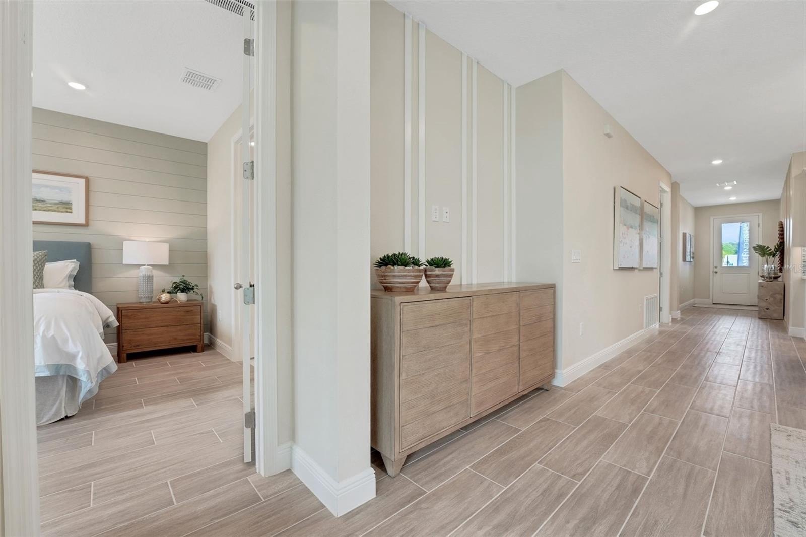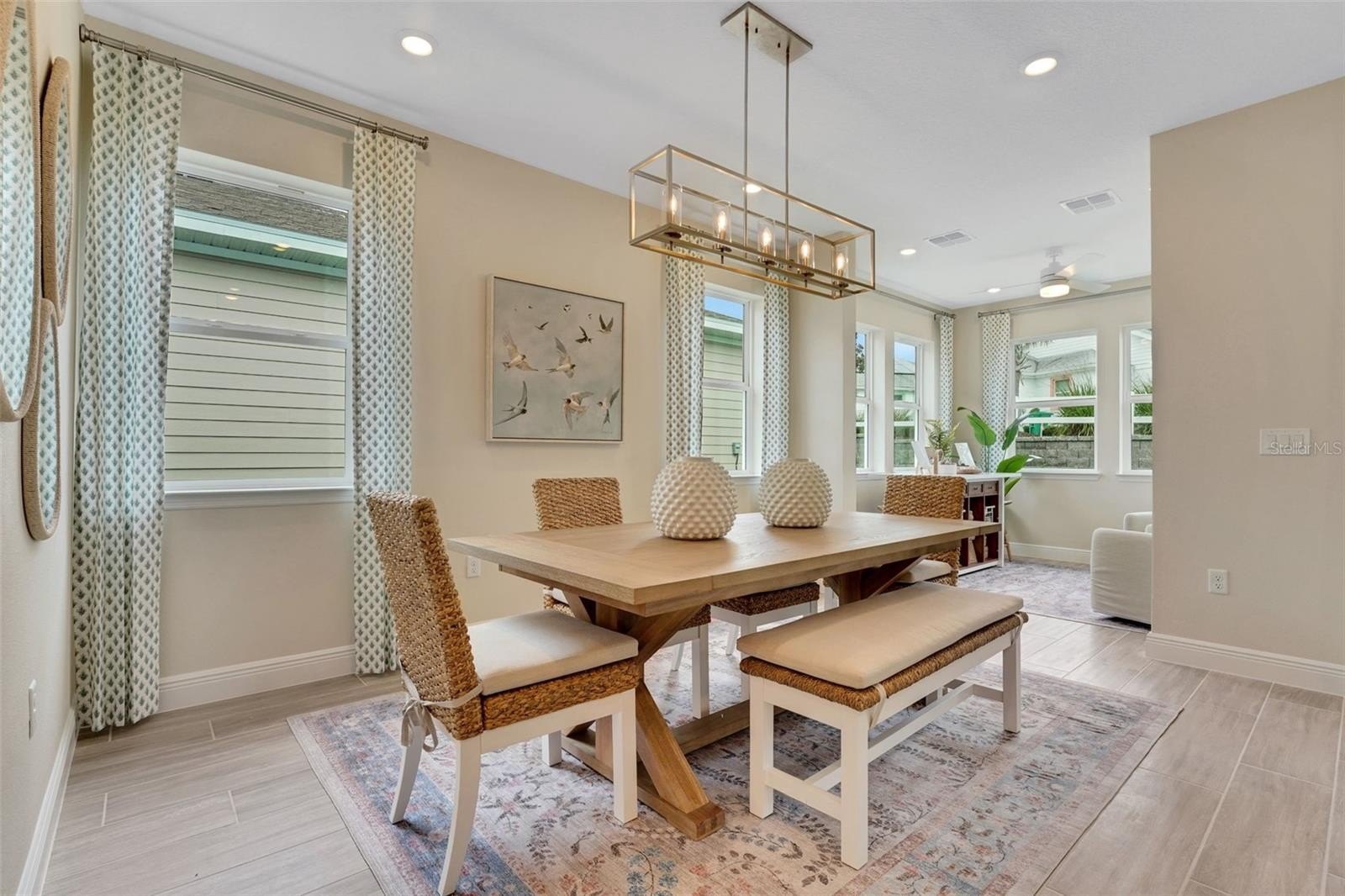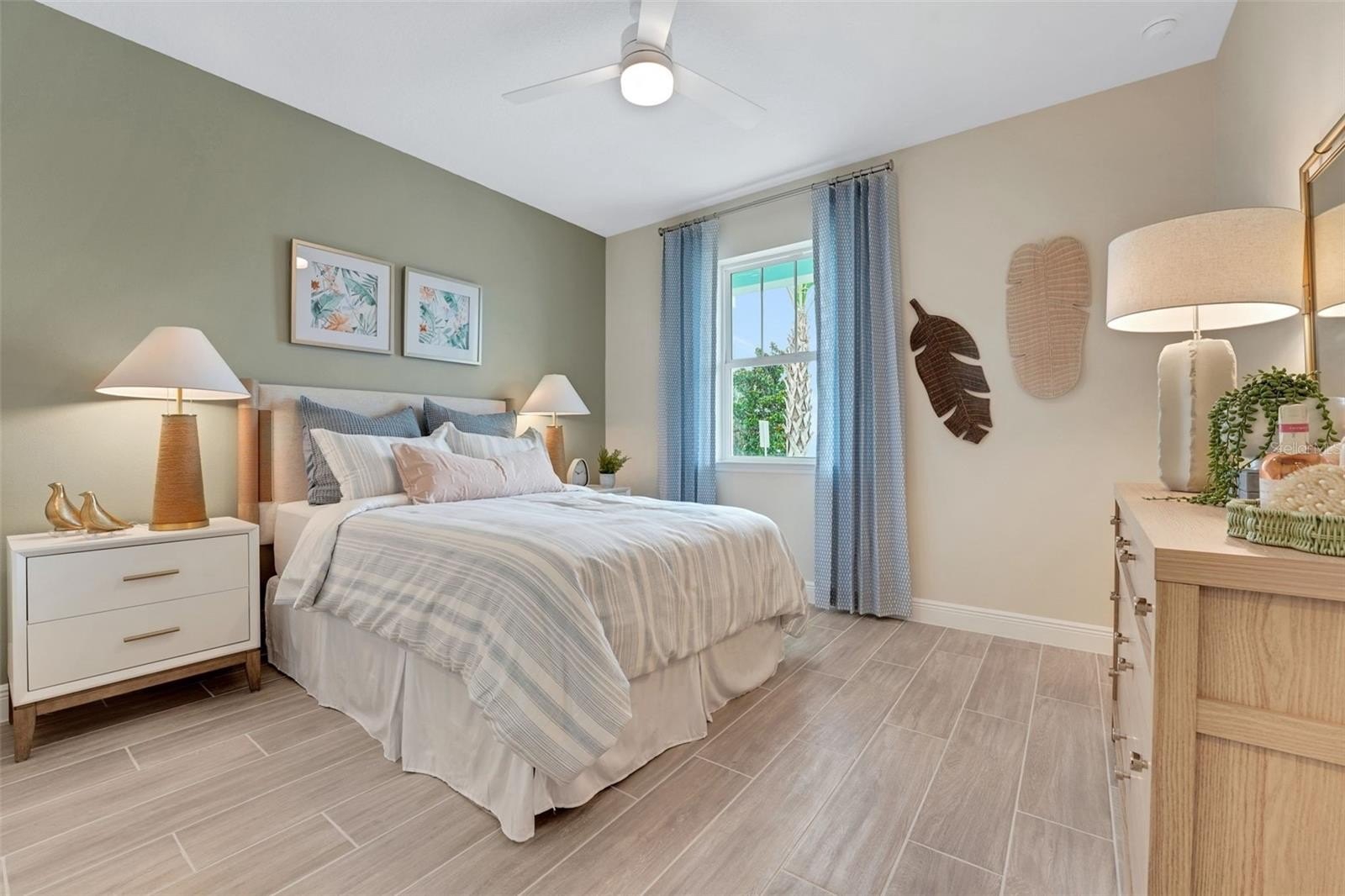 Welcome to this beautifully crafted Edison floor plan, offering 2 bedrooms, 2 bathrooms, and a versatile flex room, perfect for a cozy study or home office. This Key West-inspired home boasts an open and airy kitchen, living, and dining area, featuring elegant 5.25-inch baseboards, 8-foot interior doors, and upgraded plank wood-look tile flooring throughout.